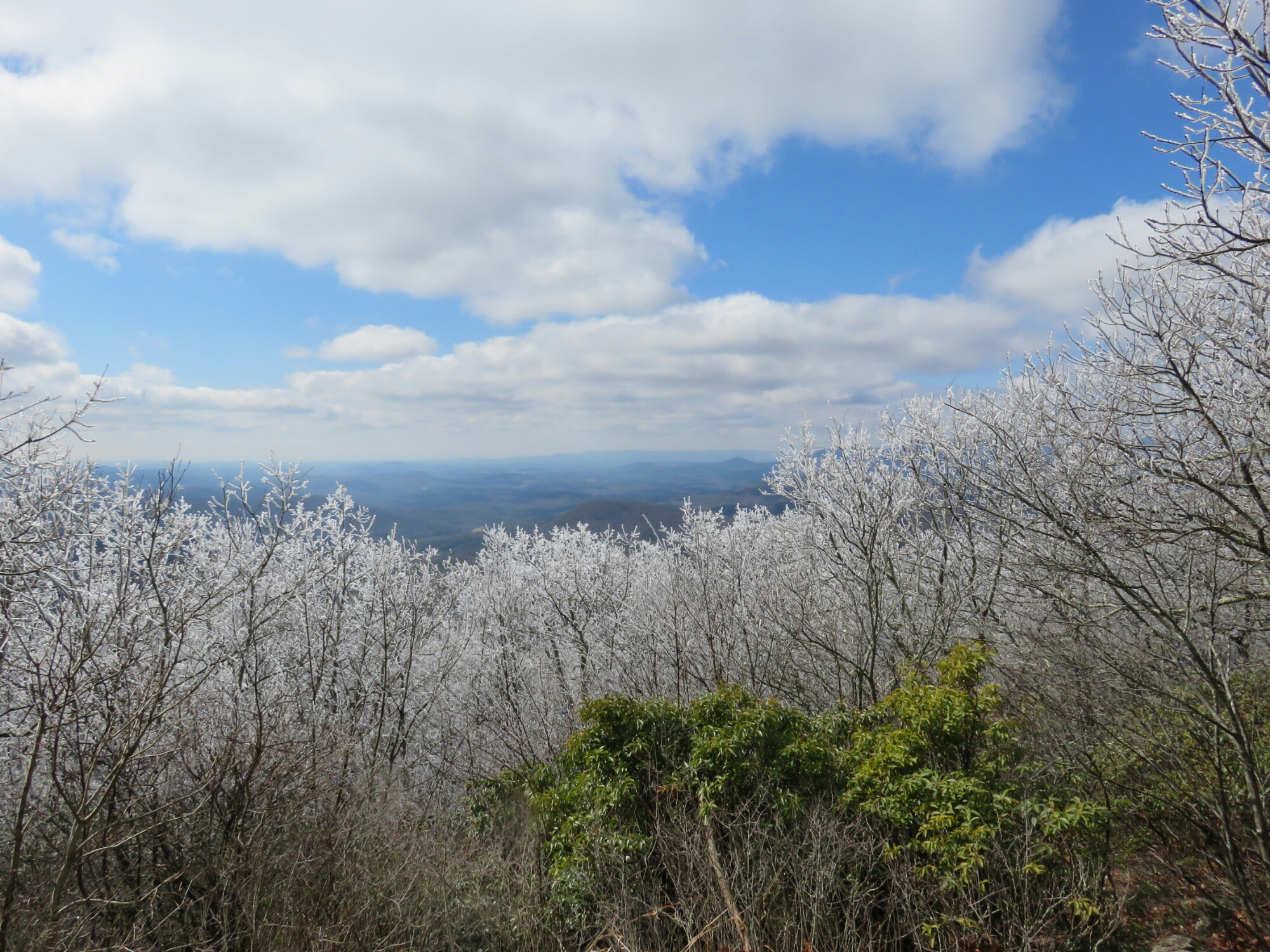 Dort habe ich mich, glaube ich zumindest, als 288 Hiker für dieses Jahr registriert. Über den Approach Trail ging es dann 8.8 Milen zum Springer Mountain. Das Wetter ist ganz gut zum wandern. Um die Null Grad und trocken. Die ersten Höhenmeter haben nicht lange auf sich warten lassen. Über 600 Stufen halfen uns beim erklimmen der Wasserfälle die wirklich beeindruckend sind. Ab dort geht es dann durch Wald, auf und ab. Wirklich jeder scheiß Hügel wird von der Seite, von oben, ach einmal drumherum begangen. 😉 Aber kein Problem, nach ein paar Höhenmetern verwandelt sich der Wald in ein Eismeer. Die Äste sind alle zugefroren und der Wind sorgt dafür, dass es nun Eis regnet.