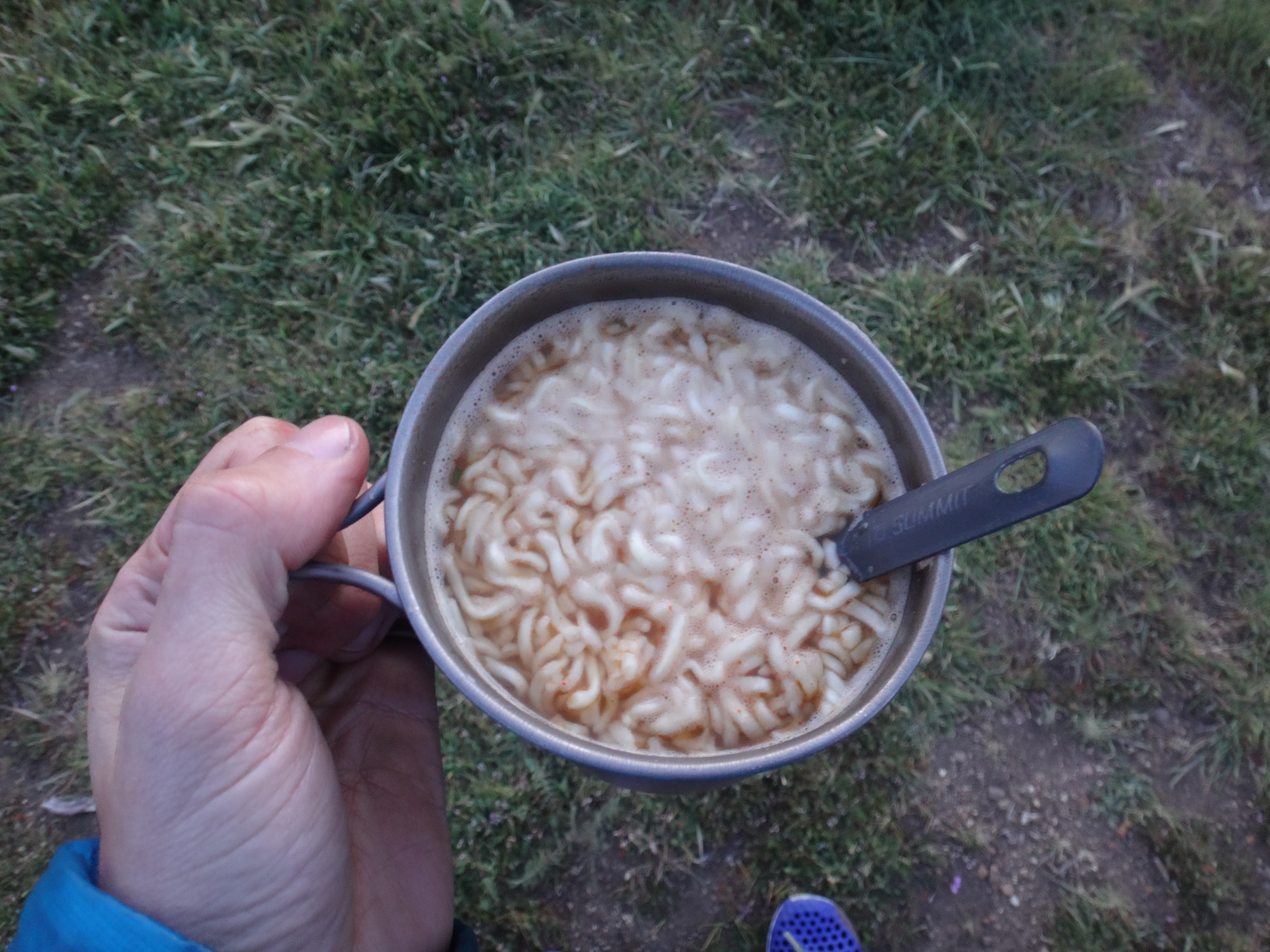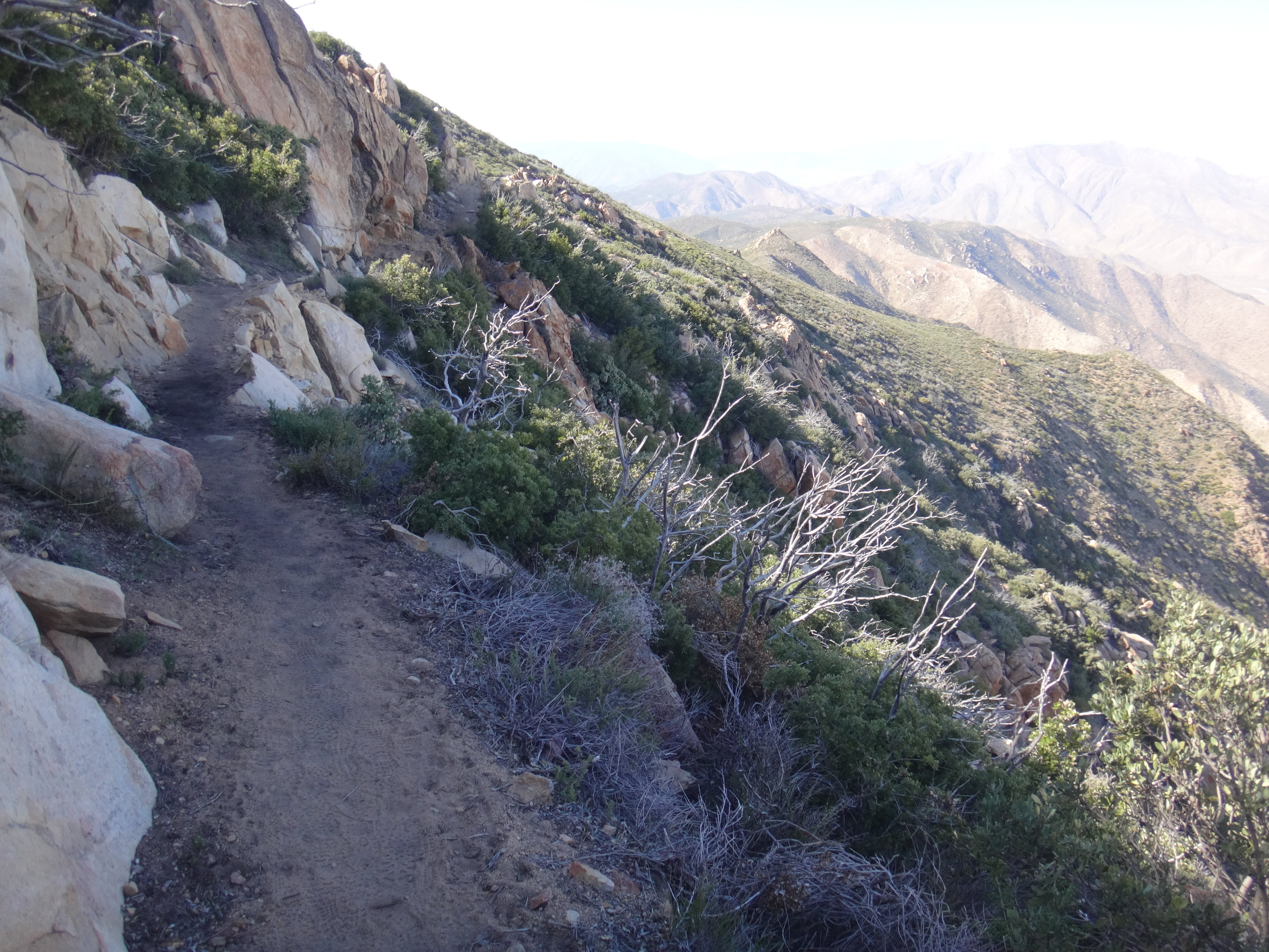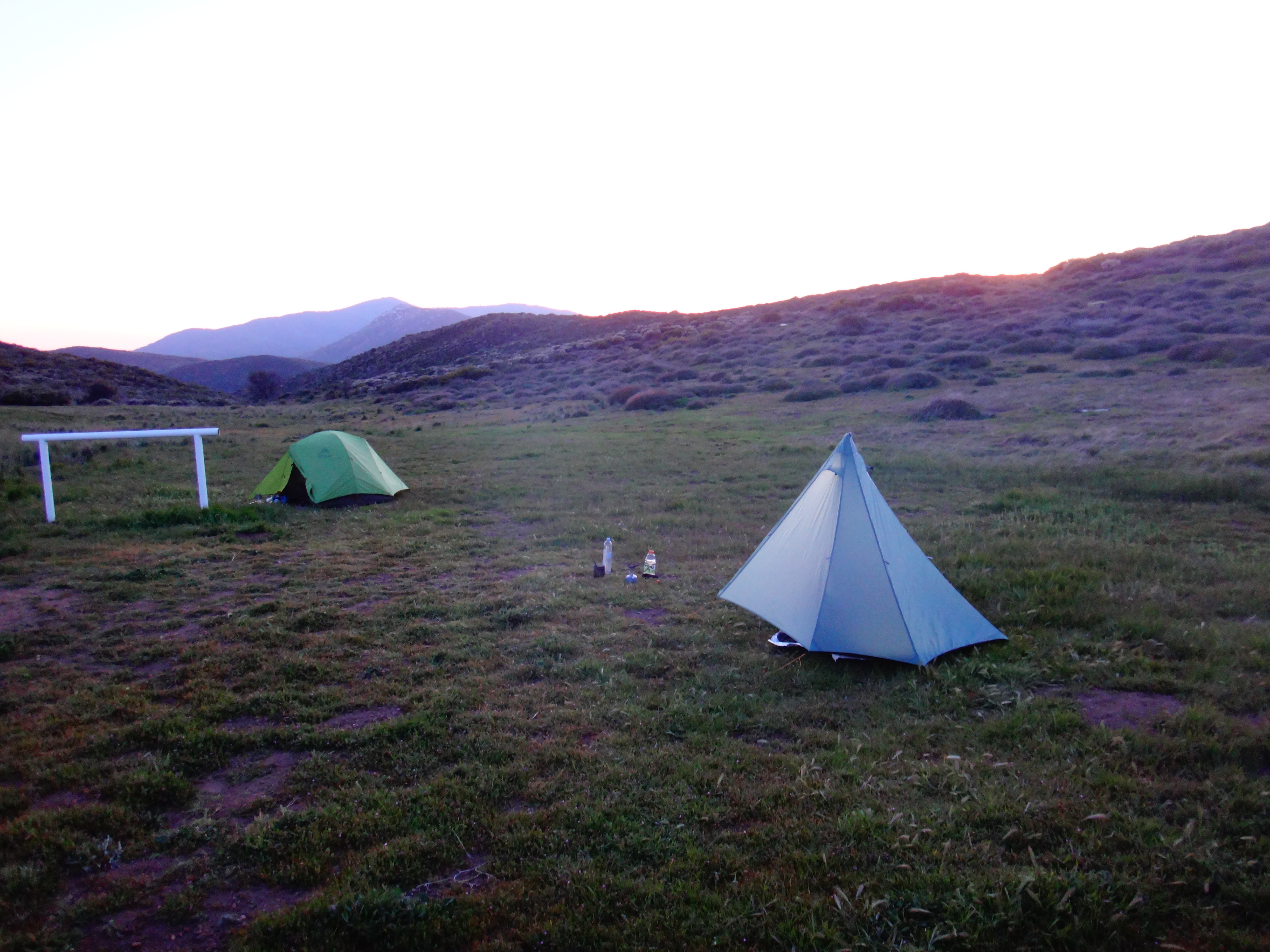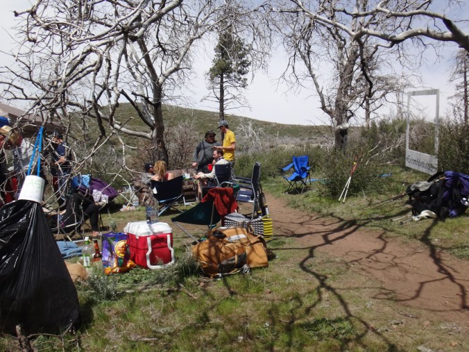 Nach einer kalten Nacht haben wir ausgeschlafen. Das Restaurant macht erst um 8 Uhr auf. So blieb ich bis 7 im Bett. Dann gemütlich alles zusammen gepackt und noch 15 Minuten vor dem Restaurant mit anderen Hikern gewartet. Die Sonne kommt so langsam zum vorschein. Im Restaurant sitzten wir zusammen mit den anderen Hikern und werden auf Grund eines Geburtstages alle eingeladen. Es gibt Pfannkuchen Dänischer Art und einige Kaffee. Nach und nach füllen immer mehr Hiker den Laden. Gegen 9:30 macht der Outdoorshop auf. Bei warten wiege ich meinen Rucksack 19 Pfund mit 1,5 l Wasser und 3,5 Tagen Essen. In dem kleinen Laden scheint es alles zu geben. Auf ca. 20 m2 sind 1000 Sachen eng beieinander gestapelt. Es bilden sich enge Gassen umzingelt von Outdoorausrüstung. Ziemlich urig. Ich kaufe neue Heringe, Abspannleine und Sonnencreme füe Höhentouren. Die Sonne brezelt einen nieder. Beim örtlichen Laden halte ich kurz und schreibe den Blog von gestern. War einfach zu ungemütlich um die Finger aus den Handschuhen und dem Schlafsack zu holen. Dann gehts weiter. Auf der Straße laufe ich Richtung Trail. Den Abzweig verpasse ich und muss die Straße wieder hochlaufen nachdem ich auf der App geschaut habe wo ich hin muss. Ich mache das Handy höchstens 2 Mal am Tag an um zu schauen wo ich bin oder wie weit es noch ist. Es geht heute größtenteils bergab. Die Landschaft ist herrlich. Leichte Wiesen bestückt mit alten, teilweise verbrannten Bäumen. Handgroße Tannenzapfen liegen auf dem Weg. Nach ein paar Meilen öffnet sich die Landschaft und man gelangt zu einer mega Aussicht. Unter mir ein riesiges Tal. Auf dem Berg stehend schaut man in riesige Weiten. Es geht einige hunderte Meter hinab. Es scheint unendlich. Ich wandere entlang dieser Bergflanken, quere abgebrannte weiße Bäume und überhole so manchen Hiker. Wie immer schlängelt sich der Trail am Hang entlang oder führt in serpentinen hinauf oder hinunter. Bei einer weiteren Aussicht mit Straßenanbindung erwische ich noch einen alten Thruhiker. Er gibt mir ein Bier und eine Orange. Es ist 12:30. Nach einer kleinen Genuss Pause geht es weiter. Nach nur 2 Meilen kommt der nächste Trailmagic Stand. Zwei geoße Zelte. Es wird einem der Rucksack abgenommen und feuchte Tücher gereicht. Gleich danach bekomme ich einen großen Becher Margarita gereicht. Mit diesem gehe ich zu den drei mit Essen gefüllten Tischen und mache mir zwei Burritos. Es gibt Eis, selbstgemachte Brounies, Bagels, Obst, Melone mit und ohne Wodka. Bier, Soda und vieles weitere. Nebenher läuft Musik und 10 Hiker freuen sich über die gemütliche Überraschung. Denn ein Sofa wurde ebenfalls heran getragen. Nachdem die Gruppe aufbrechen muss ziehen wir schweren Herzens weiter. Mit Obst und frischem Gebäck, der/ die ein oder andere auch mit Wodkamelone oder einem Feierabendbier bestückt. Die Landschaft ist nun wieder offener und die Sonne bruzelt schon den ganzen Tag. Ich habe mein Buff um den hals um meinen feuerroten Nacken zu schützen. Es läuft ziemlich gut. Ich überhole viele die bereits seit längerer Zeit vom Trailmagic Standort aufgebrochen waren. Nach einer Stunde Bergflanken, grünen Sträuchern und sandigen Trail komme ich an einen kleinen Grillplatz. Ich nehme noch einen liter Wasser mit und warte auf meine Kameraden. Es ist erst 15.30. Ein wenig früh um die Zelte aufzuschlagen. Wir beschließen weitere 6,8 Meilen zu gehen. Wieder am Berg entlang teilweise schon ausgesetzte Stellen. Es zieht sich ewig. Immer in die Bergflanke hinein und hinaus. Scheinbar mit 1000 Wiederholungen. Das einzig gute ist, dass man andere wanderer leichter sieht und erkennt. Nach einer weile ändert sich die Landschaft wieder und viele große helle Felsen geben ein tolles Bild ab. Die besten Plätze für die Übernachtung sind scvon belegt. Egal, habe eh nicht mehr viel Wasser. Wieder überhole ich eine Menge Hiker. In einem kleinen Tal läuft noch ein Bach. Auch hier sind alle Plätze belegt. Unser Ziel liegt noch 2 Meilen entfernt. Mike und ich machen uns gemeinsam auf Weg. Er ist genauso wie ich schon ziemlich platt. Wir nehmen die letzten Meilen halt mit. War kein preisverdächtiger Abschnitt. Vom Trail sind wir dann 0.25 Meilen zum Sunrise trailhead gewandert. Hier gibt es eine Pferdekoppel auf der wir zelten können. Der Pferdetrog sorgt für Wasser. Wie sind komischerweise allein. Der Trail war heute so überlaufen, wir haben ca. 25 Hiker überholt und 20 bereits aufgebaute Zelte gesehen, dass wir dachten hier wäre auch alles voll. Naja, wir bauen in ruhe auf und ich trockne noch schnell den Schlafsack in letzten Sonnenstrahlen. Dann wird das abendessen zubereitet. Kartoffelbrei und Ramen Nudel. Dann schnell alles bettfertig machen denn ohne sonne wird es sehr schnell kalt. Außerdem nerven die Moskitos übel. Die neue Leine benutze ich um eine Seite meines Zelt ein wenig zu formen. Im schlafsack gibts denn Blogeintrag von heute. Morgen geht es 17 Meilen nach Julian.
