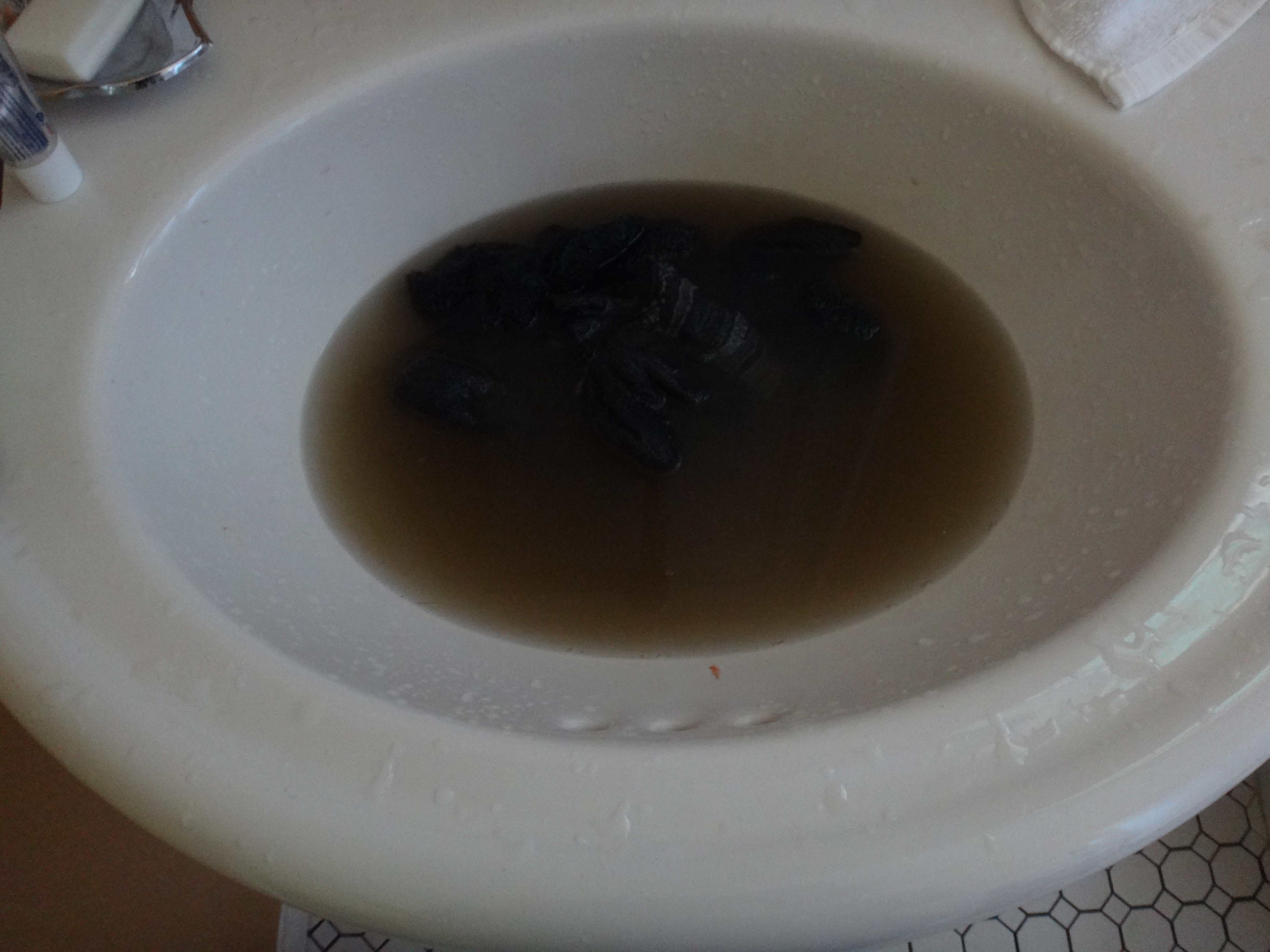 Da wir die Nacht in der Lodge verbracht haben war der Schlaf doch recht erholsam. Wir ließen noch einen Hiker ohne Zimmer bei uns duschen. Nach einer ordentlichen Pizza, Bier und Independence Day kann man gut entspannen. Trotzdem war ich schon früh wach und konnte noch ein paar Bilder hochladen. Das Frühstück war gut. Es gab reichlich frisches Obst, Joghurt, Pancakes, Bagels, Kaffee, Limonade, Orangensaft, etc. Vor dem Frühstück hab ich jedoch meine Socken und Oberteil gewaschen. Das Waschbecken war fast schwarz. Urghhh. 😀