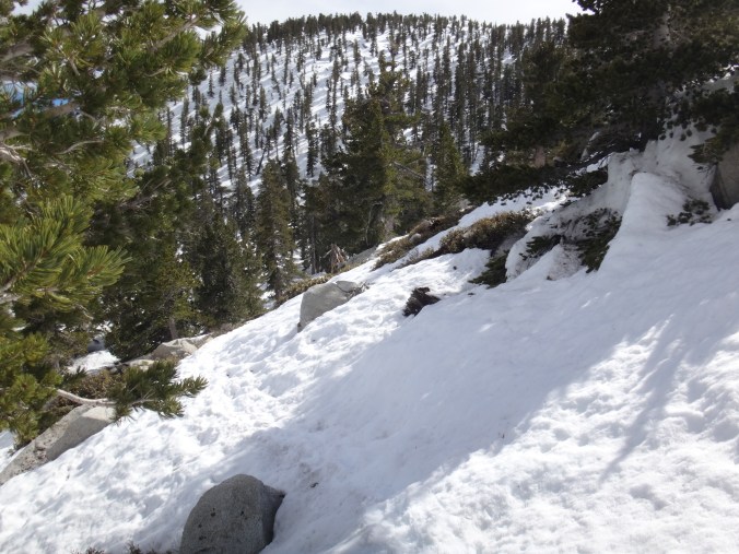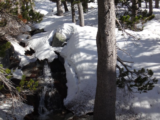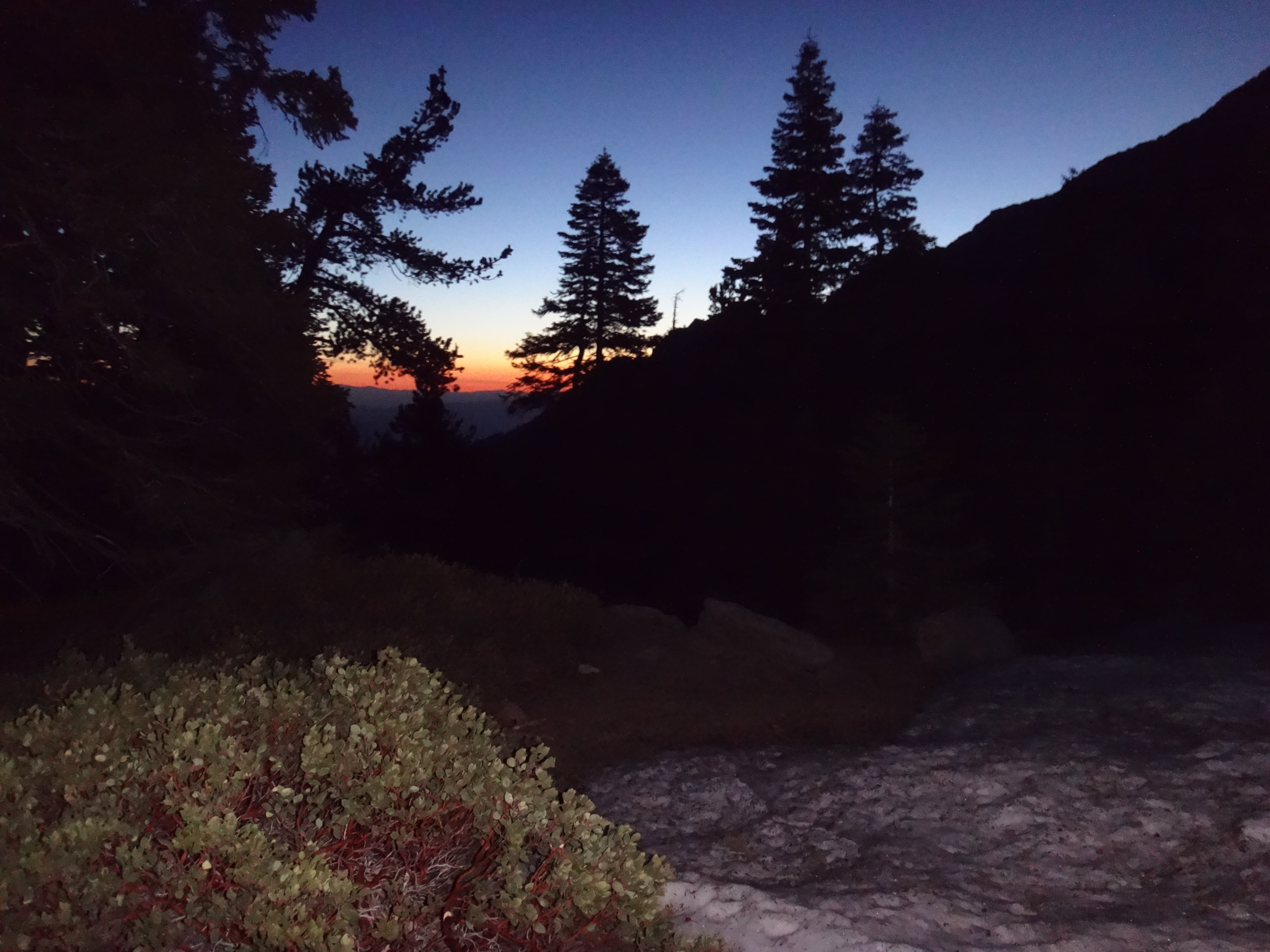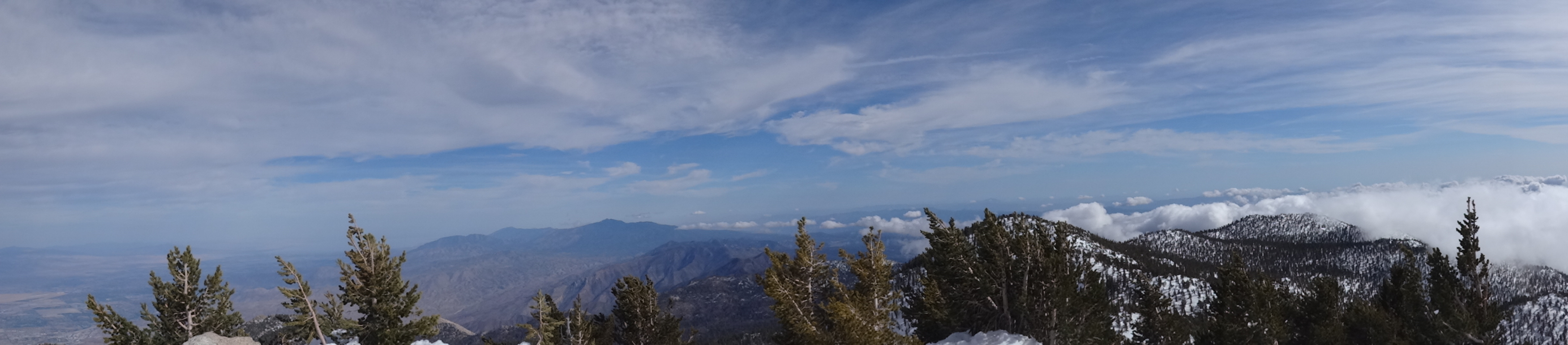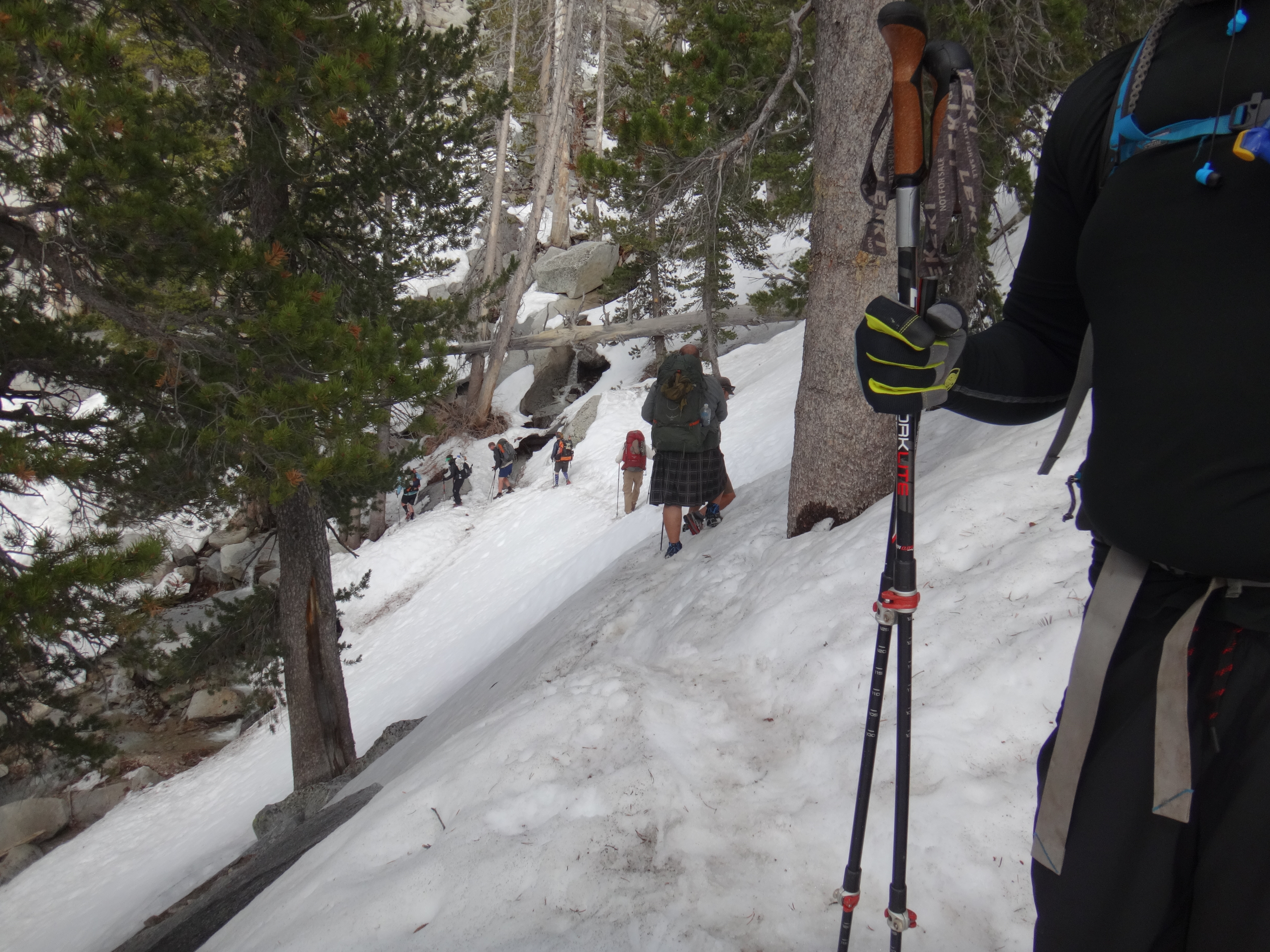 Heute morgen ging es gemütlich los. Frühstücken, telefonieren, einkaufen, Steigeisen von der Post holen. Um 11 bin ich dann los Richtung Humber Park. Von hier geht der Devil Slide Trail 500 Höhenmeter in 4 km hinauf. War recht angenehm zu laufen und hatte schöne Ausblicke auf das Tal. 300 weitere Höhenmeter hatte ich bereits bis zum Parkplatz zurück gelegt. Zurück auf dem PCT habe ich erstmal eine ausgiebige Mittagspause eingelegt. 200g Tunfisch in Wraps verpack und meinen Zeh in ein Pflaster. Habe bei meinem 50km Marsch eine kleine Blase zwischen zwei Zehen bekommen. Aber nur wegen dem ganzen Dreck. Dann ging es um 13.30 weiter auf dem PCT. Steil hinauf mit großen felsigen Stufen. Die ersten Schnee Felder waren bereits im Weg. Bis auf den schweren Rucksack und gewisser Müdigkeit ging es ganz normal vorwärts. Es hat auf jeden Fall länger als gedacht gedauert bis die 3 km hinfällig waren. Dann bin ich allein zum San Jacinto aufgebrochen. Auf der sonnenabgewandten Seite lag noch viel Schnee. Ich zog meine Steigeisen an. Der Trail war nicht mehr zu erkennen. Verschiedene Spuren führten überall hin. Ich kam vom weg ab und bin per gps irgendwann wieder auf den Trail gestoßen. Es ist mega anstrengend. Man rutscht die ganze Zeit. Versinkt tief oder schliddert einen kleine Hügel hinab. Den Gipfel habe ich gegen 16:00 Uhr erreicht. Auch den 1Weg dorthin habe ich quer Feld ein bestritten. Einfach gerade aus hoch. Man konnte nichts erkennen. Mit jedem Höhenmeter schwand auch der Sauerstoff. Ich war ganz ordentlich am pusten und musste jede 10 Schritte am Hang pause machen. Der Mund und Rachen wurden ganz trocken. Naja, ich stand irgendwann oben habe die verdiente aussicht genossen und mich ehrlich gesagt schnell verpisst. Es war mega windig und super spät. Für die restlichen ca. 3km Abstieg habe ich 2 Stunden gebraucht. Ich dachte auf der Sonnenseite wird nicht mehr so viel liegen. Pustekuchen. Alles weiß. Ich bin wie ein Blinder auf einem Parkplatz die eine Laterne suchend so gut es ging dem trail gefolgt. Das handy stets in der hand jede minute den standort checkend. Zum Schluss bin ich dann soweit abgekommen das ich einfach dem flusslauf bis auf den pct gefolgt bin. Da kam mir gerad eine Gruppe entgegen die ich erstmal nach dem weg gefragt habe. Ich stand wirklich auf dem richtigen trail und hatte es geschafft. Alter war ich froh das ich wieder unter leuten war. Das war dann zeitweise doch unangenehm. Vor allem wenn es dunkel wird. Na ja ich bin den leuten dann erstmal gemütlich und glücklich hinterher geschlappt. Nach dem sich einige lang gemacht haben bin ich dann vornweg und wollte Rattler einholen. Der wollte irgendwo 5km entfernt schlafen. Ich wieder in den 1 Gang und ab die Post. Das hat dieses mal echt Kraft gekostet. Dieses schneelaufen ist der fettbrenner schlecht hin. Ich schlag mich also wieder durch den Schnee nachdem ein größerer Teil gut zu laufen war und komme gerade aus dem Busch steht Rattler schon da. Dick eingepackt verdrückt er die letzten reste vom abendessen. Tolles Gefühl ihn zu sehen. Wir fallend uns grinsend und freudig in die Arme. Ein anderer Hiker ist auch bei ihm. Ich berichte von meinen Strapazen auf dem Gipfel. Baue mein Zelt auf und fange an zu kochen. Meine Schuhe sind total nass. Meine socken hängen zum trocknen. Nach und nach schaut auch die andere Gruppe vorbei und sucht sich Zeltplätze. Die können auch nicht mehr und es ist schon 7 uhr durch. Bis zum nächsten Zeltplatz ist es noch mehr als 5km. Das bei Schnee und Eis. Nein danke. Ich bin einfach froh wieder bei meinen Homies zu sein. So einen Ausritt brauch ich nicht nochmal. Wenn man keine Wege sieht ist man allein mindestens einer zu wenig. Jetzt schlafen wir hier auf 2640m weil wir es nicht weiter geschafft haben. Der Wind bläst sehr stark. Es sind immer hin noch 4 Grad Plus. Hoffentlich halten die Heringe und uns fällt kein Baum auf den Kopf. Morgen gehts um 6 los. Damit wir den scheiss hier hinter uns bringen. Muss noch irgendwo wasser finden. Die nächsten 30 kilometer soll es anscheinend nichts geben. Ich hab noch 1,5 Liter. Könnte gehen aber wird ungemütlich.