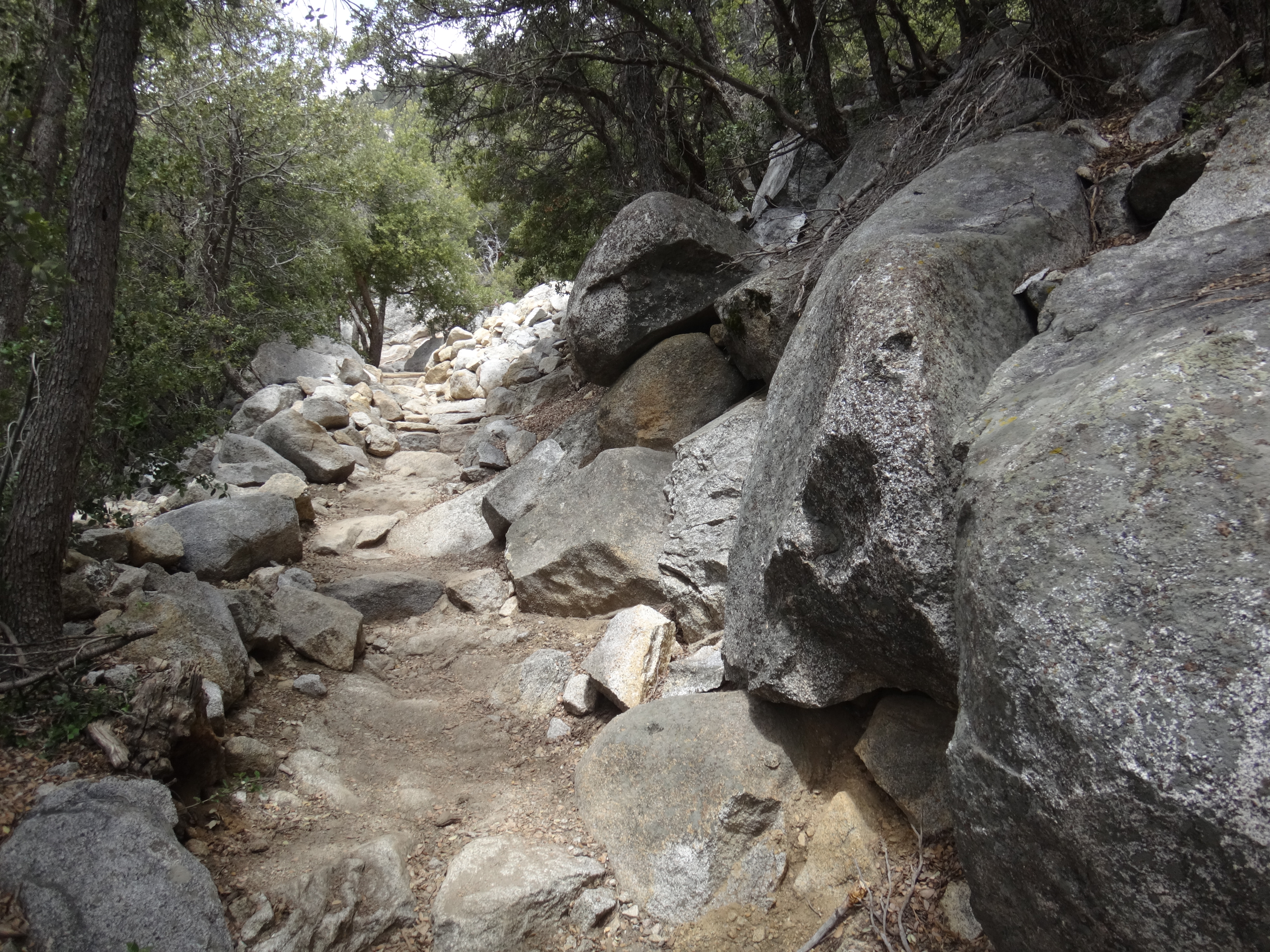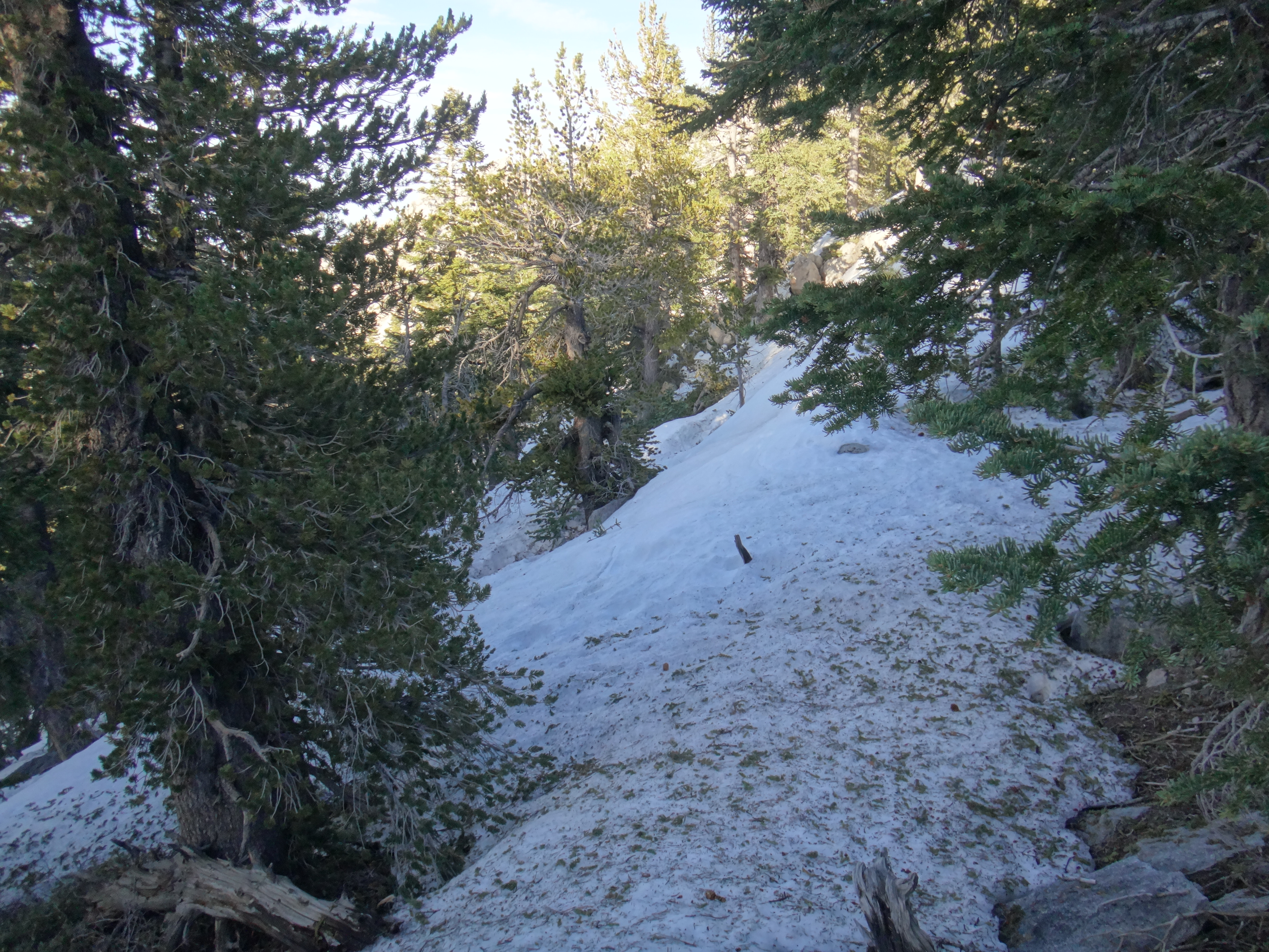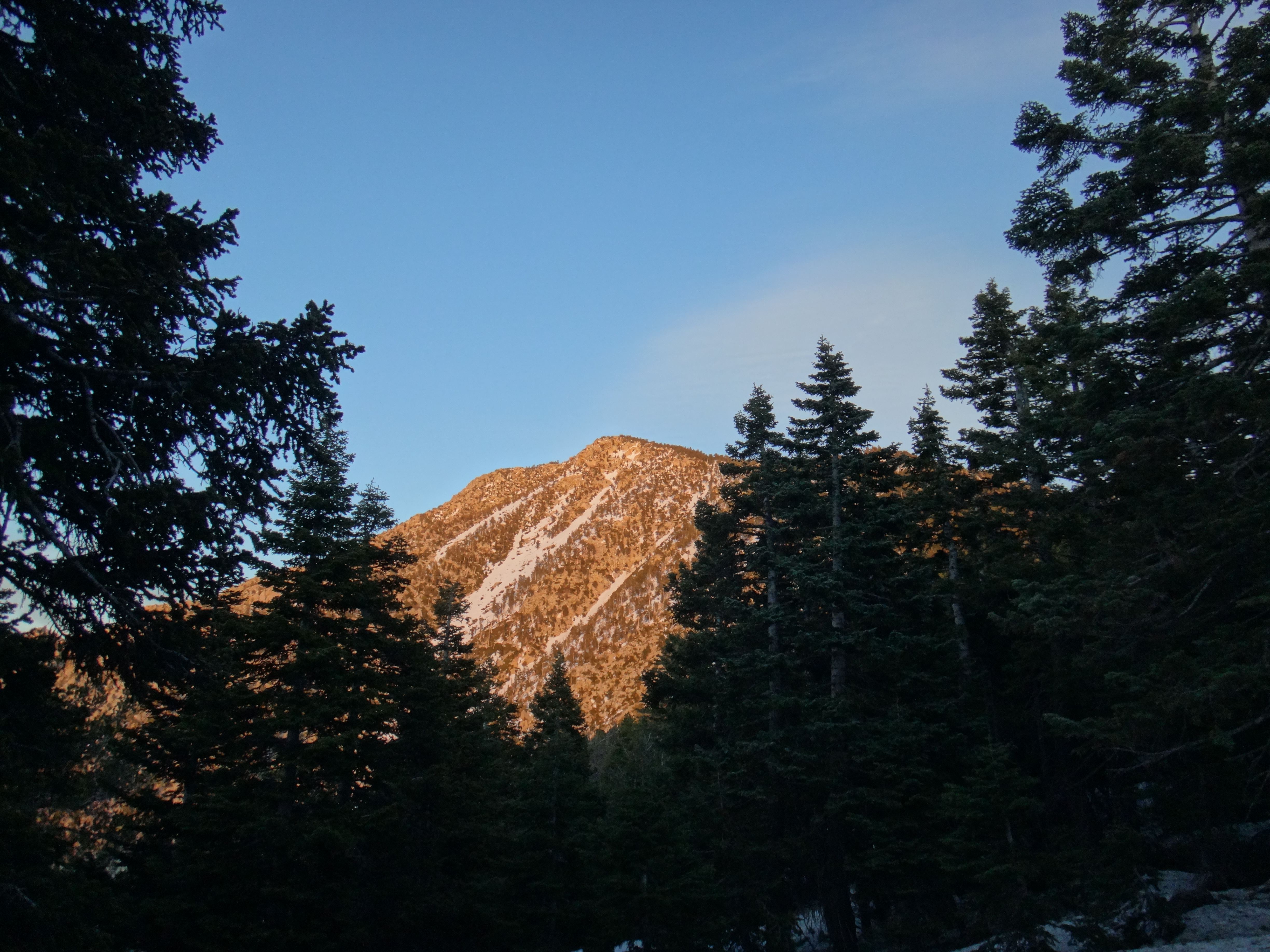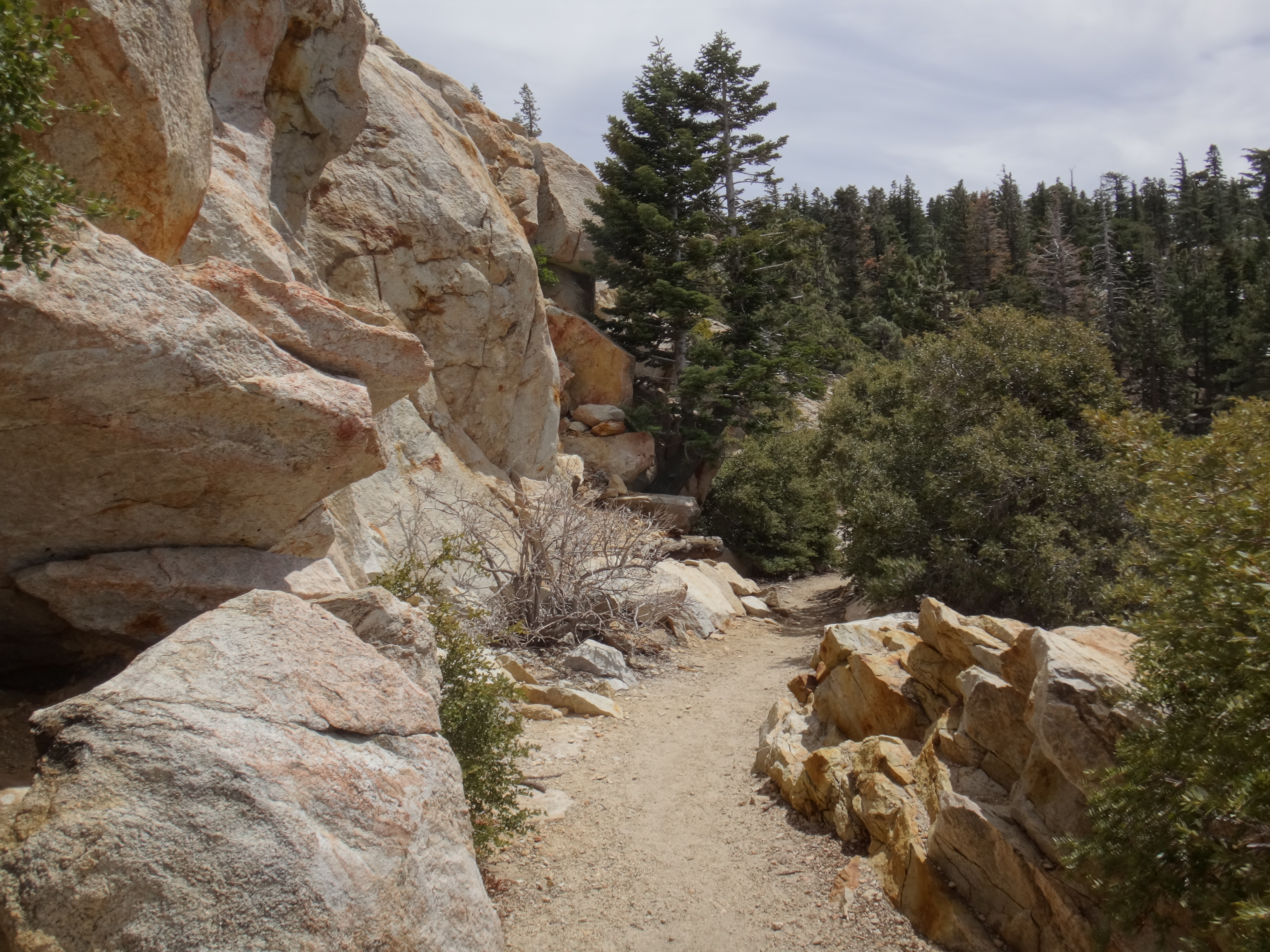Heute morgen ging es gemütlich los. Frühstücken, telefonieren, einkaufen, Steigeisen von der Post holen. Um 11 bin ich dann los Richtung Humber Park. Von hier geht der Devil Slide Trail 500 Höhenmeter in 4 km hinauf. War recht angenehm zu laufen und hatte schöne Ausblicke auf das Tal. 300 weitere Höhenmeter hatte ich bereits bis zum Parkplatz zurück gelegt. Zurück auf dem PCT habe ich erstmal eine ausgiebige Mittagspause eingelegt. 200g Tunfisch in Wraps verpack und meinen Zeh in ein Pflaster. Habe bei meinem 50km Marsch eine kleine Blase zwischen zwei Zehen bekommen. Aber nur wegen dem ganzen Dreck. Dann ging es um 13.30 weiter auf dem PCT. Steil hinauf mit großen felsigen Stufen. Die ersten Schnee Felder waren bereits im Weg. Bis auf den schweren Rucksack und gewisser Müdigkeit ging es ganz normal vorwärts. Es hat auf jeden Fall länger als gedacht gedauert bis die 3 km hinfällig waren. Dann bin ich allein zum San Jacinto aufgebrochen. Auf der sonnenabgewandten Seite lag noch viel Schnee. Ich zog meine Steigeisen an. Der Trail war nicht mehr zu erkennen. Verschiedene Spuren führten überall hin. Ich kam vom weg ab und bin per gps irgendwann wieder auf den Trail gestoßen. Es ist mega anstrengend. Man rutscht die ganze Zeit. Versinkt tief oder schliddert einen kleine Hügel hinab. Den Gipfel habe ich gegen 16:00 Uhr erreicht. Auch den 1Weg dorthin habe ich quer Feld ein bestritten. Einfach gerade aus hoch. Man konnte nichts erkennen. Mit jedem Höhenmeter schwand auch der Sauerstoff. Ich war ganz ordentlich am pusten und musste jede 10 Schritte am Hang pause machen. Der Mund und Rachen wurden ganz trocken. Naja, ich stand irgendwann oben habe die verdiente aussicht genossen und mich ehrlich gesagt schnell verpisst. Es war mega windig und super spät. Für die restlichen ca. 3km Abstieg habe ich 2 Stunden gebraucht. Ich dachte auf der Sonnenseite wird nicht mehr so viel liegen. Pustekuchen. Alles weiß. Ich bin wie ein Blinder auf einem Parkplatz die eine Laterne suchend so gut es ging dem trail gefolgt. Das handy stets in der hand jede minute den standort checkend. Zum Schluss bin ich dann soweit abgekommen das ich einfach dem flusslauf bis auf den pct gefolgt bin. Da kam mir gerad eine Gruppe entgegen die ich erstmal nach dem weg gefragt habe. Ich stand wirklich auf dem richtigen trail und hatte es geschafft. Alter war ich froh das ich wieder unter leuten war. Das war dann zeitweise doch unangenehm. Vor allem wenn es dunkel wird. Na ja ich bin den leuten dann erstmal gemütlich und glücklich hinterher geschlappt. Nach dem sich einige lang gemacht haben bin ich dann vornweg und wollte Rattler einholen. Der wollte irgendwo 5km entfernt schlafen. Ich wieder in den 1 Gang und ab die Post. Das hat dieses mal echt Kraft gekostet. Dieses schneelaufen ist der fettbrenner schlecht hin. Ich schlag mich also wieder durch den Schnee nachdem ein größerer Teil gut zu laufen war und komme gerade aus dem Busch steht Rattler schon da. Dick eingepackt verdrückt er die letzten reste vom abendessen. Tolles Gefühl ihn zu sehen. Wir fallend uns grinsend und freudig in die Arme. Ein anderer Hiker ist auch bei ihm. Ich berichte von meinen Strapazen auf dem Gipfel. Baue mein Zelt auf und fange an zu kochen. Meine Schuhe sind total nass. Meine socken hängen zum trocknen. Nach und nach schaut auch die andere Gruppe vorbei und sucht sich Zeltplätze. Die können auch nicht mehr und es ist schon 7 uhr durch. Bis zum nächsten Zeltplatz ist es noch mehr als 5km. Das bei Schnee und Eis. Nein danke. Ich bin einfach froh wieder bei meinen Homies zu sein. So einen Ausritt brauch ich nicht nochmal. Wenn man keine Wege sieht ist man allein mindestens einer zu wenig. Jetzt schlafen wir hier auf 2640m weil wir es nicht weiter geschafft haben. Der Wind bläst sehr stark. Es sind immer hin noch 4 Grad Plus. Hoffentlich halten die Heringe und uns fällt kein Baum auf den Kopf. Morgen gehts um 6 los. Damit wir den scheiss hier hinter uns bringen. Muss noch irgendwo wasser finden. Die nächsten 30 kilometer soll es anscheinend nichts geben. Ich hab noch 1,5 Liter. Könnte gehen aber wird ungemütlich.
