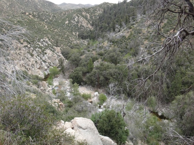 Den Wecker um 5.50 habe ich getrost ausgeschaltet. Es war zu gemütlich und meine Gedanken zu schön um diese zu verwerfen. So schlummerte ich noch ein wenig vor mir hin. Bei +1 Grad baute ich das Zelt ab ubd zog mir noch das Fleece über mein T-Shirt. Es war richtig kalt als ich um 6.40 los bin. Ich glaub ich hatte blaue Hände bis ich endlich die Sonne erreicht habe. Neben dem Fluss entlang ging es mit vielen Flesen unter den Füßen und zur Seite vorwärts. Im Bach konnte ich einen Bieber ausmachen. Das war toll. Es war größten Teils bewölkt. Durch das Tal ging es ziemlich lang durch schönes Gelände. Viele Boulder und Bäume. An den Bergflanken lagen viele Bäume umgeknickt. Nach ca. 2 Stunden fühlte ich mich irgendwie dösig. Meine Augen waren auf Halbmast. Hatte wohl zu wenig getrunken und war ein wenig neben mir. In der Ferne konnte ich große Berge mit Schnee ausmachen. Gegen 12 bin ich an einen Bach gekommen und habe mit Mike und Bethany Mittag gemacht. Ich war immer noch kaputt. Am Deep Creek entlang ging es dann den gesamten Nachmittag entlang. Die Schlucht war sehr beeindruckend. Durch die 20 km am am Vormittag war ich schon ziemlich platt. Als die Möglichkeit kam wieder Wasser zu holen habe ich eine ausgiebige Pause eingelegt. Später kam dann Nasenbluten hinzu. Als ich dann später um eine Ecke bog und an einem Busch vorbei kam rasselte es auf einmal. Ich schrie auf und hüpfte wie ein Kängeru zurück und rsnnte erstmal 3 Meter zurück. Dann langsam geschaut wo die Klapperschlange sitzt. Dabei hat sie immer wieder geklappert. Es war nur eine kleine aber ich habe mich übel erschrocken. Die nächsten Kilometer bin ich dann ziemlich langsam und vorsichtig gegangen. Die Stöcke vornweg und jeden Busch schüttelnd. An den Hot Springs angekommen hole ich erstmal Wasser und koche zu Abend. Es ist 17.20 Uhr. Mike und Bethany kamen dann auch und ich bin mit Mike in den heißen Pool gegangen. Großartig. Richtig heiß und entspannend. Endöich wieder sauber. Rattler und Wooky trudeln dann auch ein. Ich gehe mit Mike und Bethany noch ein paar Meilen da es hier verboten ist zu campen und zu viele Leute hier rumhängen. Nicht nur Hiker sondern vor allem Dayhiker und komische Gestalten. Ich fühl mich nicht wirklich wohl auch wenn dies ein super Platz ist. Wir suchen uns was ruhiges für die Nacht. Wir wandern in die Dämmerung und kommende Dunkelheit. Nachdem wir eine Brücke queren suchen wir uns einen Platz hinter ein paar Bouldern und schlafen unter den Sternen. Ich sehe tausende und gleite in den Schlaf.