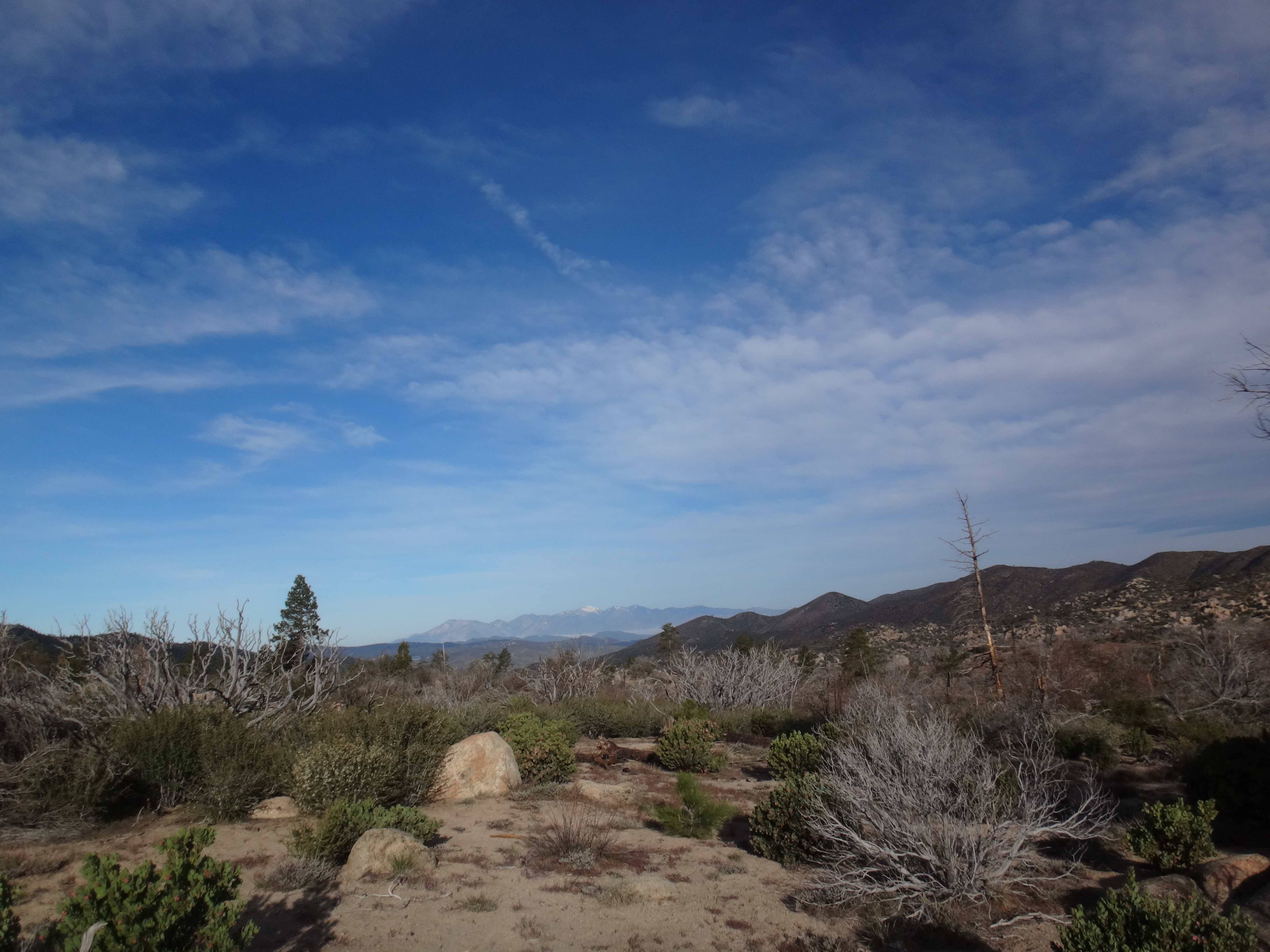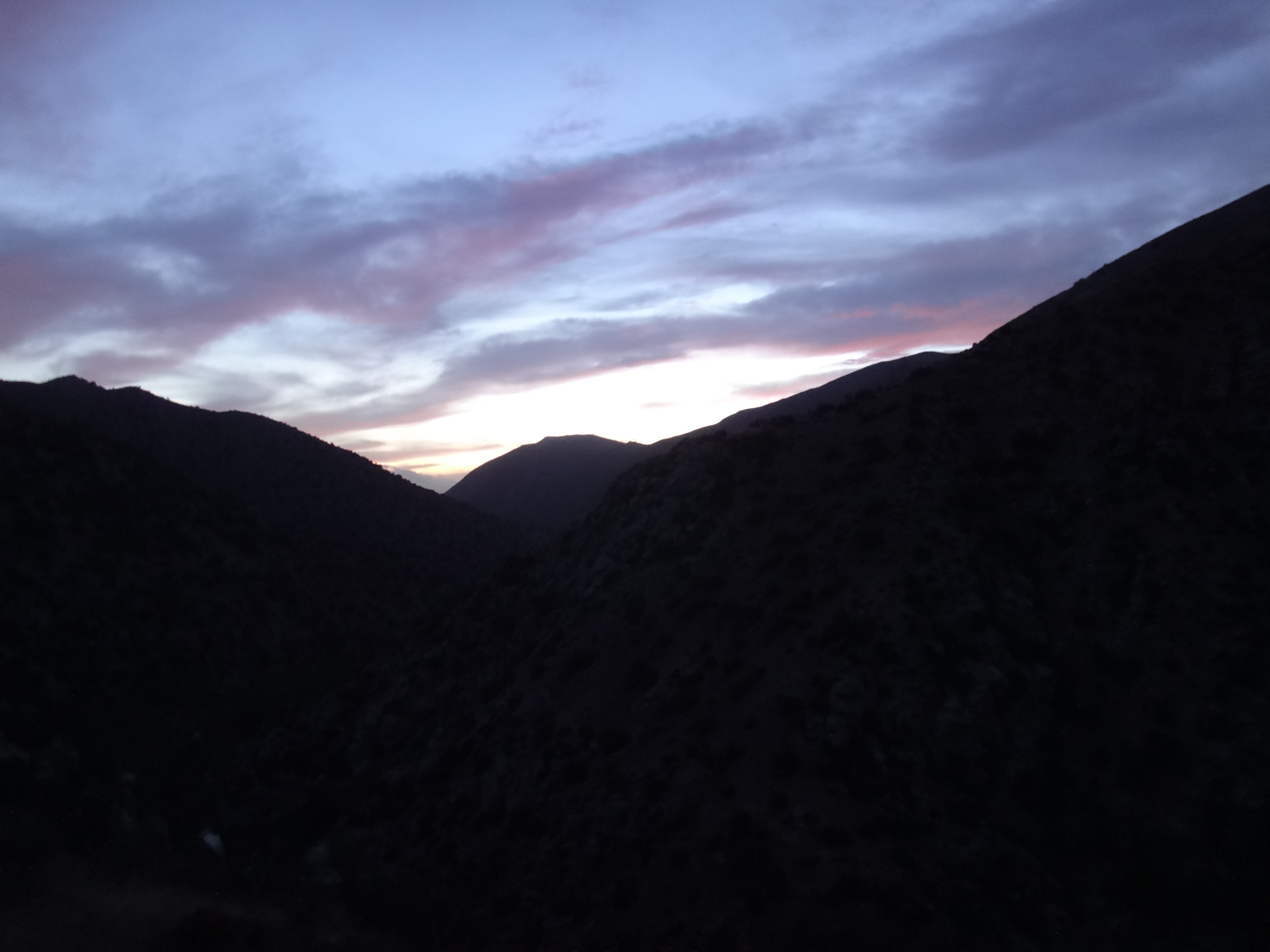 Den Wecker um 5.50 habe ich getrost ausgeschaltet. Es war zu gemütlich und meine Gedanken zu schön um diese zu verwerfen. So schlummerte ich noch ein wenig vor mir hin. Bei +1 Grad baute ich das Zelt ab ubd zog mir noch das Fleece über mein T-Shirt. Es war richtig kalt als ich um 6.40 los bin. Ich glaub ich hatte blaue Hände bis ich endlich die Sonne erreicht habe. Neben dem Fluss entlang ging es mit vielen Flesen unter den Füßen und zur Seite vorwärts. Im Bach konnte ich einen Bieber ausmachen. Das war toll. Es war größten Teils bewölkt. Durch das Tal ging es ziemlich lang durch schönes Gelände. Viele Boulder und Bäume. An den Bergflanken lagen viele Bäume umgeknickt. Nach ca. 2 Stunden fühlte ich mich irgendwie dösig. Meine Augen waren auf Halbmast. Hatte wohl zu wenig getrunken und war ein wenig neben mir. In der Ferne konnte ich große Berge mit Schnee ausmachen. Gegen 12 bin ich an einen Bach gekommen und habe mit Mike und Bethany Mittag gemacht. Ich war immer noch kaputt. Am Deep Creek entlang ging es dann den gesamten Nachmittag entlang. Die Schlucht war sehr beeindruckend. Durch die 20 km am am Vormittag war ich schon ziemlich platt. Als die Möglichkeit kam wieder Wasser zu holen habe ich eine ausgiebige Pause eingelegt. Später kam dann Nasenbluten hinzu. Als ich dann später um eine Ecke bog und an einem Busch vorbei kam rasselte es auf einmal. Ich schrie auf und hüpfte wie ein Kängeru zurück und rsnnte erstmal 3 Meter zurück. Dann langsam geschaut wo die Klapperschlange sitzt. Dabei hat sie immer wieder geklappert. Es war nur eine kleine aber ich habe mich übel erschrocken. Die nächsten Kilometer bin ich dann ziemlich langsam und vorsichtig gegangen. Die Stöcke vornweg und jeden Busch schüttelnd. An den Hot Springs angekommen hole ich erstmal Wasser und koche zu Abend. Es ist 17.20 Uhr. Mike und Bethany kamen dann auch und ich bin mit Mike in den heißen Pool gegangen. Großartig. Richtig heiß und entspannend. Endöich wieder sauber. Rattler und Wooky trudeln dann auch ein. Ich gehe mit Mike und Bethany noch ein paar Meilen da es hier verboten ist zu campen und zu viele Leute hier rumhängen. Nicht nur Hiker sondern vor allem Dayhiker und komische Gestalten. Ich fühl mich nicht wirklich wohl auch wenn dies ein super Platz ist. Wir suchen uns was ruhiges für die Nacht. Wir wandern in die Dämmerung und kommende Dunkelheit. Nachdem wir eine Brücke queren suchen wir uns einen Platz hinter ein paar Bouldern und schlafen unter den Sternen. Ich sehe tausende und gleite in den Schlaf.