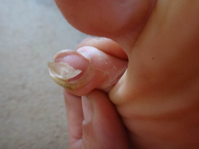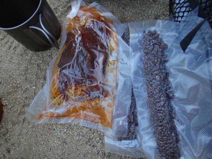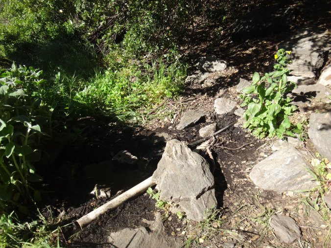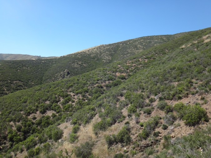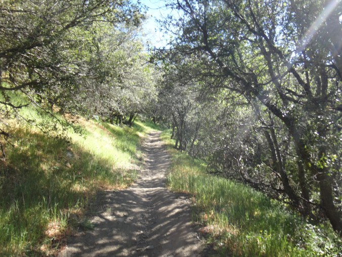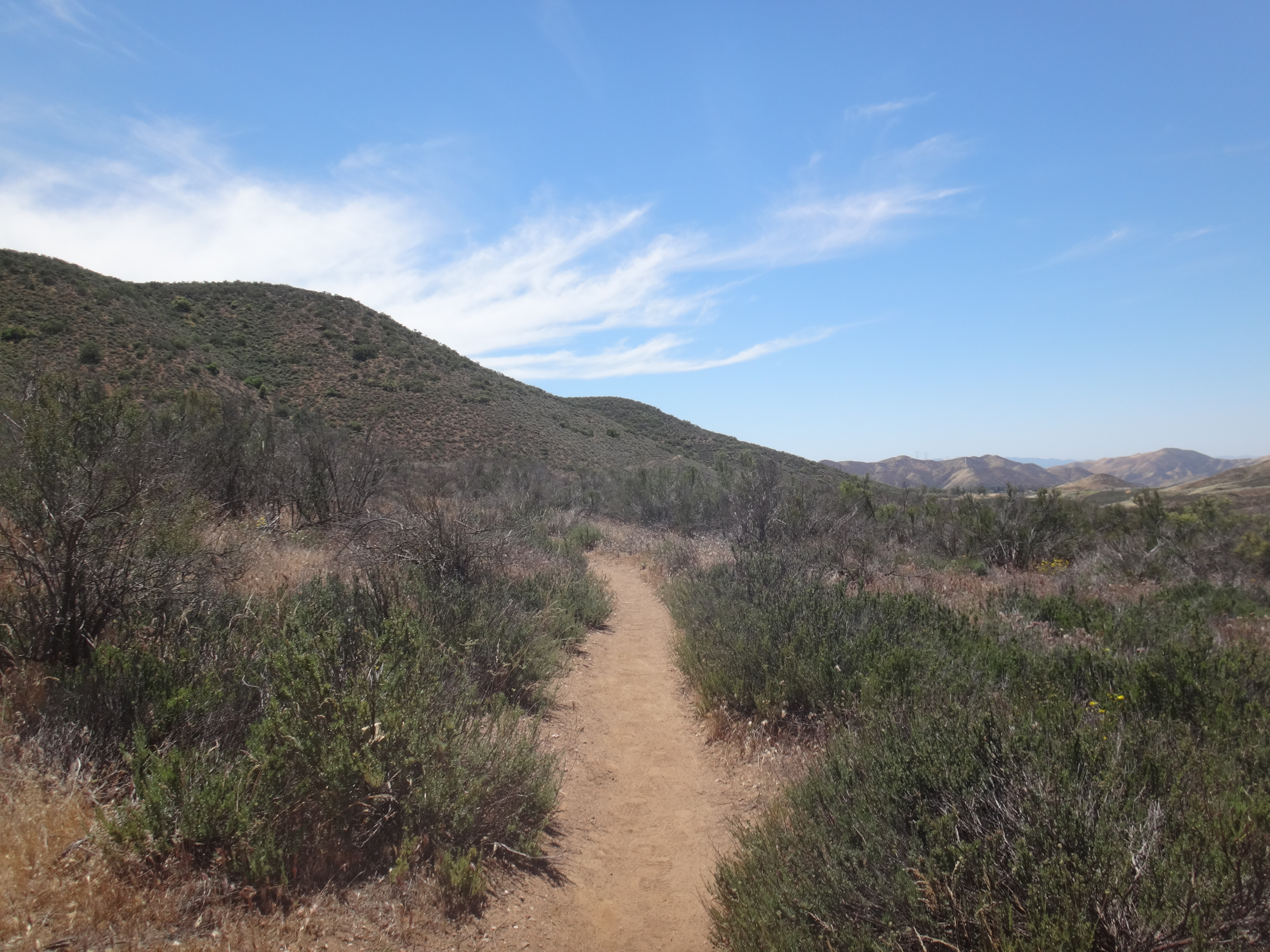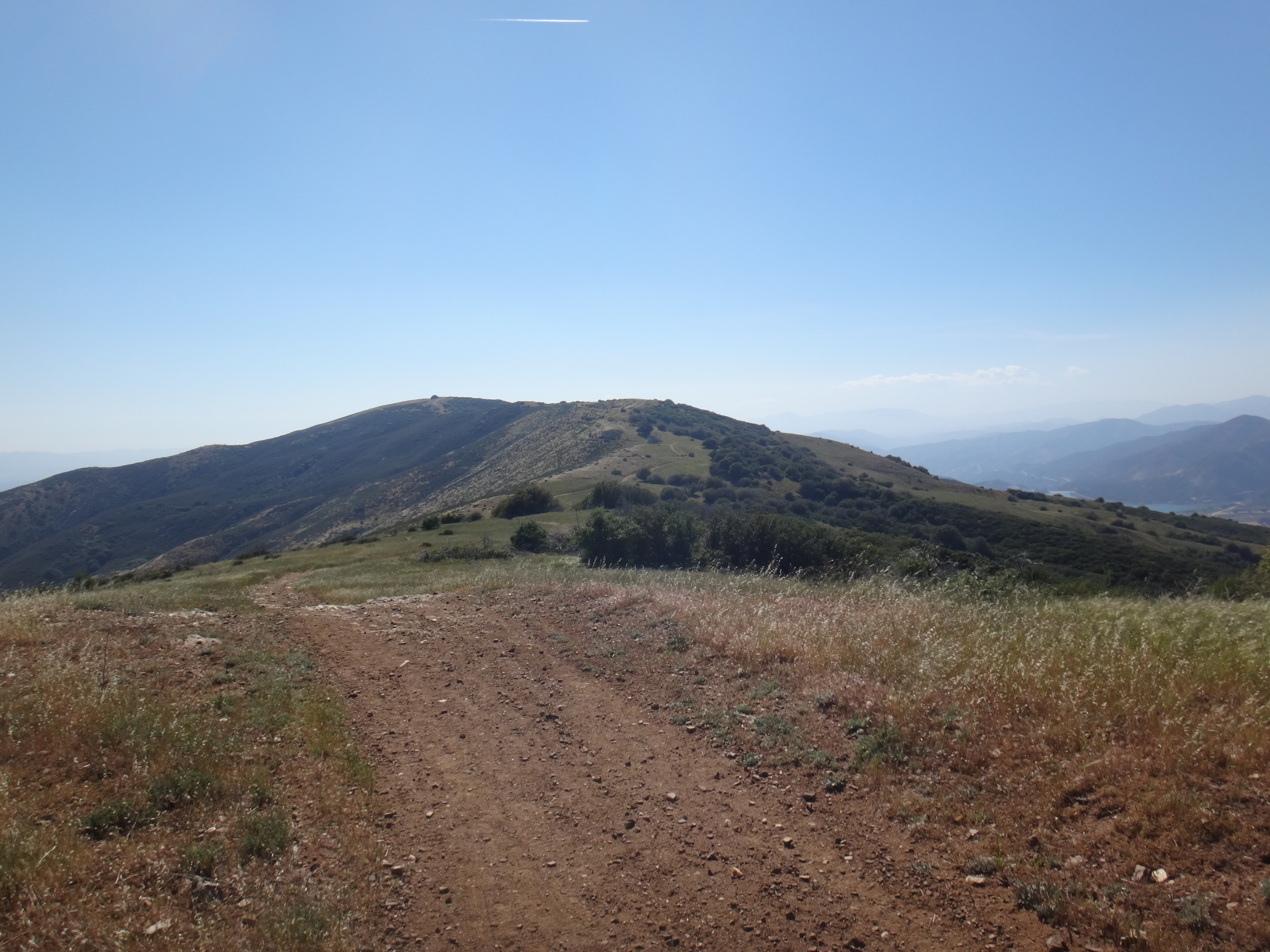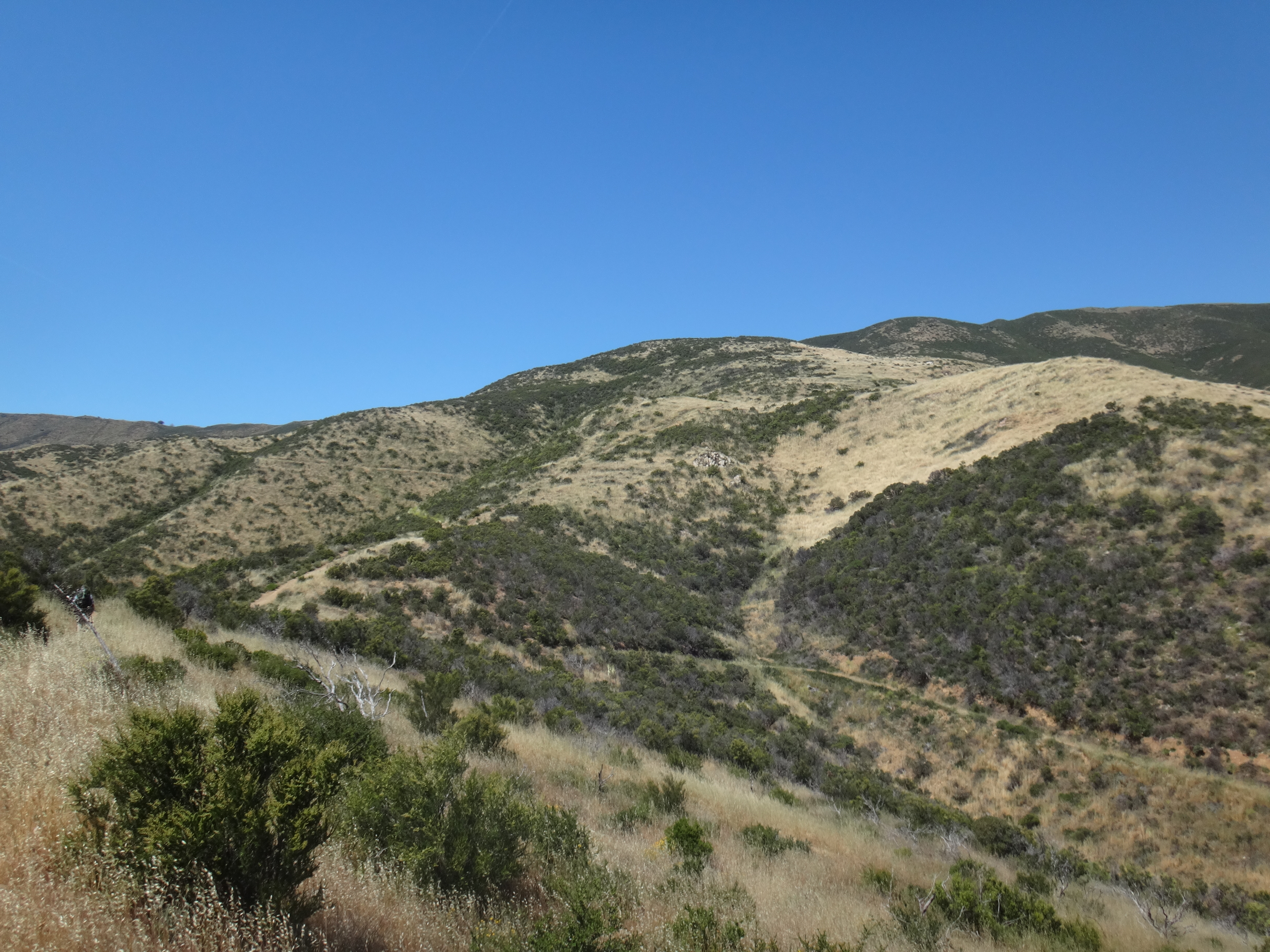 Nachdem hier alles erledigt war sind wir in die Stadt gewandert. Das war schon schweißtreiben. Aber in einem Restaurant konnten wir bei Burger und Sandwiches nochmal abkühlen. Dann ging es gegen 12 Uhr über die Hauptstraße bis zum Fuße des nächsten Berges. Large Pizza holte uns mit einem Kollegen ein. Sie slagpacken heute. Haben also nur Wasser und ein paar Snacks dabei und werden an einem bestimmten Punkt per Auto aufgegabelt. Wir hielten eine Weile mit doch als der Anstieg langsam begann mussten wir eine Pause einlegen. Wir sind nur leicht das Tal hinauf. Nichts wirklich steiles aber es ist so unbeschreiblich heiß. Ich stehe komplett unter Wasser. Normalerweise ist das nicht so. Das wir in der Mittagszeit unterwegs sind macht es nicht besser. Ich bekomme Nasenbluten. Nach ein paar Minuten im Schatten geht es weiter. Meine Nase fängt gleich wieder an aber ich laufe weiter und tropfe halt auf den Trail. Mir brennt der Schweiß in den Augen. Alles klebt. Die Sonne ist brutal. Kein Wind der Abhilfe verschafft. Wir quälen uns langsam den Berg hinauf. Keine Bäume die Schatten geben. Ich bin fertig. Das war das letzte mal das wir bei so einer Hitze wandern. Was für ein Schwachsinn. Jetzt müssen wir aber die 600m hinauf. Denn auf der anderen Seite gibt es hoffentlich eine Quelle die läuft. Unser Wasser ist eh piss warm. Die Schokoriegel kann man aus der Packung lutschen. Ich erreiche Rattler und CheapSunglasses unter einem Strauch zusammen gekauert. Versuchend wenigstens ein paar Punkte schatten abzubekommen. Mein Gesicht ist blutüberströmt. Mein Bart ist klebrig und das trockene Blut in der Nase schmerzt. Ich kann nur durch den Mund atmen da meine Nase zu ist. Der Mund wird trocken. Mein Thermometer zeigt 44 Grad. Alter Schwede. Was für eine Tortur. Als ich mich ein wenig säubern will fange ich wieder an zu bluten. Ich gebs auf. Wir schleichen den Rest hinauf. Der Wind nimmt gnädigerweise ein wenig zu. Auf dem Gipfel machen wir unter ein paar Bäumen Pause und trinken Wasser auf Körpertemperatur.. eckelhaft. Es sind noch über 35 Grad im Schatten. Der Abstieg liegt zum Glück unter ein paar Bäumen und ist nicht ganz so schlimm. Nach ein paar Kilometern erreichen wir die Quelle die zum Glück noch fließt. Wir trinken schönes kühles Wasser und machen eine ausgiebige Pause. Ich esse BeefJerky welches ich von Rattler habe. Wir treffen auch noch einen FlipFloper. Er springt von Trailabschnitt zu Trailabschnitt und wandert mal hier mal da. Der Weg ins Tal bringt die Füße an die Grenzen. Mit dem Resupply den wir nach dem Restaurant Besuch gekauft haben wiegen die 5 Liter schwer. Wie sind sowieso total matsche und zerstört. Der Aufstieg hat einfach alle Kraft geraubt und war so ernüchternd unspaßig. Wir sehen beim Abstieg schon den Trail auf der anderen Seite und einen schönen See. Wir laufen wieder etwas besser auf der anderen Seite langsam den Berg hinauf. Links und recht mannshohes Buschwerk. Der Trail ist breit und sandig. Wir laufen hier wirklich gut. Zum Schluss wird es nochmal steil und ich tippel hinter CheapSunglasses her. Er ist wie Rattler 50+ und läuft wie ein verrückter den ganzen Tag. Guter Mann. Der Campsite ist zum Glück leer als wir ankommen. Mit toller Aussicht auf den See erledigen wir unsere Routinen. Auch die Spaghetti habe ich von Rattler. Er hat vorm Trip viel Essen selbst dehydriert. Mit zwei Portionen Hackfleisch schmeckt es doppelt so gut. Ich schreibe keinen Block sondern gönne mir nach dem essen gegen 20:30 nur noch einen Film und Chips. Was für ein Tag. Viel zu spät los und dann trotzdem weiter gelaufen…. Wir haben eine Hitzewelle. Morgen stehen wir um 4.50 auf und laufen früher los.