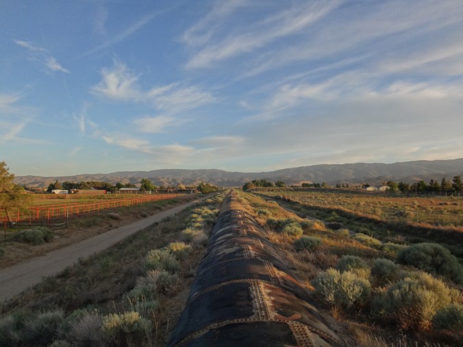 Nachdem wir morgens bereits bei Neenach ein 1kg Burrito zum Frühstück hatten an dem ich den halben Tag geknabbert habe gab es natürlich auch noch Eiscreme. Hikertown hat leider kein wlan. Nur der 4 Meilen entfernte Shop/ Restaurant. Den ganzen Tag haben wir eigentlich vergammelt. Freebird hat unmengen von Stories erzählt. Wieviele Leute sich schon vom Heli haben abholen lassen, wer Müll auf den Trail schmeißt, wer glaubt dass eine 2 jährige auf einem Pferd den PCT läuft. Ich hätte Tagelang zuhören können. Gegen Abend wurde die Hitze langsam erträglicher. Um 18.20 sind Rattler und ich dann los. Über die Straße bis zum Kalifornia Aquedukt dem wir ein wenig gefolgt sind. Dann ging es auf dem LA Aquedukt noch ca. 5 km Richtung Berge. Das laufen auf einem Stahlrohr war mal eine Abwechslung. Die Sonne ging langsam unter und wir machen nach ca. 9km eine Pause. Ab hier verläuft das Wasser unter Beton und wir müssen der Straße weitere 15km folgen. Die Nacht bricht herein und wir laufen stumpf auf der Straße. Echt langweilig nach ein paar Minuten. Nur Straße und die Betondecke. Wir sehen dafür gut die Lichter entfernter Städte leuchten. Auch der Mond schneit durch vereinzelte Wolkenfetzen. Nach einer weiteren Pause lege ich Musik auf. Das Aquedukt liegt hinter uns und wir laufen auf einer sehr sandigen Straße weiter. Hinter uns motorengeräusch und dann ein Licht. Die Motorrad hält neben uns an und wir unterhalten uns. Mark hat ein Grundstück ein paar Meter die Straße runter und läd uns ein dort zu nächtigen. Es ist nach 22.00 Uhr und wir beide stimmen zu. Wir sind einfach nur müde und sollten ja schon seit ein paar Stunden schlafen. Wir nehmen dankend an. Auf dem Grundstück erwartet uns schon ein kühles Bier und Wasser als wir aufschlagen. In richtigen Campingstühlen sitzen wir noch ein wenig zusammen. Dann bauen wir auf und schlafen umgehend ein.