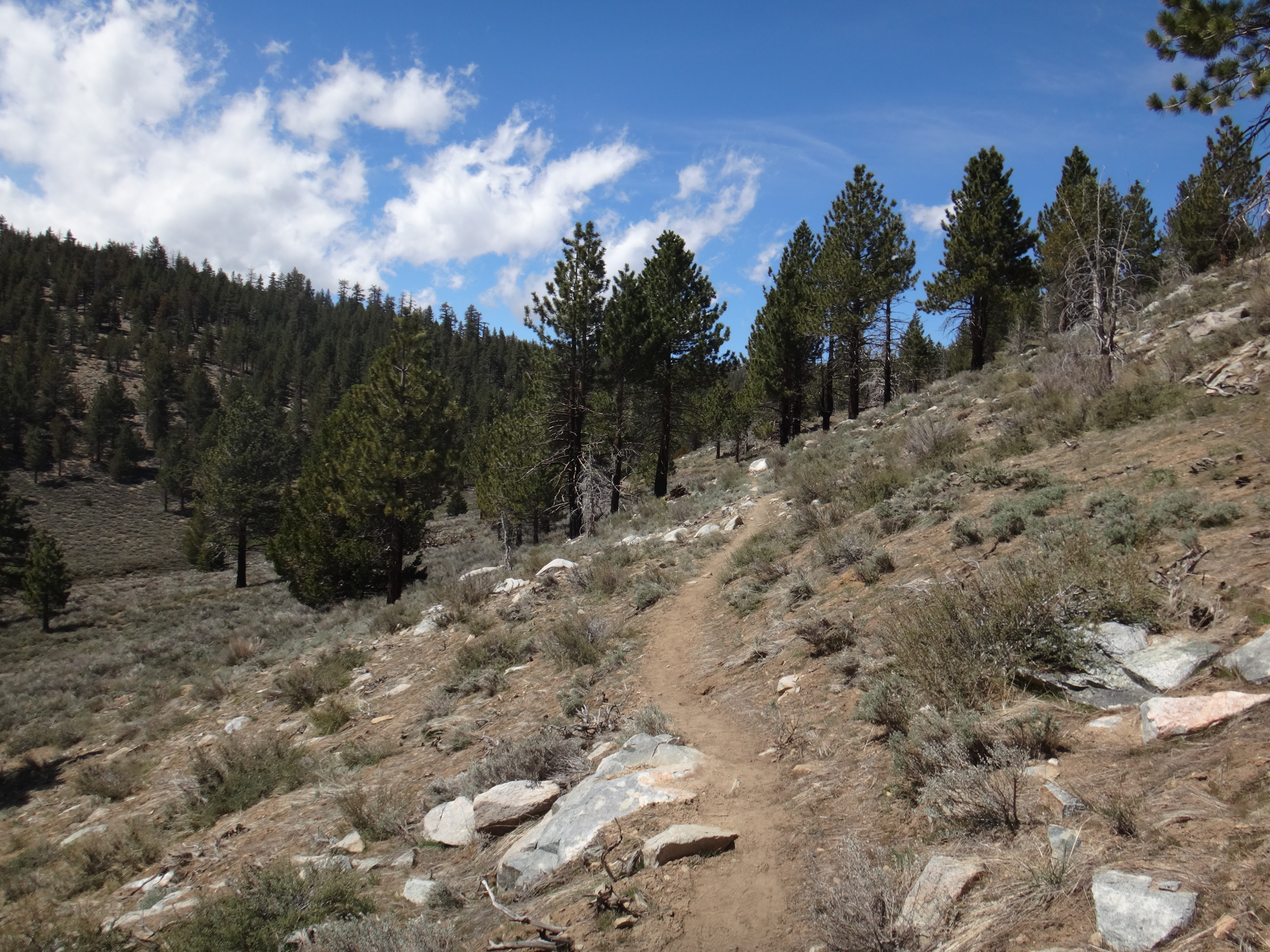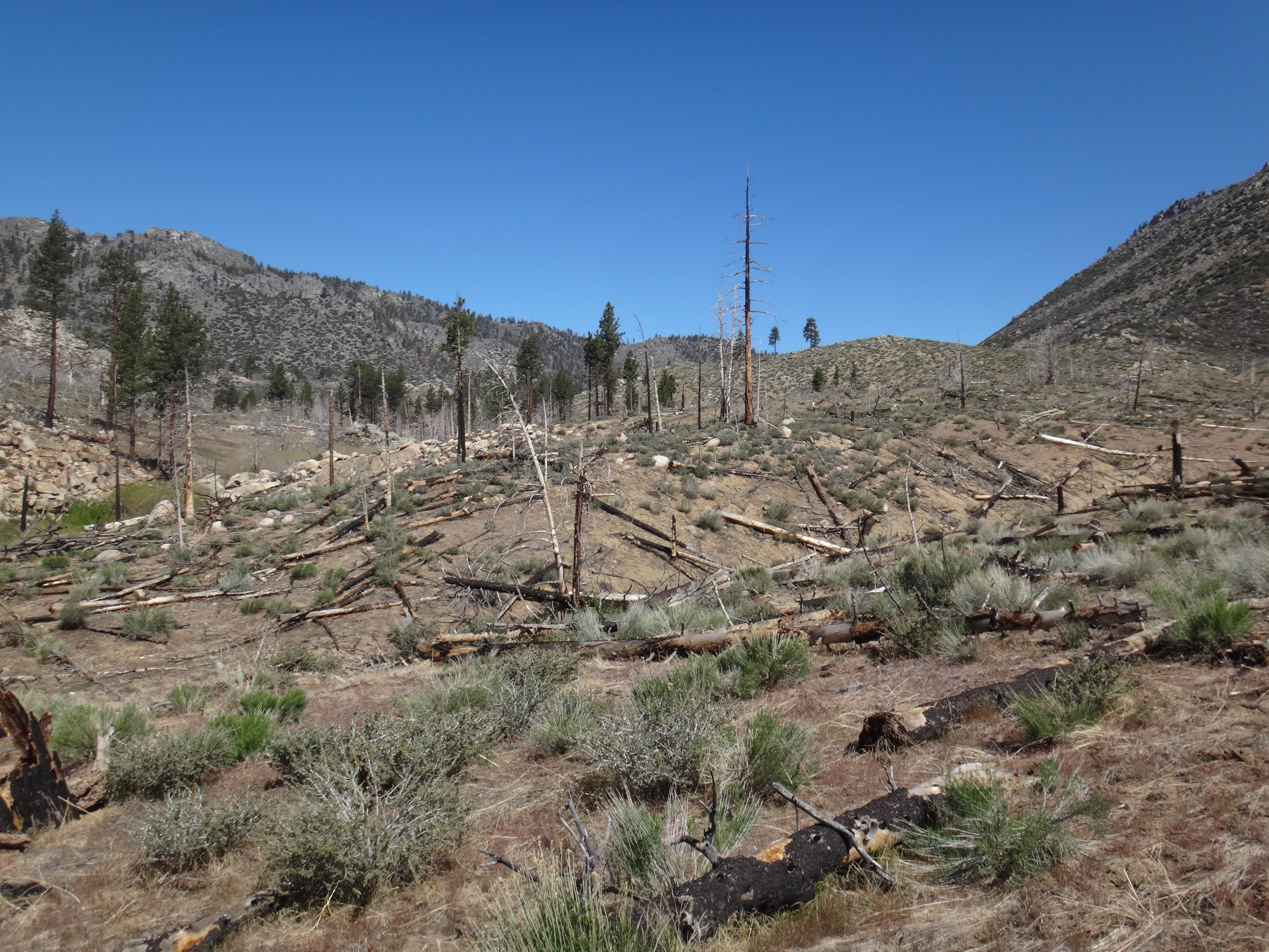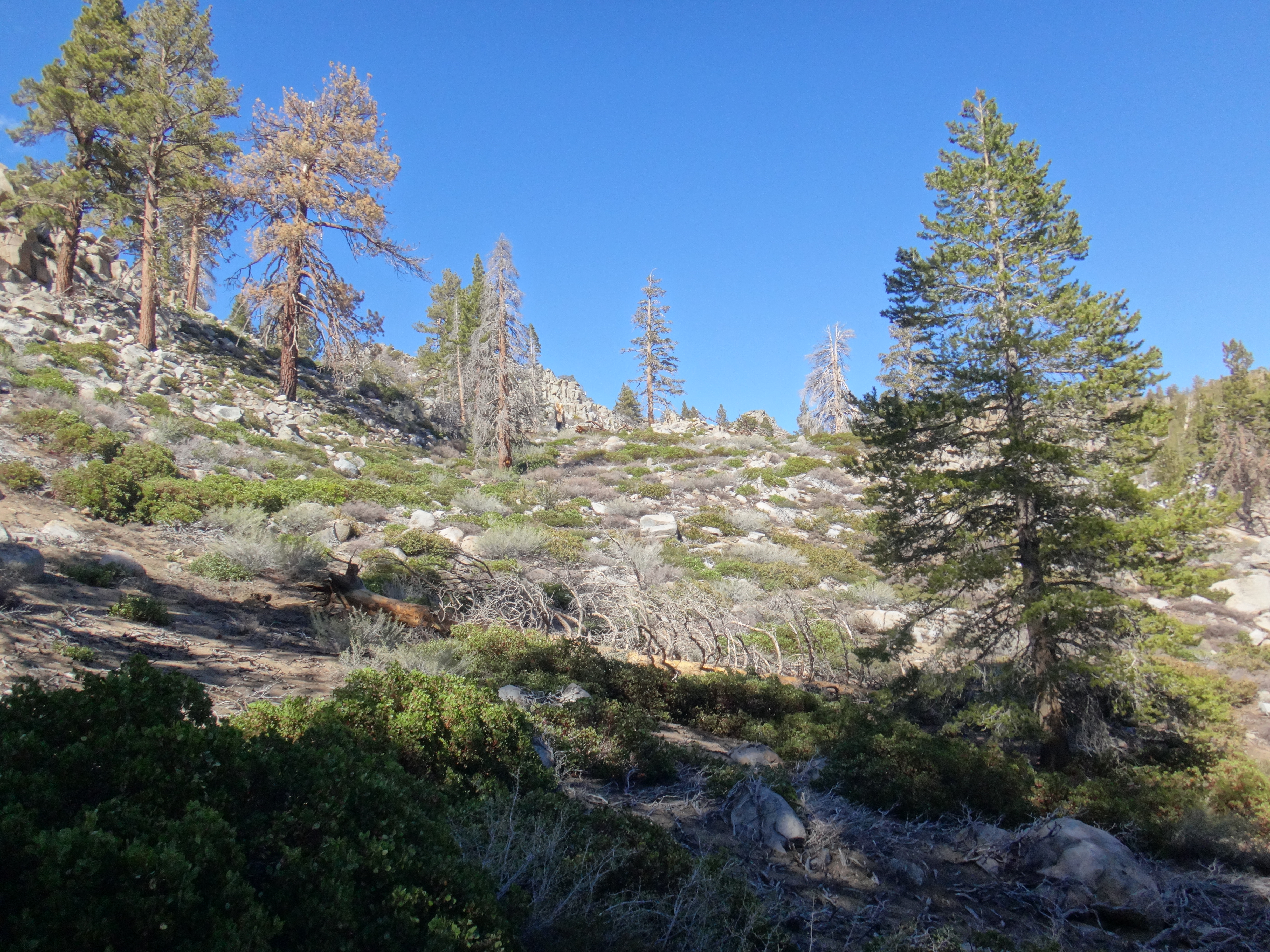 Schon gegen 5.30 wuselten viele Hiker im Camp. Bei der ganzen Geräuschkulisse konnte ich trotzdem bis 10 vor 6 im Bett liegen. Dann habe auch ich meine Sachen gepackt. Schnell noch das zelt zum trocknen aufgehangen und dann den Kanister auf meinem Rucksack befestigt. Die Schnalle läst sich so gerade schließen. Ich laufe mit Arrow und Navigator gegen 7 los. Wir müssen zuerst zurück zum Trail. Wir peifen alle unter den Lasten. Wir folgen dem Tal weiter hinauf und laufen zwischen niedrigen Büschen durch Sand. Der Fluss erscheint und es geht nun in  leichten Wellen immer weiter hinauf. Die alten Bäume sind riesig und alt. Stehen zwischen Autogroßen Felsen und auf grünen Wiesen. Der Aufstieg war mühsam. Auch wenn es nur „leicht“ bergauf ging hat mich der extra Proviant einfach nur in Schmerzen versetzt. Das Gewicht drückt sich in meine Hüften und meine Schultern durchzucken heiße Blitze. Ich bin wirklich nicht entzückt. Aber wir laufen immer weiter hinauf und auch die anderen Hiker welche heute morgen aufgebrochen sind treffen wir öfters. Mal machen wir Pause, mal die anderen. Es sind unter anderem Rex und Tatters, Eco und zwei weitere. Mike aka Medic und Candymen sind schon unterwegs. Nachdem wir dem Flusd lsnge gefolgt sind dürfen wir noch ein wenig im schattigen Wald verbringen bevor sich das Tal öffnet und wir in Baumkarges Land vordringen. Entweder verbrannt oder umgefallen. An einem der Flüsse hole ich neues Wasser. Wir treffen auf viele Gruppen mit Jugendlichen unter Begleitung die uns alle brav vorbei lassen. Das Tal müssen wir ganz hinauf. In der Sonne die wie eh und je bruzelt ist das schweißtreibend. Wir laufen also immer weiter bis wir fast am Ende einen schönen Platz unter einem großen Baum finden. Ich verdrücke Schokoriegel Nr. 4 +5 für heute. Gegen 11 laufen wir weiter und müssen über einige Baumstämme klettern. Dsbri zerschlagen ich mit meinem Knie einen ast den ich nicjt gesehen habe. Bis auf schwarze Asche sehe ich zum Glück nichts. Hier stehen die Bäume noch sind aber weiß. Dann kommen wir endlich über die Kuppel und sehen weiteren Wald. Aber dahinter stehen die ersten Schneebedeckten Berge. Hintern dem kleinen Wald öffnet sich ein langes Tal. Manche anliegende Berge sind weiß. Wir laufen halb durch und müssen manche wassergetränkte Matschstellen ungehen. Dann geht es rechts wieder bergauf. Ich ersehne eine Pause und denke ich würde mich sogar auf einen Kaktus setzen nur um eine Rast zu machen und den Rucksack abzulegen. Wir machen um 12.30 eine Pause im Schatten. Wir wollen alle nicht wirklich weiter. Wir leiden bis auf Arrow. Die läuft einfach immer voraus ohne zu murren oder ein negatives Kommentar. Dann geht es in ein Tsl in dem ein breoter Fluss fließt. Zum Glück gibt es eine Brücke. Das Tsl laufen wir nun auf der anderen Seite zurück und gehen ins Cow Vally wo wir dem Fluss folgen. Es geht nun steil hinauf und ich bin echt bedient. Wir machen nun nochmal ca. 500 Höhenmeter. Auch kommt hier und da ein wenig Schnee zum Vorschein. Ich quere den Fluss öfters in Sprüngen die mir das Gewicht noch mehr in die Schultern pressen. Die Landschaft ist toll. Richtig wie im Film eben. Gegen 16.30 erreichen wir fen Campingplatz wo Medic und Candmen bereits warten. Wir bauen auf und kochen Abendessen. Man wenigstens auf den Bärenkanistern sitzen. Wir genießen noch die schöne Aussicht zurück ins Tal und die Sonne. Dann gehts schnell ins Bett. Wir sind jetzt knapp unter 3.000 Hm. Es weht ordentlich und ich bin sicher es wird frostig. Morgen gehts dann um 6 los. Ich hab eine Druckstelle im rechten Schuh. Scheint zu eng zu sein. Mal schaun wie sich das entwickelt. Jetzt gehts pennen. Nach über 1300 Höhenmetern heute musd ich meinen Rücken entspannen. Hoffentlich reibt sich meine Haut am Hüftgurt nicht wund. 19:16 Uhr Gute Nacht.