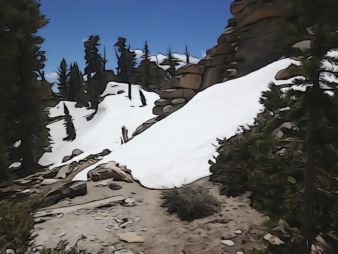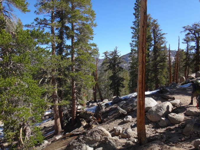 Es sind noch ca. 60km bis zum Fuß des Forester Pass. Der Plan war heut Abend das in 3 Tagen zu gehen. Mal schauen wie das Terrain ist und der Schnee mehr wird. Vielleicht zieh ich auch mit Swimmer weiter. Er hat sowieso etwas wenig Essen dabei da er eigentlich in LonePine raus wollte. Die Truppe mit der ich wander ist aber auch super. Medic aus der Schweiz ist echt immer gut drauf und witzig. Candyman kann bald auch Deutsch weil wir halt 4 zu 1 sind und oft deutsch sprechen. Medics deutsch verbessert sich natürlich auch 😉 schon eine gute ausgeglichene Truppe. Aber jetzt wo der Rucksack leichter wird könnte man auch noch ein wenig mehr gehen. Aber schmerzen tut das scheißteil immer noch. Naja, mal schauen wie es morgen so wird. 🙂 und ich hoffe auf eine warme Nacht! Morgen gehts wieder um 6 los. Aktuelle Höhe: 3195m. Ca. 800m rauf und ca. 600m runter.
