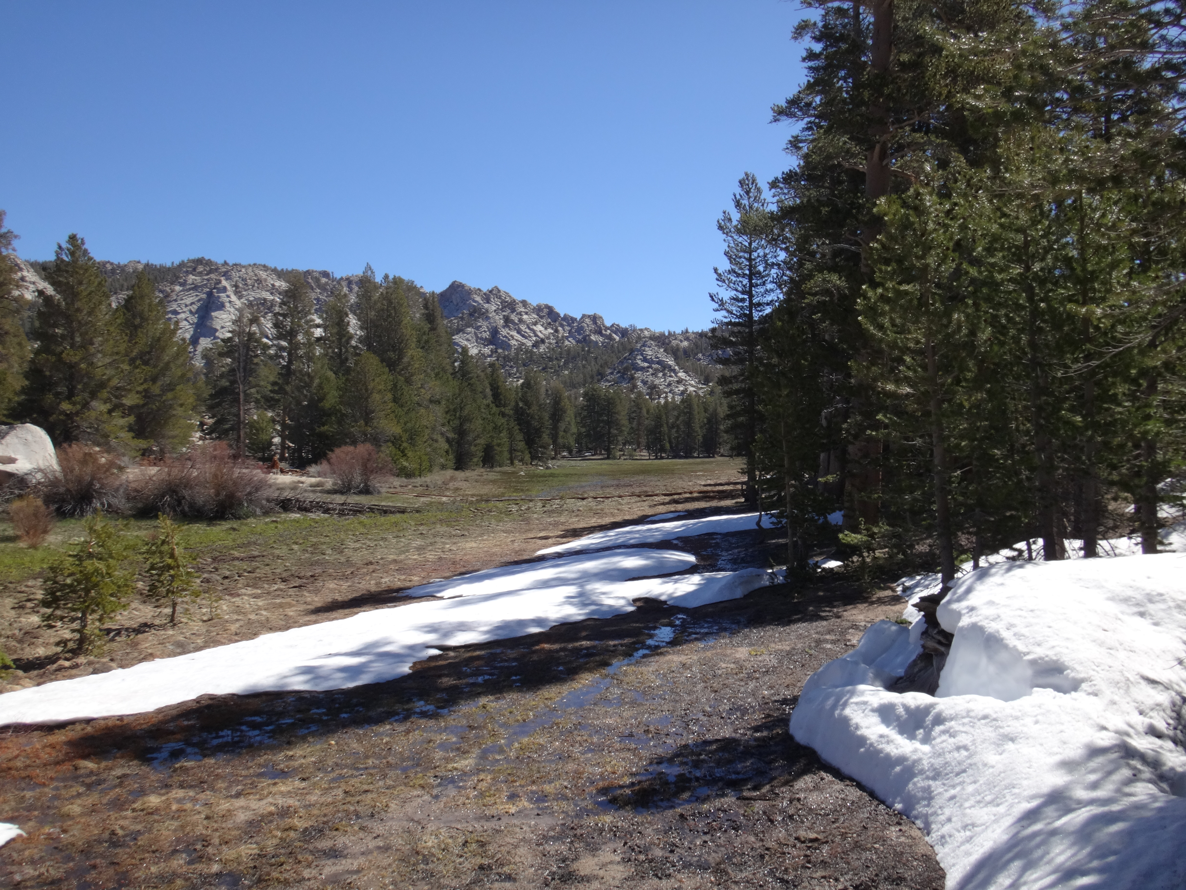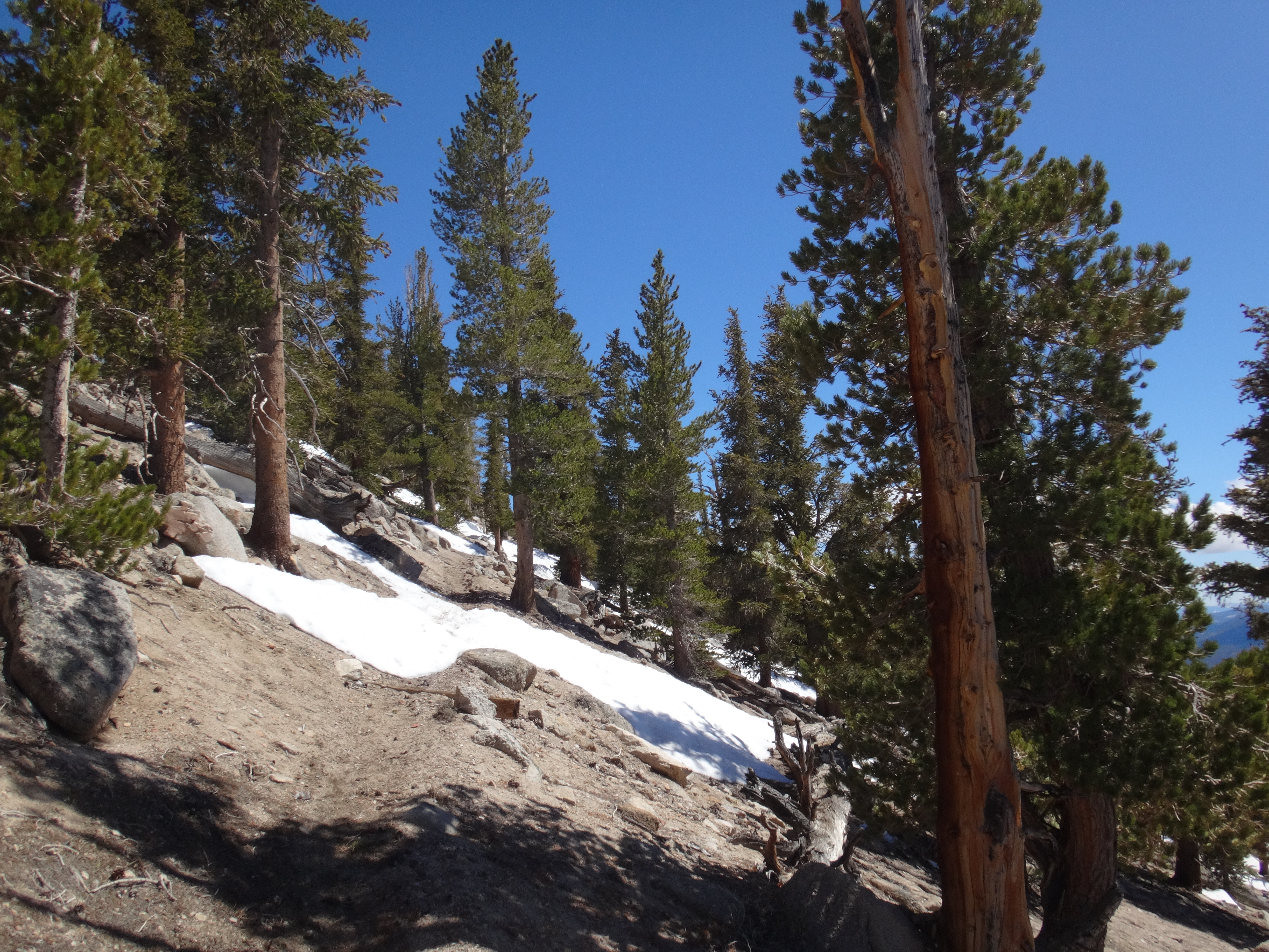 Es sind noch ca. 60km bis zum Fuß des Forester Pass. Der Plan war heut Abend das in 3 Tagen zu gehen. Mal schauen wie das Terrain ist und der Schnee mehr wird. Vielleicht zieh ich auch mit Swimmer weiter. Er hat sowieso etwas wenig Essen dabei da er eigentlich in LonePine raus wollte. Die Truppe mit der ich wander ist aber auch super. Medic aus der Schweiz ist echt immer gut drauf und witzig. Candyman kann bald auch Deutsch weil wir halt 4 zu 1 sind und oft deutsch sprechen. Medics deutsch verbessert sich natürlich auch 😉 schon eine gute ausgeglichene Truppe. Aber jetzt wo der Rucksack leichter wird könnte man auch noch ein wenig mehr gehen. Aber schmerzen tut das scheißteil immer noch. Naja, mal schauen wie es morgen so wird. 🙂 und ich hoffe auf eine warme Nacht! Morgen gehts wieder um 6 los. Aktuelle Höhe: 3195m. Ca. 800m rauf und ca. 600m runter.