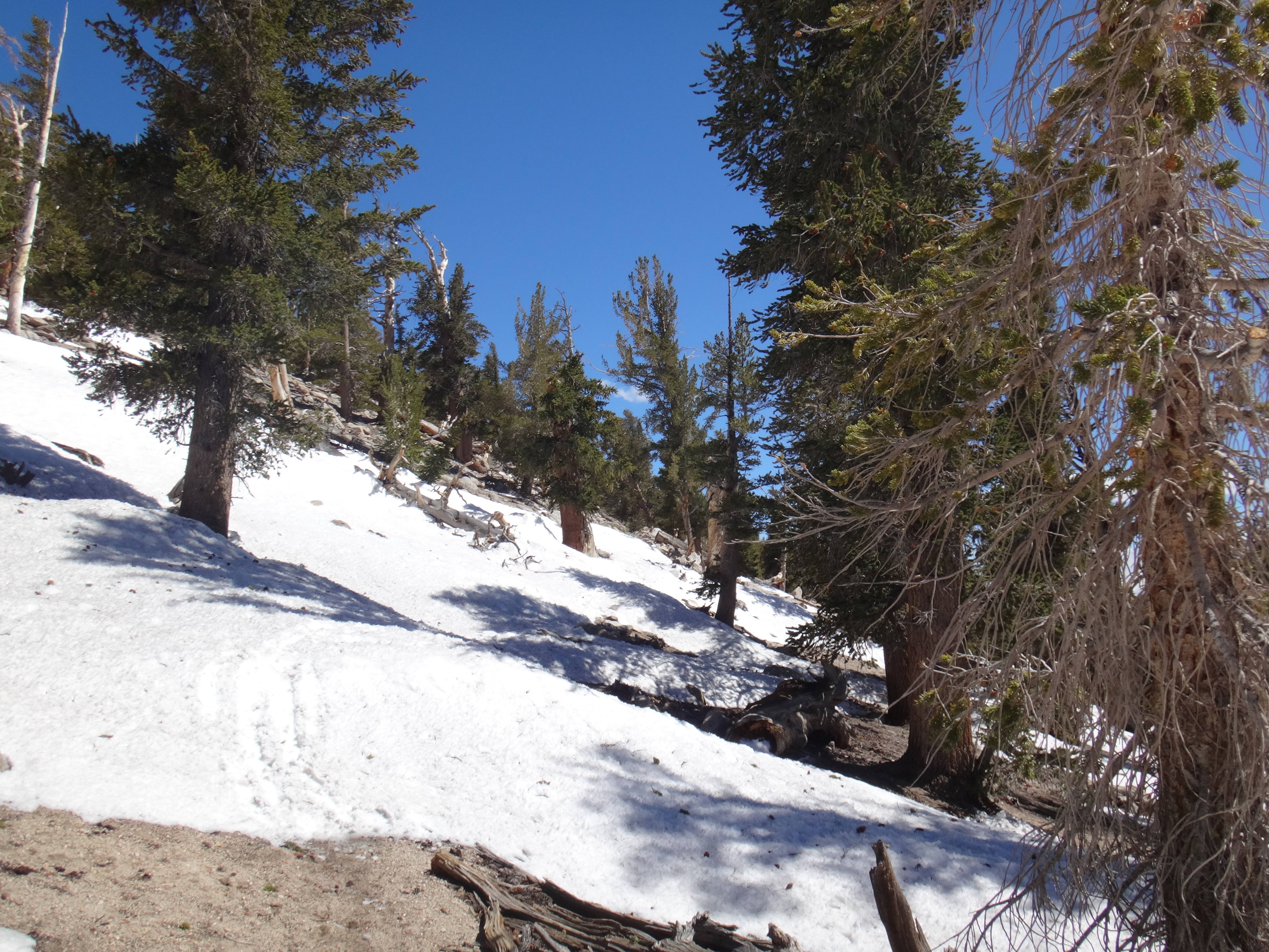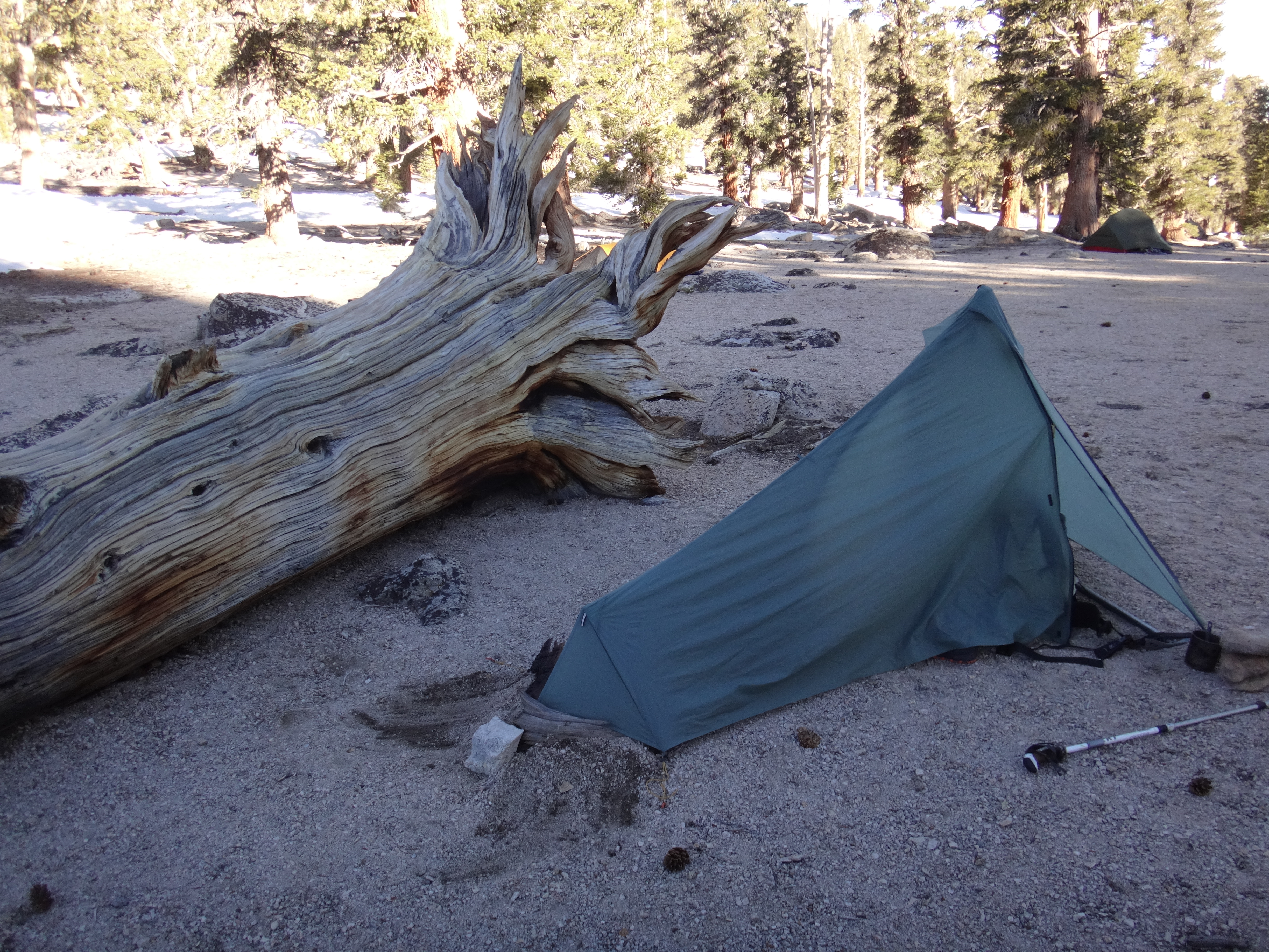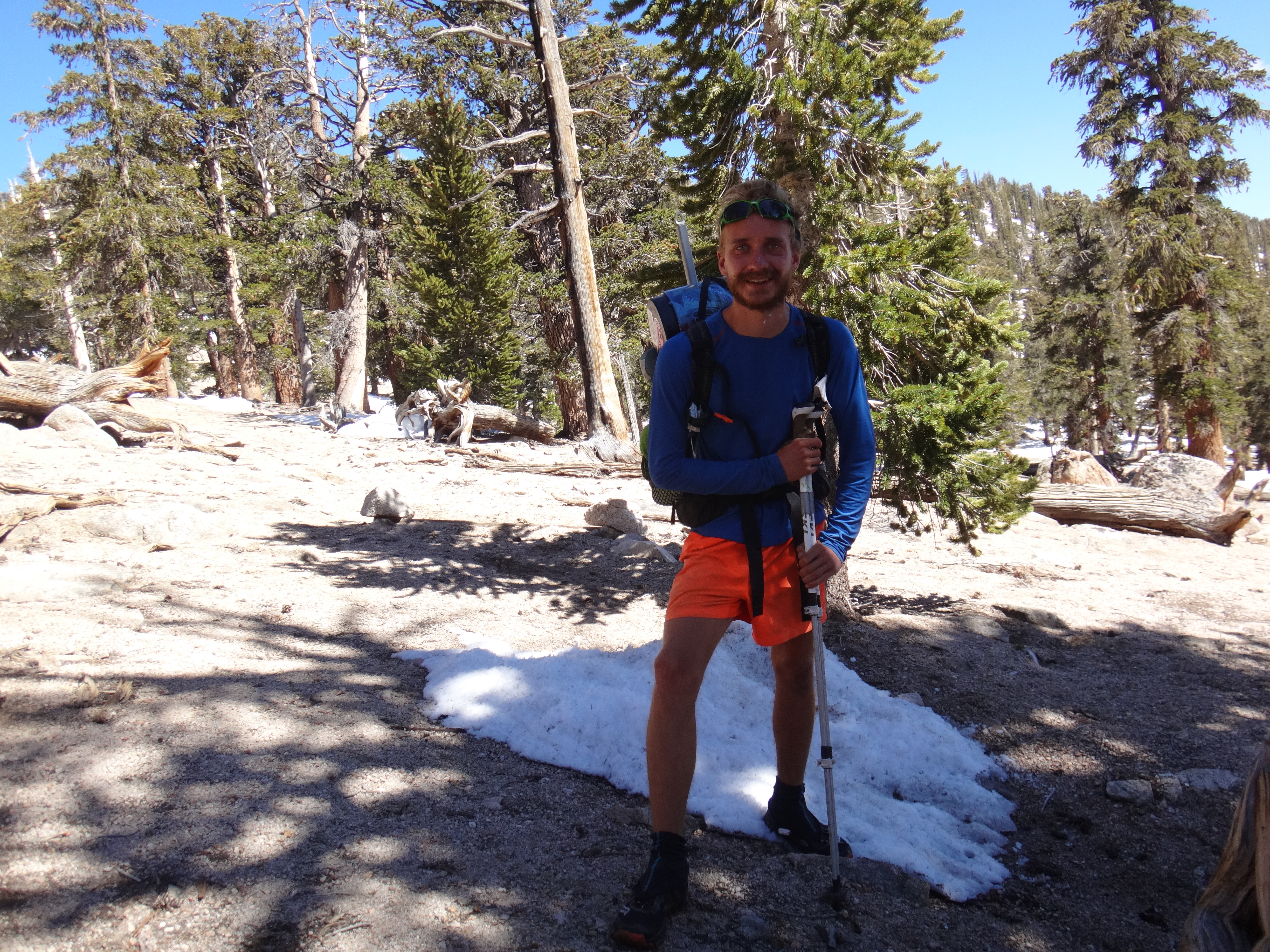 Die ganze Nacht habe ich gefühlt nicht geschlafen. Es war so kalt. Im Zelt -1 und draußen -3. Das Wasser war gefroren und meine Füße hatten sich auch entschieden über Nacht nicht warm zu werden. Es wsr miserabel. Um 5.15 bin ich aufgestanden. Sachen gepackt und auf die anderen gewartet. Ausnahmsweise mal mit langer Shorts. Um 6 sind wir dann los. Den restlichen Berg ging es über Schnee hinauf der knackig gefroren war. Medic führt uns durch den Wald. Der Trail ist kaum zu sehen. Es macht Spaß durch den Schnee zu gehen. Aber es ist immer noch frostig. Die Sonne braucht noch lange bis sie uns erreicht. Wir schlagen uns quer zum Berg und haben schöne Aussichten aufs Tal. Mir gefällt das Kolonnenlaufen nicht so. Auf der Nordseite erwartet uns deutlich mehr Schnee und wir laufen fast komplett für 4 Meilen über eine Schneedecke. Fast alle machen sich mal lang. Aber keinem passiert etwas. Medic sucht schon immer die schonendste Route aber wenn msn die ganze Zeit aufs Handy schauen muss um zu wissen wo es lang geht nimmt man mal einen steilen Hang mit. Gegen 8.30 machen wir eine Pause in der nun endlich erschienen Sonne. Die anderen kochen und ich snacke meine Schokoriegel. Gegen 9 gehts weiter. Wir laufen immer weiter ins Tal hinab. Es liegt nun kein Schnee mehr. Dafür fließen überall kleine Bäche die wir teilweise akrobatisch überqueren um keine nassen Füße zu bekommen. Ich lasse mich zurück fallen und wechsel wieder in mein Standard Wanderoutfit. Die anderen, immer noch mit lsnger Hose, kniehohen Gamaschen, Fleece und Jacke schsuen ein wenig komisch. Aber Schnee heißt nicht gleich arschkalt. Das Tal liegt wunderschön eingebetet zwischen hohen Bergen. Eine kleine Brücke führt über den sumpfigen Teil. Dann gehts wieder im Sand nach oben. Viele riesige Felsen und versteckte Schneereste. Die alten Bäume haben interessante Formen und sehen sehr sehr mitgenommen aus. Wir schlängeln uns immer weiter hinauf bis bald wieder Schneebretter auf dem Trail auftauchen. Teilweise 2 Meter hohe Wände direkt auf dem Trail. Wir treffen unterwegs noch einen Hiker mit Skiern. Er hat heute nicht so viel zu tun. Medic führt uns auch hier gut um und über den ganzen Schnee. Teilweise verlieren wir den Weg weil wir einer Schneemauer ausweichen müssen und laufen erstmal quer durch die Pampa bis wir den Weg wieder gefunden haben. Mittag machen wir auf einem schönem Felsen. Alle sitzen und stopfen sich voll um danach in der Sonne einzudösen. Nach 3 Wraps mit wurst und Käse ist mir ein wenig übel. Habe keine Lust mehr auf die Sommerwurst. Habe gerade bemerkt das der Wind ziemlich übel durch mein Zelt zieht. Deswegen auch die kalten Füße gedtern Nacht. Werde gleich noch eine Schneemauer zum Schutz bauen. Ist schließlich nicht mal 18 Uhr und ich bin schon im Schlafsack. Den Nachmittag haben wir weiter damit verbracht aufzusteigen. Bei über 3000 Metern zeigen sich erste Symptome wie schnelle Erschöpfung, Muskelkrämpfe. Zum Glück geht es dann schön am Berg entlang und sanft hinab bis zu unserem Zeltplatz den wir um 16 Uhr erreichen. Es windet sehr. Aber wir müssen nicht im Schnee zelten. Wir kochen alle zusammen und Swimmer kommt auch noch dazu. Mehr als genügend Platz haben wir ja. Zum Glück floss ein paar Kilometer vor unserem Halt noch Wasser über den Trail. Ansonsten hätten wir schnee schmelzen müssen.