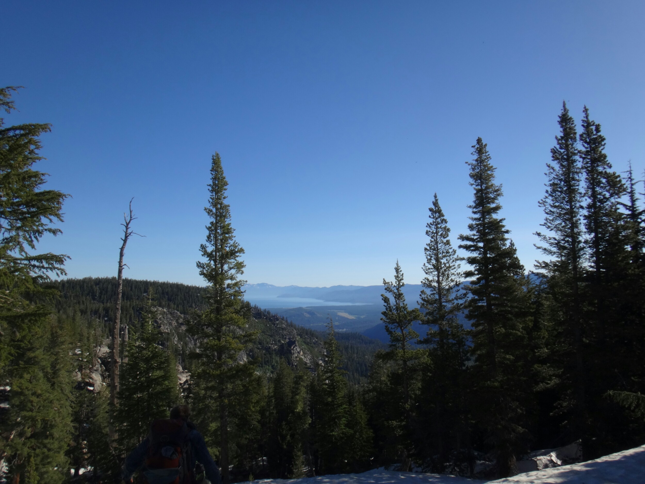 War wieder gegen 5 wach. Um 7 machte dann Heidis ein Frühstücks Restaurant auf und wir aßen ordentlich. Danach hieß es die nächste Etappe zu planen und die entsprechenden Einkäufe zu tätigen. Anschließend Sachen gepackt und gegen 11 ausgecheckt. Einige mussten noch zur Post und wir parkten unsere Rucksäcke am örtlichen Sandstrand. Es war eine lange Strecke bis zur Post und ich konnte meinen Bärenkanister, Regenhose, zweites Paar Socken und meine dicken Handschuhe nach Etna schicken. Zurück nahmen wir eine Mitfahrgelegenheit via lyft da wir am UPS Laden noch ein Päcken von Griz abholten. Es war bereits 14 Uhr als wir zurück am Strand waren. Mit Rattler und LovelyHeart gingen wir dann zum AllYouCanEat Inder. Es war super lecker und wir total abgefüllt. Mein Paket welches ich zum Hotel bestellt hatte war leider immer noch nicht da. Wir entschieden gemeinsam einfach noch eine Nacht in South Lake Tahoe zu verbringen. Da wir alles erledigt hatten konnten wir mal einfach mal entspannen. Vor unseren Zimmern gammelten wir auf dem draußen verlegten Teppichboden. RockDoc und Rattler gingen noch zu MCDONALD’S und holten etwas zu essen. Ich war noch so voll das mir ein großer Erdbeer Bananen Shake reichte. Den restlichen Abend bewegten wir uns nicht aus den Betten.
