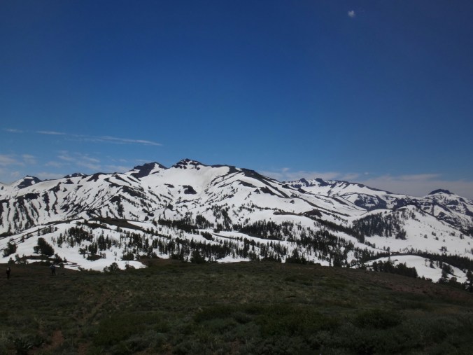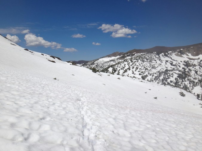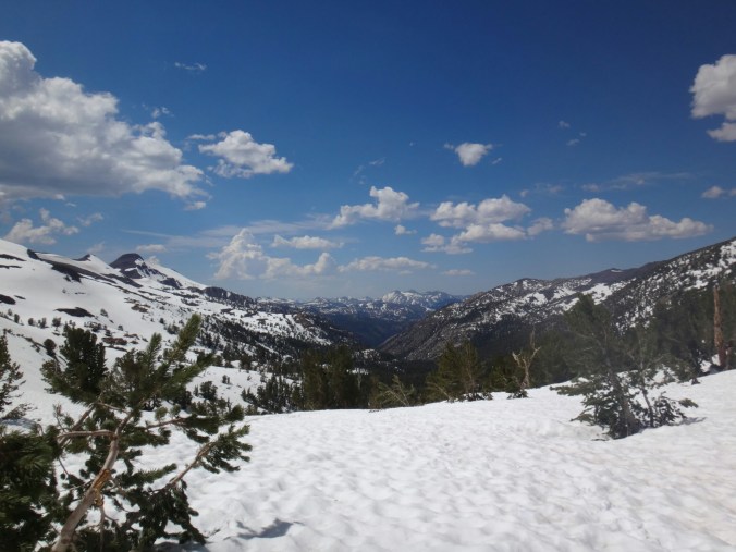 Bis wir mal zum Hitchen kamen musdte noch so einiges erledigt werden. Bereits um 5 habe ich die restlichen Bilder hochgeladen. Danach gab es beim Bäcker Cappuccino und Croissant. Wie verfolgten die Kommentare auf unserem Video und ich packte meine Sachen. Ich habe gefühlt zu viel zu essen. Gegen 10 stehen wir an der Hauptstraße mit einem Schild Sonora Pass. Wir telefonieren mit einem Trailangel und sind gegen 11 auf dem Trail. Die Sonne ist schon brutal. Mit dem ganzen Zeug auf dem Rücken laufe ich nur langsam. Wir schlagen geradeaus direkt auf den Berg und folgen dann dem Trail. In regelmäßigen Abständen müssen wir lange Schneebretter überqueren. Als wir mit dem Abschnitt fertig sind legen wir Mittagspause ein. Ich esse meine Pizza die ich gestern geholt habe. Danach wieder eine endlose Traverse Richtung Tal was zu unserer linken liegt. Mir geht es so langsam immer schlechter. Mein Magen fühlt sich übel an und ich bekomme Kopfschmerzen. Nicht so mein Tag und ich quäle mich mehr den Trail hinunter. Zur linken ziehen Wolken auf und wie laufen durch das verschneite Tal weiter an einem Fluss entlang der unter uns fließt. Gegen 16 Uhr, die Wolken werden immer schlimmer, suchen wir uns einen trockenen Platz. Wir queren auf ein paar Schneebrücken den nun reißenddn Fluss und finden dort trockene Flecken Waldboden. Alle bauen schnell ihre Zelte auf. Danach vergrabe ich die Pizza hundert Meter von unsererm Platz. Ich mache mir noch eine Suppe und verschwinde dann früh im Bett. Weniger Minuten später, Donner ist schon lsnge zu hören, fängt es an zu hageln. Es prasselt nur so vom Himmel und es bilden sich auch noch Pfützen in meinem Zelt. Diese liegen allerdings unter meiner Luftmatratze und ich versuche mich einfach nicht mehr so viel zu bewegen und schlafe dann ein.