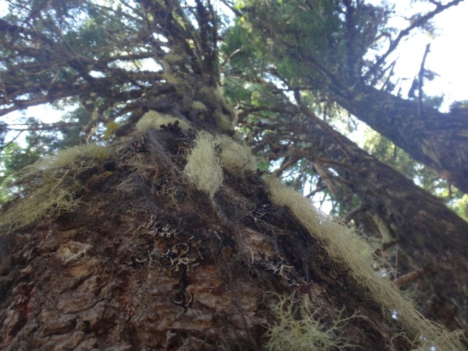 War richtig müde da ich nicht viel geschlafen habe. Deswegen hab ich auch bis 7.20 im Bett gelegen und habe noch 3 Pfannkuchen verdrückt. Dann gings wieder los. Fühlte mich besser als gestern. Aber wieder über die Straße und den gleichen weg hinauf war ein wenig öde bis ich neuen Trail erreichte. An einer langsam fließenden Quelle habe ich noch aufgefüllt und wurde von Moskitos belagert. Dann habe ich Musik aufgelegt und bin durchgestartet. Schließlich wartete ein Anstieg über 1700 Meter auf mich. Also gab ich Gas. Über viele Serpentinen ging es teilweise durch Wald aber auch durch offene Buschfelder. Im Tal lag der große Fluss. Ich atmete schwer und bekam so eine Fliege in den Rachen. War das ekelig. Ich hustete und würgte, kotzte und schlug mich dann mit Übelkeit weiter hinauf. Bähhh. War wirklich nicht angenehm. Dafür konnte ich nach dem ersten steilen Stück im Bergschatten wandern bis ich wieder die Seite wechselte. So ging es füe einige Stunden hinauf. Man kann so schon von weitem sehen an welchen Stellen man später wandert. Das ist gute Motivation und macht es einfacher kurze Zwischenziele zu erreichen. Es ging ein kleiner Wind der es ein wenig erträglicher machte. Nach halber Strecke ging es kurz in eine kleine grüne Oase bevor es wieder in wüstenähnlichen Konditionen am Berg entlang ging. An einer Forststraße lagen schon einige Hiker im Schatten und ich machte auch eine Pause und holte Wasser. Shaggy der gestern Abend schon los ist treffe ich auch. Er macht auch langsam da er ebenfalls Shinsplints hat und ein paar taube Stellen unter dem Fuß. Um 14 Uhr ziehe ich den Sonnenschrim. Es ist ausgesetzt und heiß. Die Heuschrecken knattert und fliegen laut durch die Gegend. Rauf und runter. Ich treffe weitere Hiker und wir machen im Schatten Pause. Ich zerreiße mein Wasserbeutel der ohnehin schon nicht ganz dicht war vollständig. Nahe der Quellen ist alles super grün und tausende Blumen blühen am Wegesrand. Die Bäume sind voller Moos. Auf den letzten 5 Kilometern bis zum Camp fließt mir dann Wasser an der Seite hinunter. Am Ende habe ich ein wenig mehr als einen Liter übrig. Das reicht aus. Wir campen mit Shaggy und Austin einen Sektionhiker und plaudern noch eine Weile. In der Ferne steht überall Rauch vor den Bergen. Es sind einige Brände im Gange. Mein Rucksack ist nass, ebenfalls mein inneres. Ausgerechnet heute ist auch mein Packsack vom Schlafsack gerissen. Das habe ich aber erst gemerkt als ich ihn auspackte. In den letzten Sonnenstrahlen liegt er noch auf dem Boden zum trocknen. Dann gehts ins Zelt. Ohne Schlafsack schlafe ich ein und hole ihn erst in der Nacht als es ein wenig abkühlt.