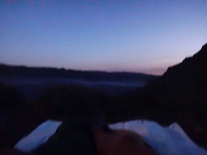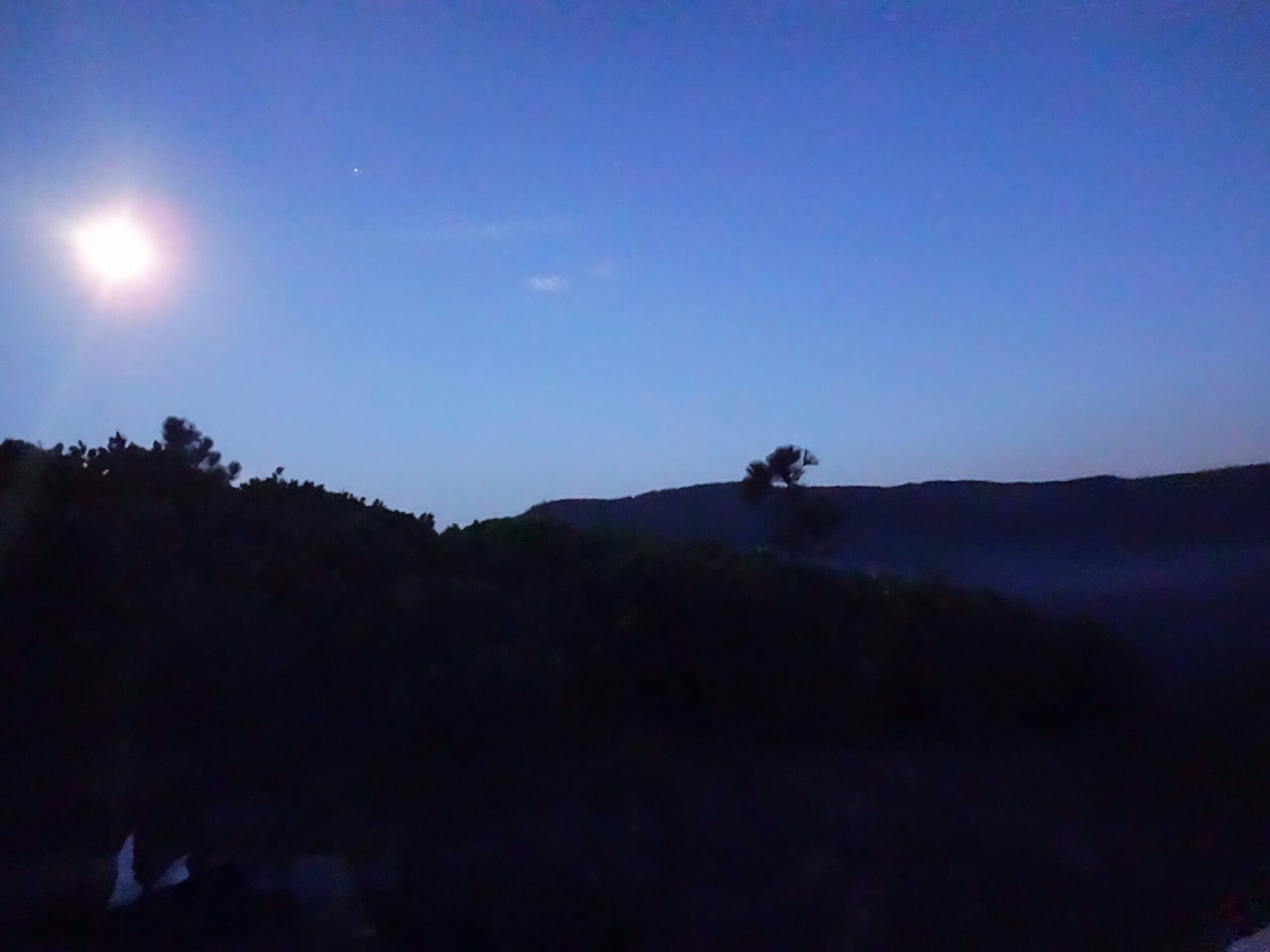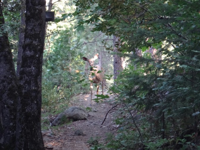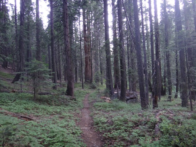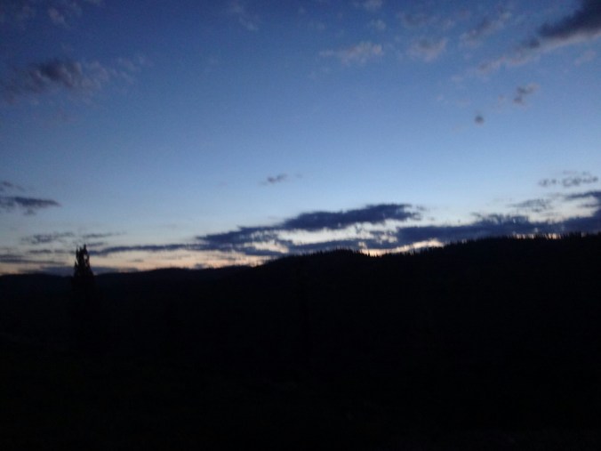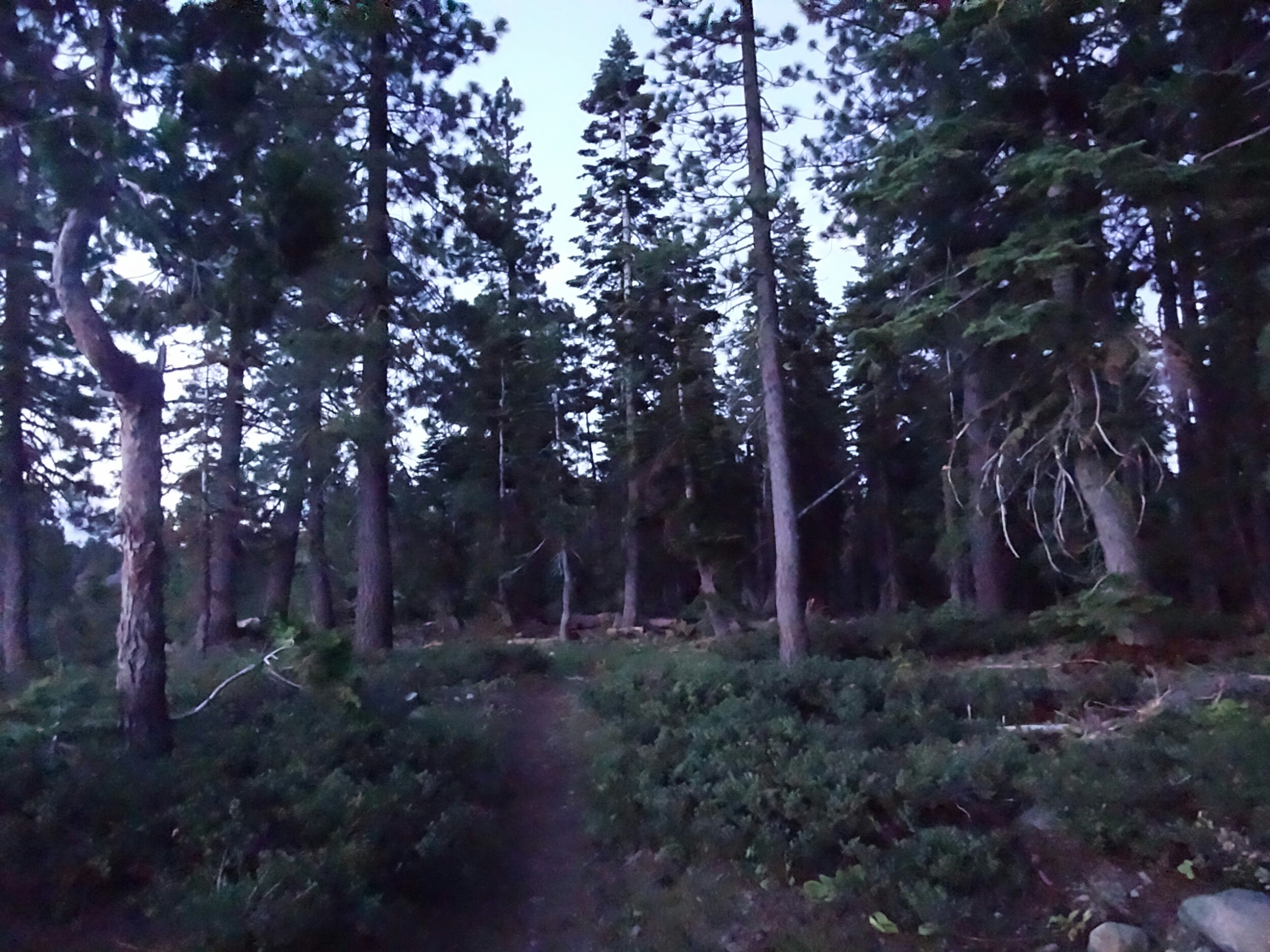Wieder um 4 Uhr los. Ein letztes Mal zusammen mit den Downhill Bandits. Über die Betonbrücke des Pass Creeks geht es noch einige Meter über die Straße bis wir rechts in den Wald biegen. Es ist dunkel aber warm. Wir laufen auf dem Waldboden den Berg hinauf. Griz der vorne läuft tritt Äste und große Tannenzapfen vom Trail. Auch den ein oder anderen Stein erwischen wir mit den Schuhen. Das ist dann nicht mehr so angenehm. Wir queren einige Forststraßen und ein einzelnes Zelt. Auf dem Berg machen wir dann eine Pause um den Sonnenaufgang zu genießen. Es ist erst 5 Uhr. Der Wald hat sich hier oben gelichtet und wir haben einen schönen Ausblick auf die gegenüberliegenden Bergrücken. Zwischen den einzelnen Bäumen auf der Ridgeline scheint das Licht. Leider bleibt der Sonnenaufgang so wie wir ihn kennen aus. Dafür wir es immer heller und die Vögel geben ein letztes Konzert während wir unser ebenfalls letztes Gruppenfoto schießen. Gegen 5.30 geh ich dann allein los. Nach kurzer Zeit muss ich dann aber direkt anhalten und meine Schuhe leeren. Ab da läufst einfach den Berg hinab. Es geht ziemlich schnell bergab und einige scharfe Switchbacks helfen dabei. Der Waldboden lässt gutes Tempo zu. Ohne Schwierigkeiten oder Pausen geht es direkt bis zur noch 8,4Meilen entfernten Straße. Kurz bevor ich aus dem Wald komme entdecke ich zwei weiße Kisten. Als ich dann den Trail hoch blicke sehe ich ein Reh. Es steht ganz still und ich schleiche mich langsam näher. Es bewegt sich nur zaghaft. Dann rennt es ins gebüsch als ich zu nah komme. Die 2,4 km nach Sierra City muss ich laufen. Ich gehe zuerst in die öffentlichen Toiletten und wasche meine Socken. Danach gibt’s Kaffee und beim General Store 1,6 l Erdbeereis. Als die Hälfte verschwunden ist steigt die restliche Gruppe aus einem Auto. Ich checke meine Vorräte und stocke auf. Das Wifi funktioniert hier leider nicht und ich warte auf das Post Office. Dort schicke ich dann um 10 meine Eisaxt und Mikrospikes voraus nach Etna. Meine Schuhe sind noch nicht angekommen. Ich muss also warten. Bei der örtlichen Bücherei komme ich ins internet und verfolge die Sendung. Müsste heute ankommen. Leider mit UPS und die kommen frühestens um 17.00 Uhr. Also den ganzen Tag in der Stadt gegammelt. Mit einigen Hikern gehe ich Salat unf Pommes essen da es so übel warm ist. Mit einigen Sodas vergeht der Nachmittag. Auch das Internet geht irgendwann wieder. Die restliche Gruppe ist im River Heaven abgestiegen und ich sehe sie immer mal wieder wenn sie in der Post sind oder einkaufen. Als meine Schuhe endlich kommen warte ich noch auf Chekolop. Währenddessen bricht in der nähe ein Brand aus und das ganze Dorf macht mobil. Hubschrauber und Wasserflugzeuge sind auch unterwegs. Wir bekommen eine Fahrt von einem völlih bekifften Pärchen und sind froh als wie aussteigen können. Die 5 Kilometer gehen geradewegs bergauf und die langen Switchbacks im Wald sind zum Glück gut klimatisiert. Aber wir sind nur am kraxeln. Der Mond scheint voll und hell. Als wir oben ankommen campen schon 2 Mädels unter freiem Himmel. Der Mond schlägt markante Schatten und im Tal hängt noch die Rauchwolke. Auch wir schmeißen nur unsere Matratze auf den steinigen Boden und legen uns unter den Sternenhimmel. Der Wind bläst leicht eine warme Brise. Was für ein Platz für die Nacht. Wirklich toll.