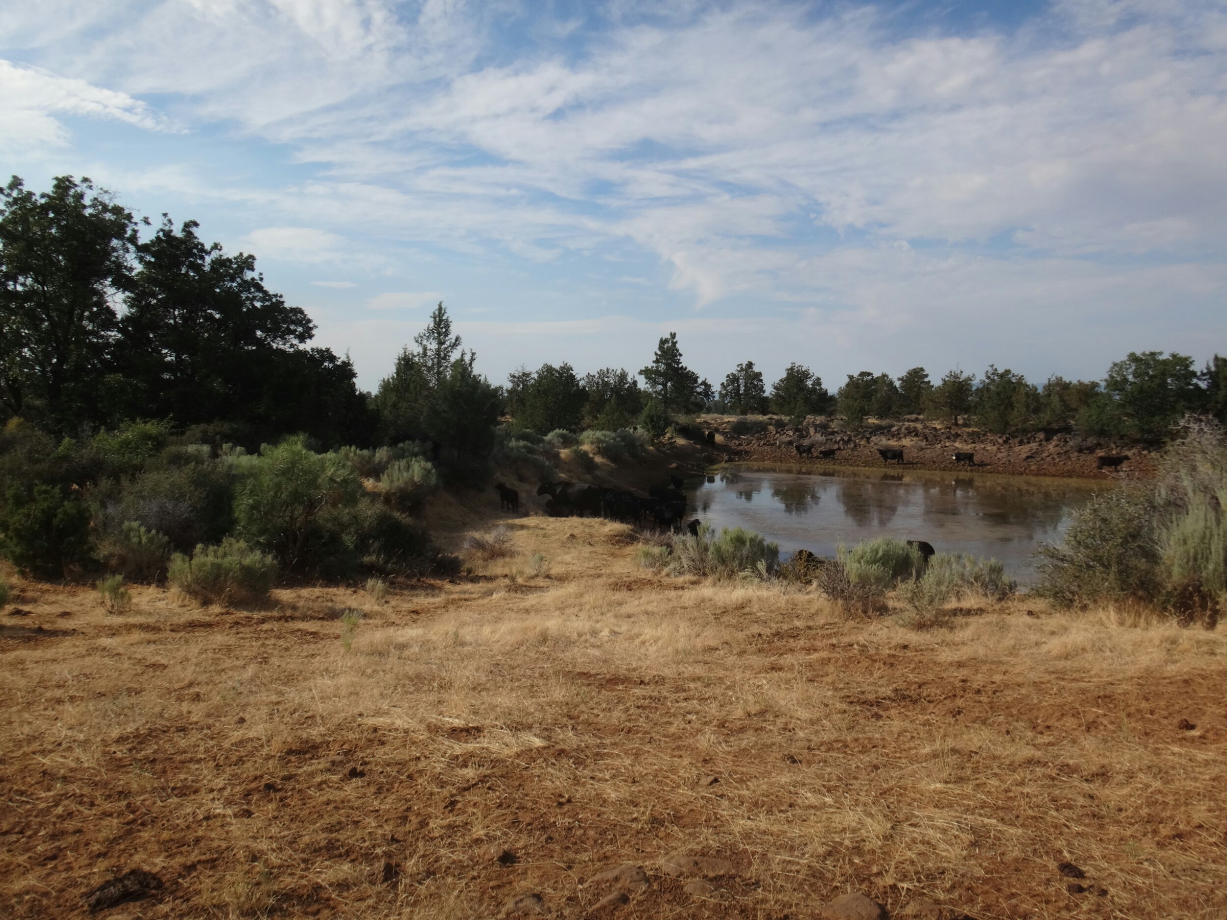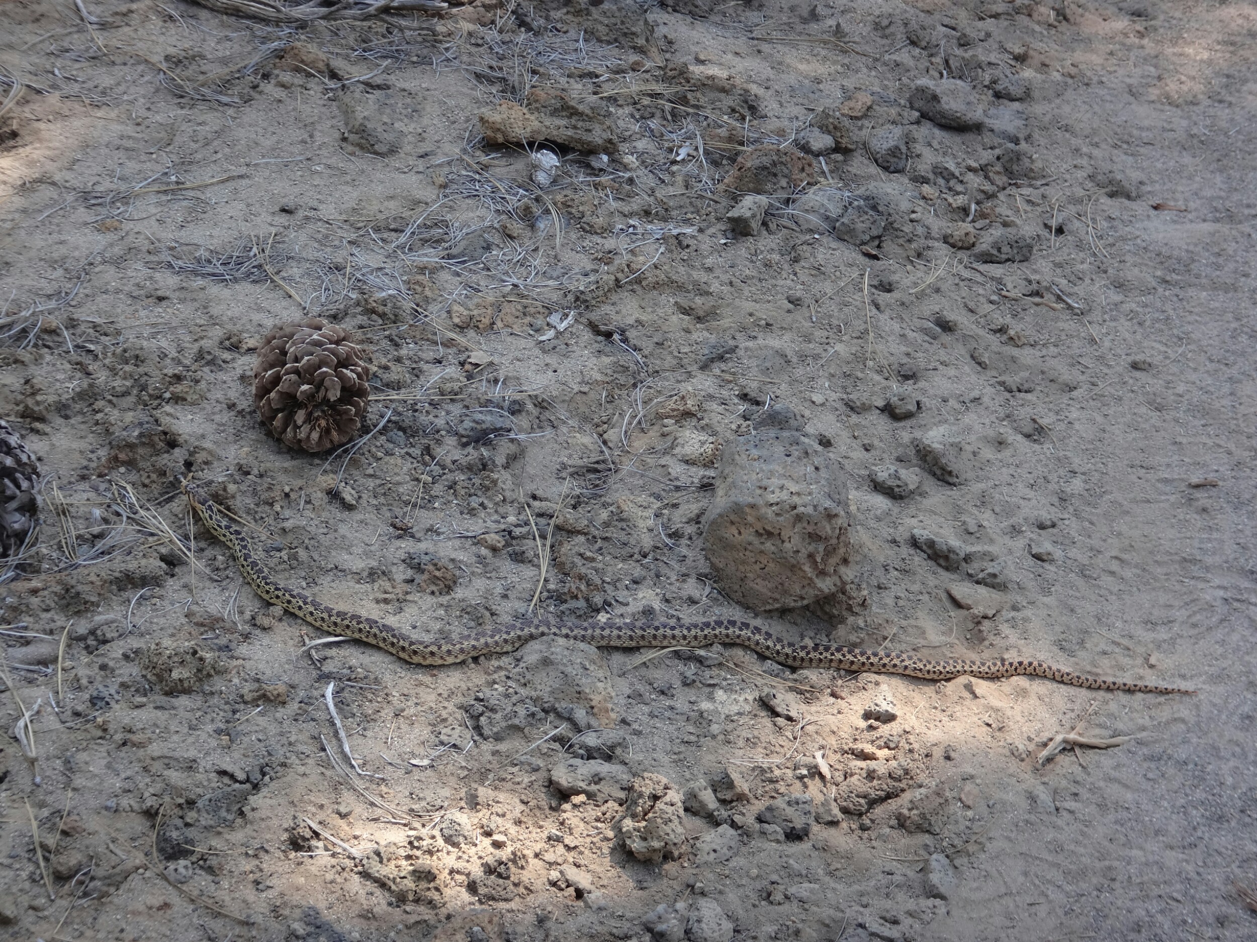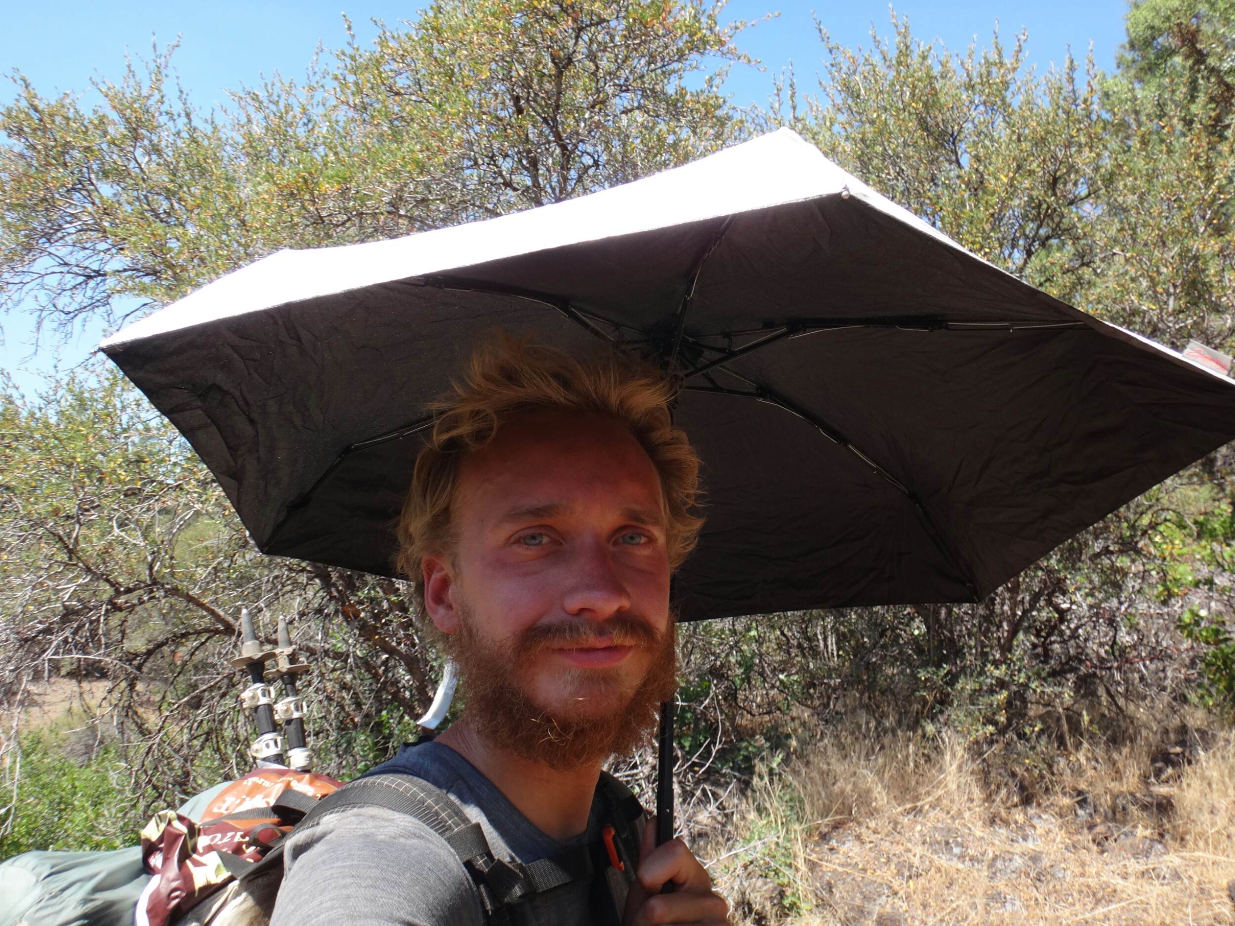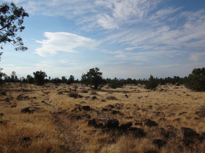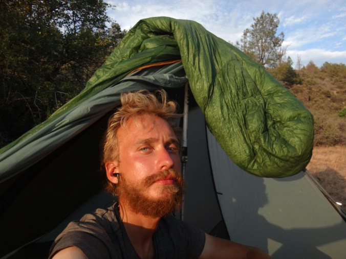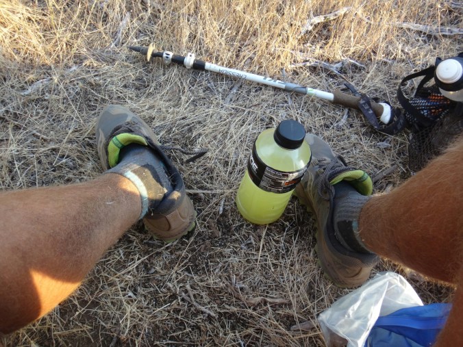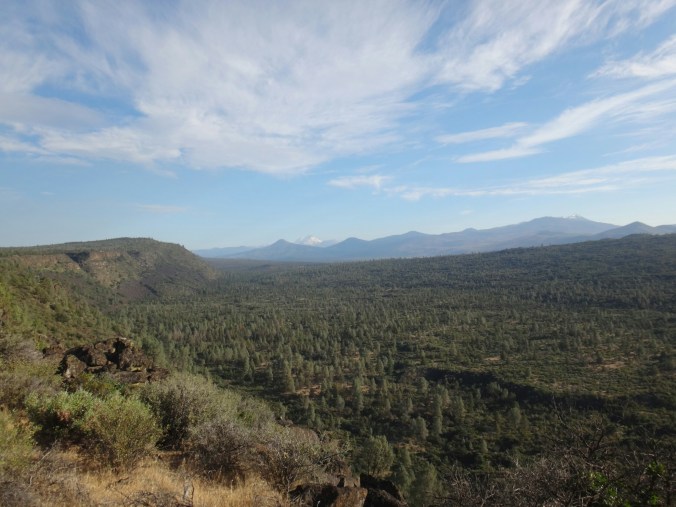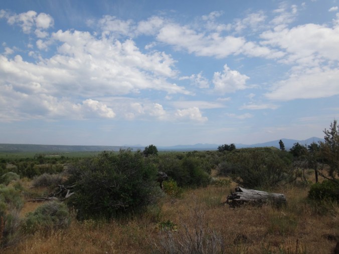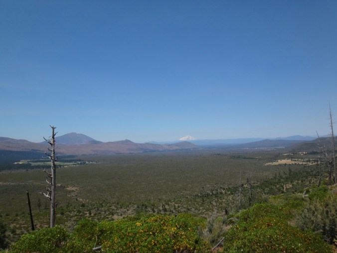 Nach meinen 12 km am Morgen ging es zu JJ’s für einen Burger zum Frühstück. Danach noch an der Tankstelle zwei Snacks für Lunch geholt. Dann ging’s viel zu spät los. Mit Sonnenschirm ging es zur Tube. Einer Röhre die Lava ervorgebracht hat. Sehr cool und cool. 8 Grad konstant. Ich traf noch auf eine Schlange und musste dann auf den Hügel. Ich kochte vor mich hin und konnte oben auf einem Parkplatz die Leute im Auto sitzend, Klimaanlage genießend, antreffen. Ich genoss die Aussicht zu den zwei schneebedeckten Bergen in der Umgebung. Dann ging es für den restlichen Tag auf dem Hügel entlang. Es zog sich endlos. Nur sehr wenig Schatten. Wasser gab es nur in Wasser Caches. Und auch das war warm. Ich lief und lief. Versuchte mich mit Hörbüchern abzulenken und genoss ab und zu die Aussicht. Aber es war mental fürn Arsch. Über 30 km in der Sonne. Warmes Wasser und keine Aussicht auf Besserung. Ich machte mir jede 2 bis 3 km ein Ziel aus und versuchte die Strecke ohne Unterbrechung zu laufen um dann eine kurze Pause einzulegen. Aber bei 30 km kann man das nicht an einer Hand abzählen. Als ich von der Anhöhe ins Tal kam hatte ich zwei Wasser Behälter passiert und ordentlich aufgefüllt. Der Trail war Staub und Sand. Im Tal traf ich auf eine Herde Kühe die um/im einen kleinen See standen. Zum Glück sind auch die großen Bullen geflüchtet. Andere Hiker haben dann daraus Wasser gefilter. Brrrr. Anschließend weitere Kilometer voller Steppe. Nur vertrocknetes Gras und Lavasteine. Allerdings frischte bald der Wind auf während ich direkt an einer Klippe entlang wanderte. Unter einem schönen Baum machte ich Pause und überlegte ob ich hier nicht zelten sollte. (Ca.19 Uhr) Aber es war zu windig. Wenige Kilometer gab es unter Stromleitungen einen weiteren Schlafplatz der ein wenig geschützer lag. Ich baute zwischen Büschen und unter der Leitung auf und filterte weiteres Wasser. Für warmes Essen war es einfach zu heiß. Ich war total verdreckt und hatte nichts zum waschen. Die dreckigen Füße schrubbt ich mit den Händen ab und verpackte sie dann in die Wandersocken von morgen. Meine Hände wusch ich mir mit etwas Wasser. Im Zelt lag ich nur in Short und schwitzte trotzdem. Der ganze Dreck fand sich dann auf meiner Luftmatratze wieder. Naja, egal. War mir zum ersten Mal egal allein zu pennen. Wahrscheinlich haben die Cowboycamps in den letzten Tag geholfen. Viel in guten Schlaf und wurde nur durch einen Albtraum von Bären zurück ins Leben gerufen 😉 aber draußen war nur kleinzeugs am krabbeln.