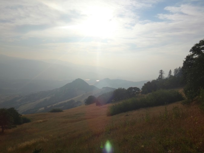 Heute hats irgendwie nicht geklappt. Ewig haben wir probiert zu hitchen. Kein Erfolg. Selbst mit Schild. Nach 2 Stunden an der Hauptstraße haben wir aufgegeben und sind zum REI gelaufen um auf die Gutmütigkeit der Outdoor Besucher zu zählen. Wir gönnten uns auch noch ein Subway zum Frühstück. Gegen 10 hatten wir dann endlich Glück. Mit einem Umweg ging es dann zurück zur Lodge und wir stiegen gegen 11 zurück auf den Trail. Es war noch ziemlich warm und das nächste Wasser war weit entfernt. Also waren wir schwer beladen. Meine neue Kappe für das Moskitonetz fühlt sich noch ungewohnt an. Das Gelände ist sehr ausgetrocknet und wir laufen lange durch das raschelnde Gras. Erst an einer Quelle machen wir eine längere Pause. Ich bin zwar nicht hungrig aber ich esse trotzdem ein paar Chips. Müssen ja weg. Die neuen Schuhe sind zu klein und müssen erst eingelaufen werden. Hatten leider keine anderen in meiner Größe die ich wollte. Es geht ordentlich auf und ab und wie kommen in etwas mehr bewachsenes Gebiet von Wald. Hier stehen viele Zäune und Tore die wir immer öffnen und schließen müssen. Da wie so einen späten Start hatten sind wir ein wenig unter Zeitdruck. In einem Trailregister finde ich Rattler und RockDoc ca. 7 Stunden vor uns. Das wird schön die mal wieder zu sehen. Wir entscheiden uns heute ein wenig länger zu laufen um bis zu einer gescheiten Wasserquelle für die Nacht zu kommen. Leider geht es dafür noch einen Berg hinauf. Auch wenn sich endlich mal schöne Ausblicke bieten nachdem wir den ganzen Tag eigentlich recht ereignislos Kilometer gekloppt haben. Ich sehe ein Reh und laufe danach durch hohes Gras und bleibe noch kurz stehen um ein weiteres Bild zu schießen. Da sehe ich einen schlangenkopf aus dem Gras wenige Zentimeter neben meinem Schuh ragen. Ich mache die Fliege. Ueghh. Die letzten Kilometer bergab waren sehr mühsam. Habe irgend etwas berührt und meine Oberschenkel brennen wegen eines Ausschlags. Auch bin ich müde und kaputt. Wir winfsch aus dem Rhythmus nach dem Zero. Am Campingplatz schlagen wie unsere Zelte direkt an einer Straße auf an der noch ein wenig Verkehr herrscht. Komische Leute und kein schönes Gefühl zum campen. Gegen 21 Uhr liege ich nach dem Abendessen endlich im Bett.