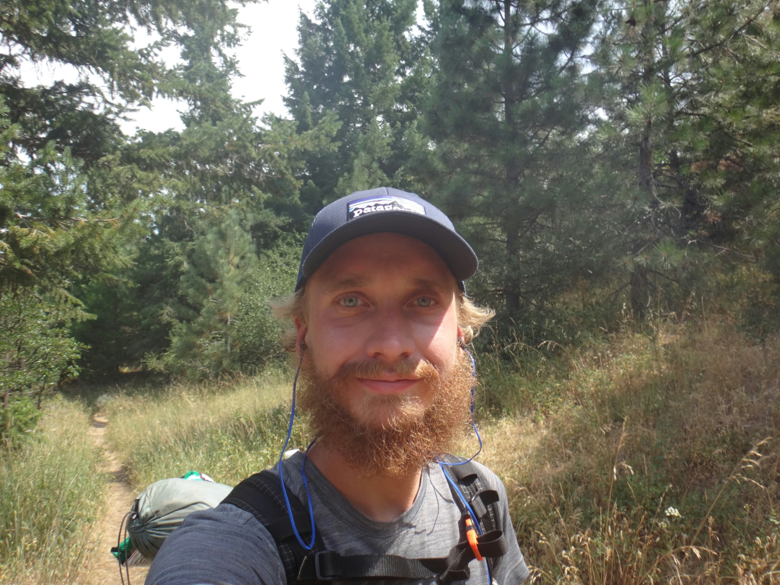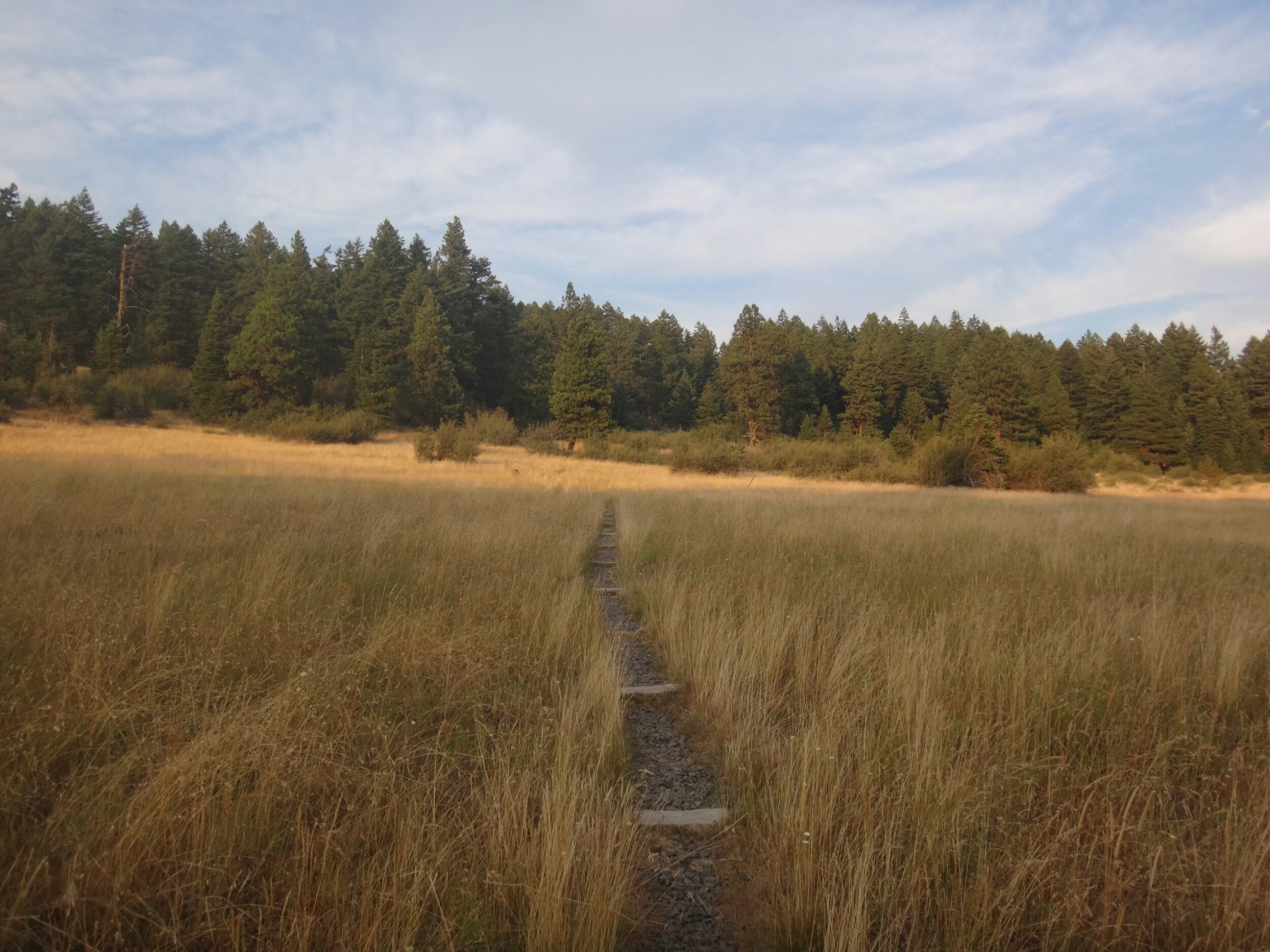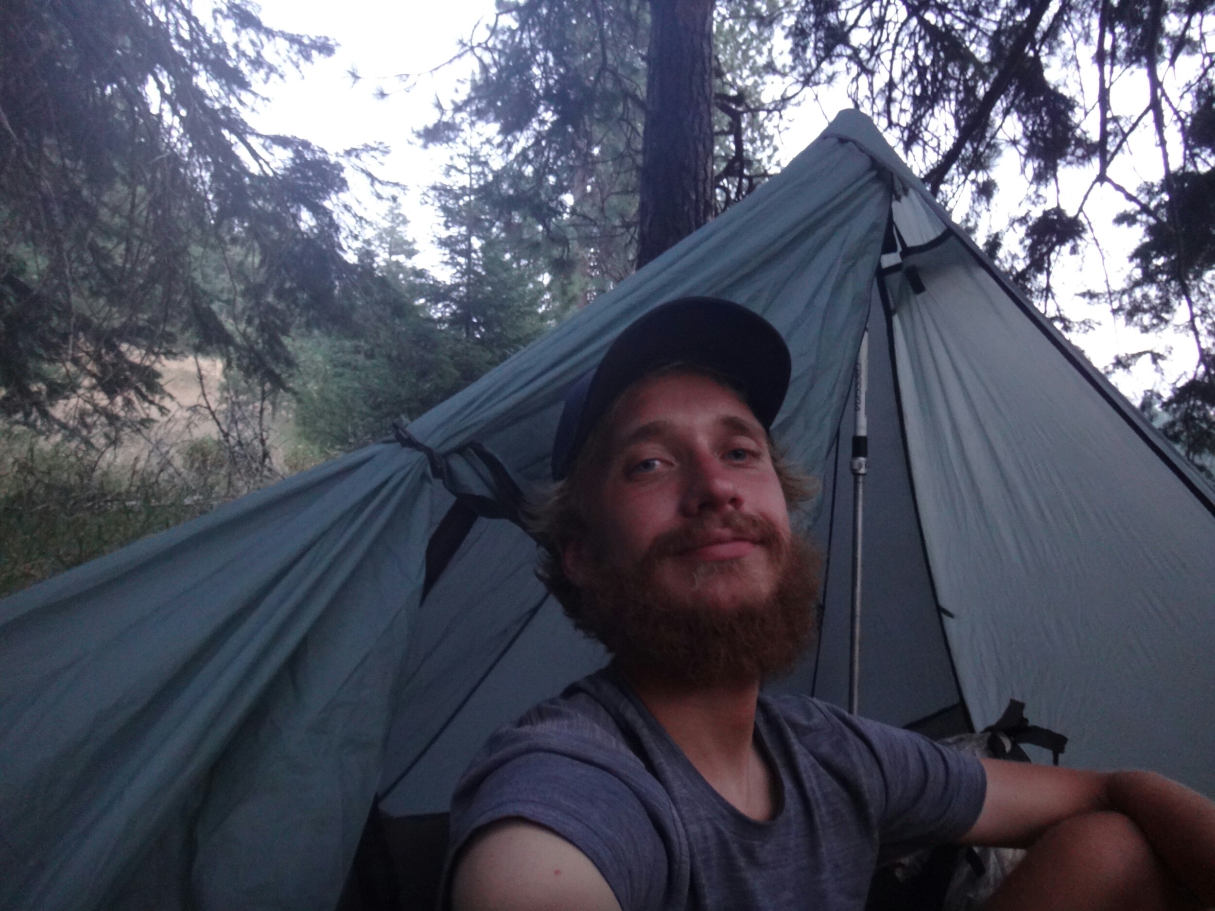 Heute hats irgendwie nicht geklappt. Ewig haben wir probiert zu hitchen. Kein Erfolg. Selbst mit Schild. Nach 2 Stunden an der Hauptstraße haben wir aufgegeben und sind zum REI gelaufen um auf die Gutmütigkeit der Outdoor Besucher zu zählen. Wir gönnten uns auch noch ein Subway zum Frühstück. Gegen 10 hatten wir dann endlich Glück. Mit einem Umweg ging es dann zurück zur Lodge und wir stiegen gegen 11 zurück auf den Trail. Es war noch ziemlich warm und das nächste Wasser war weit entfernt. Also waren wir schwer beladen. Meine neue Kappe für das Moskitonetz fühlt sich noch ungewohnt an. Das Gelände ist sehr ausgetrocknet und wir laufen lange durch das raschelnde Gras. Erst an einer Quelle machen wir eine längere Pause. Ich bin zwar nicht hungrig aber ich esse trotzdem ein paar Chips. Müssen ja weg. Die neuen Schuhe sind zu klein und müssen erst eingelaufen werden. Hatten leider keine anderen in meiner Größe die ich wollte. Es geht ordentlich auf und ab und wie kommen in etwas mehr bewachsenes Gebiet von Wald. Hier stehen viele Zäune und Tore die wir immer öffnen und schließen müssen. Da wie so einen späten Start hatten sind wir ein wenig unter Zeitdruck. In einem Trailregister finde ich Rattler und RockDoc ca. 7 Stunden vor uns. Das wird schön die mal wieder zu sehen. Wir entscheiden uns heute ein wenig länger zu laufen um bis zu einer gescheiten Wasserquelle für die Nacht zu kommen. Leider geht es dafür noch einen Berg hinauf. Auch wenn sich endlich mal schöne Ausblicke bieten nachdem wir den ganzen Tag eigentlich recht ereignislos Kilometer gekloppt haben. Ich sehe ein Reh und laufe danach durch hohes Gras und bleibe noch kurz stehen um ein weiteres Bild zu schießen. Da sehe ich einen schlangenkopf aus dem Gras wenige Zentimeter neben meinem Schuh ragen. Ich mache die Fliege. Ueghh. Die letzten Kilometer bergab waren sehr mühsam. Habe irgend etwas berührt und meine Oberschenkel brennen wegen eines Ausschlags. Auch bin ich müde und kaputt. Wir winfsch aus dem Rhythmus nach dem Zero. Am Campingplatz schlagen wie unsere Zelte direkt an einer Straße auf an der noch ein wenig Verkehr herrscht. Komische Leute und kein schönes Gefühl zum campen. Gegen 21 Uhr liege ich nach dem Abendessen endlich im Bett.
