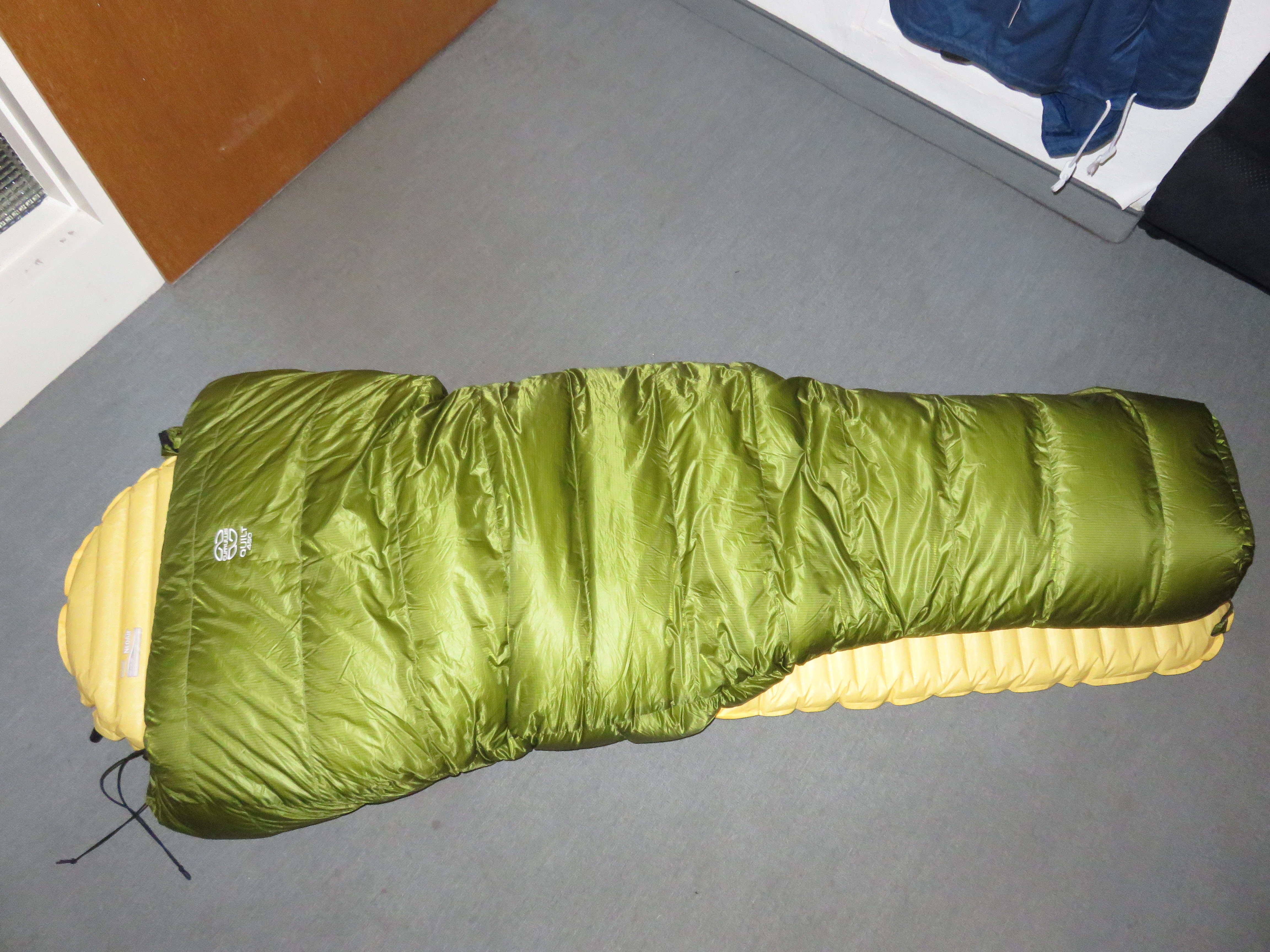 Für alle die nicht wissen was ein Quilt ist, stellt euch einen halben Schlafsack und eine halbe Decke vor die in der Mitte zusammengenäht sind. Gut zu sehen auf den fogenden Bildern. Eigentlich selbsterklärend. Der Vorteil ist die Gewichtsersparnis am Rückenteil. Alles was unter mir an Daune verwendet worden wäre, kann mich jetzt von oben aus isolieren.