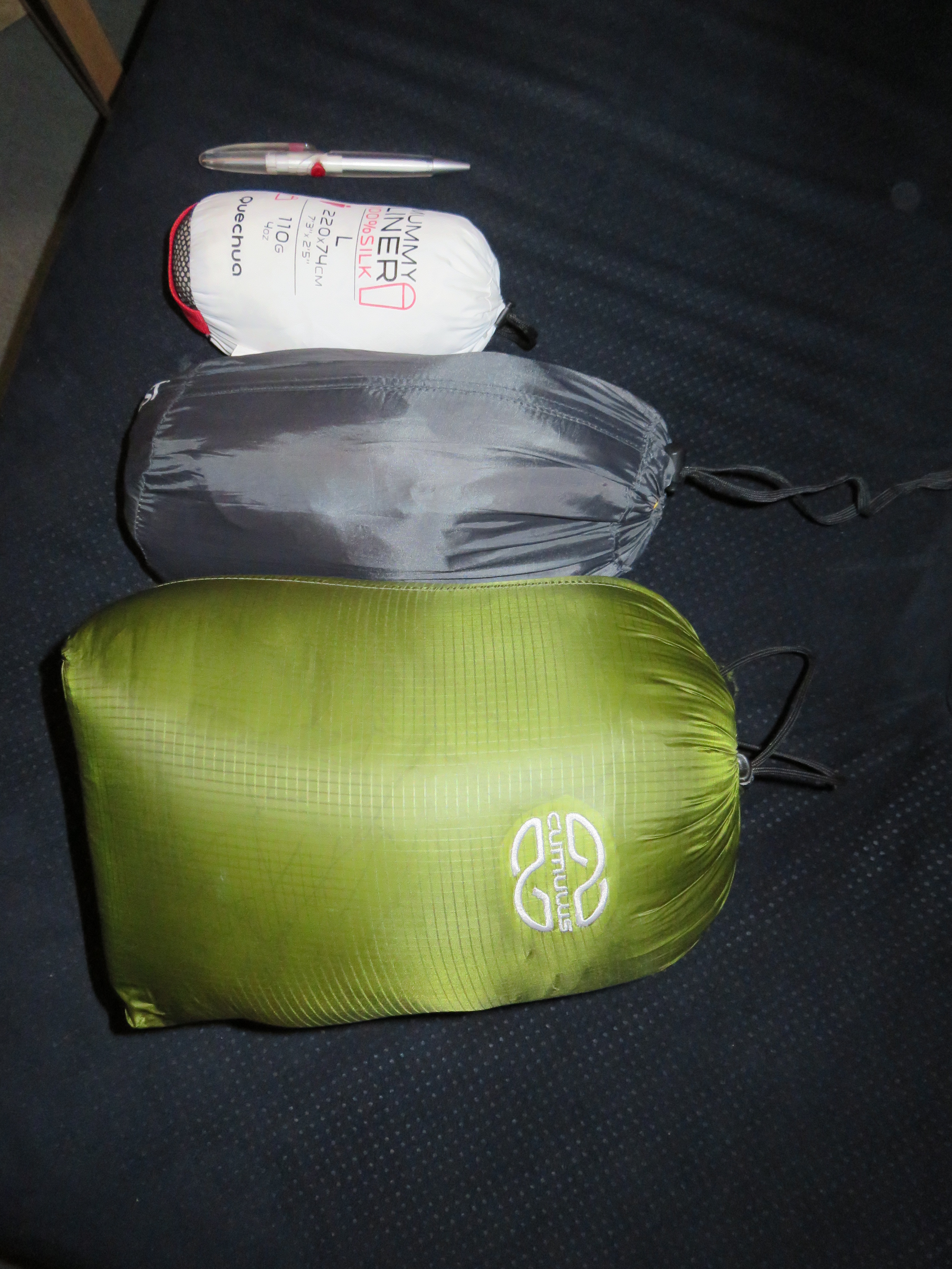 Cumulus Quilt 450, Therm a rest NeoAir XLite und ein Seideninlett von Quechua.