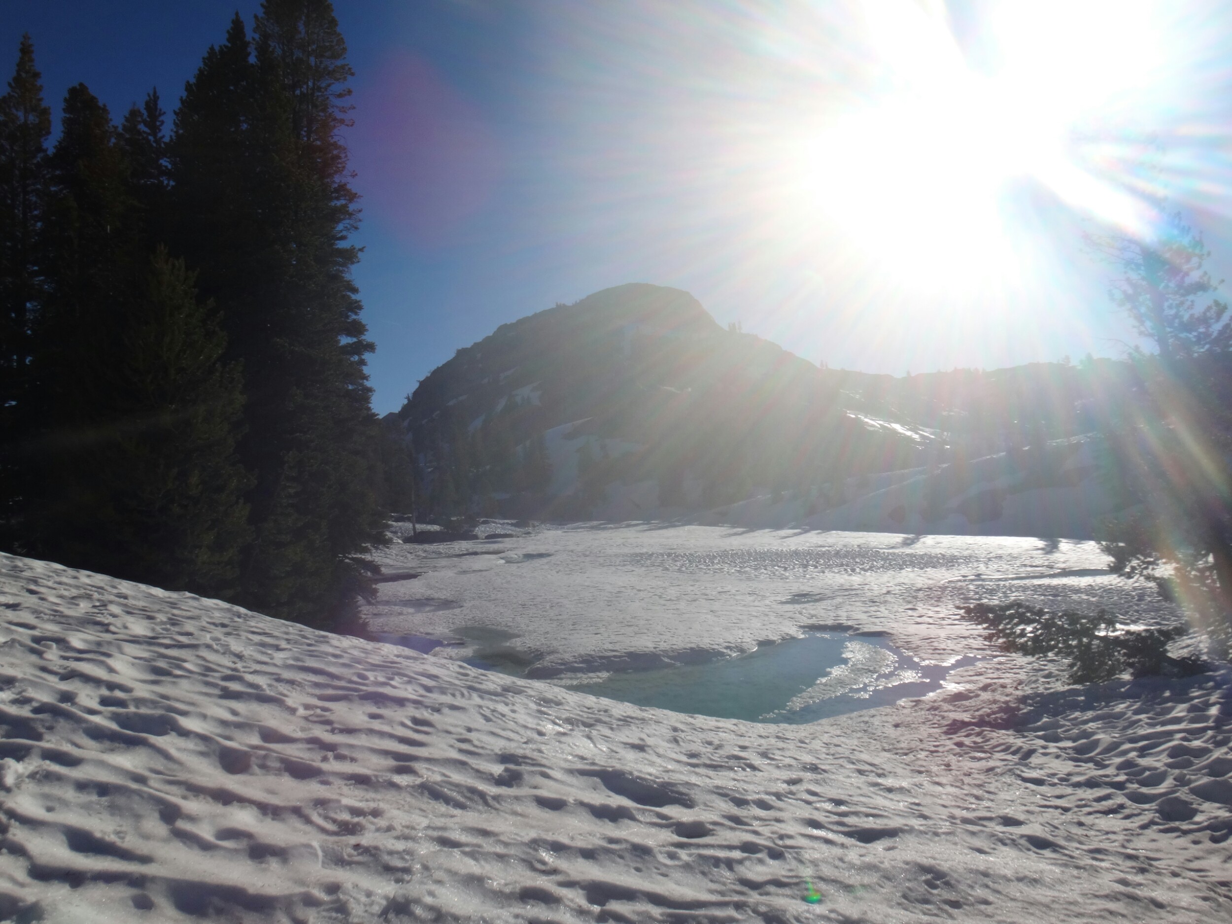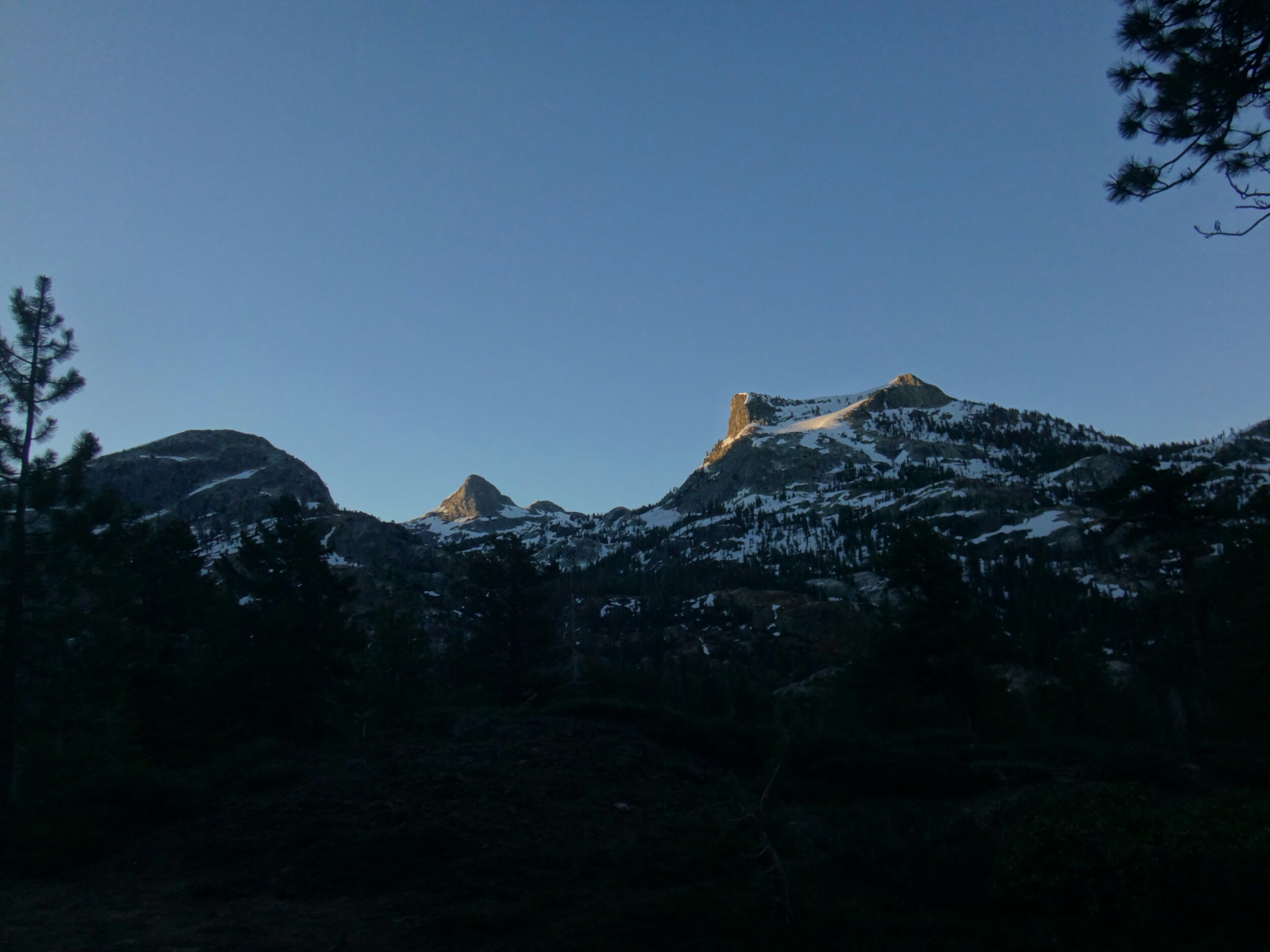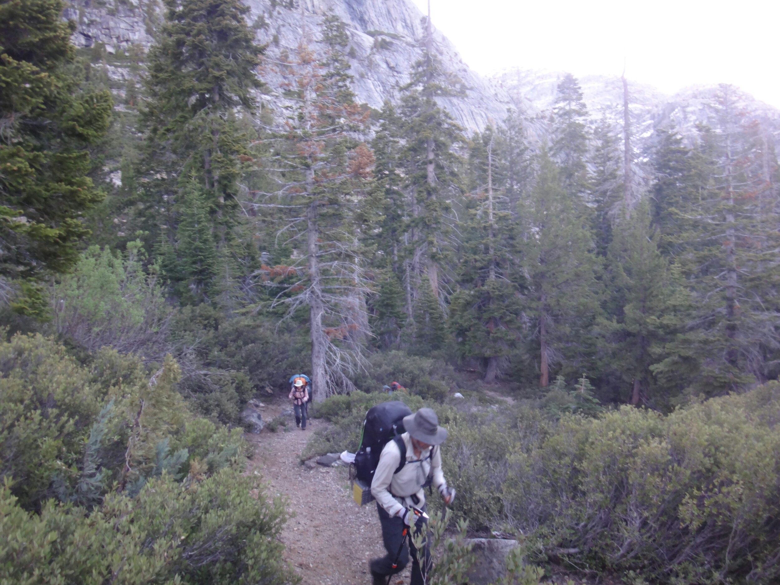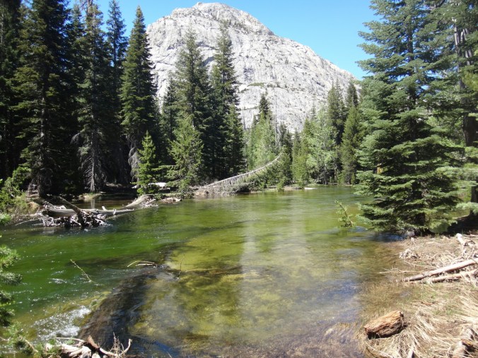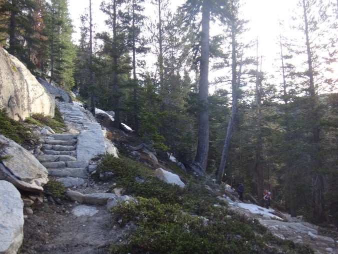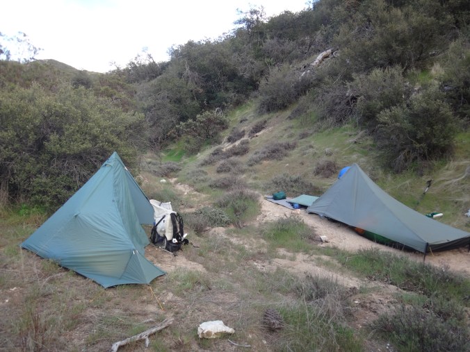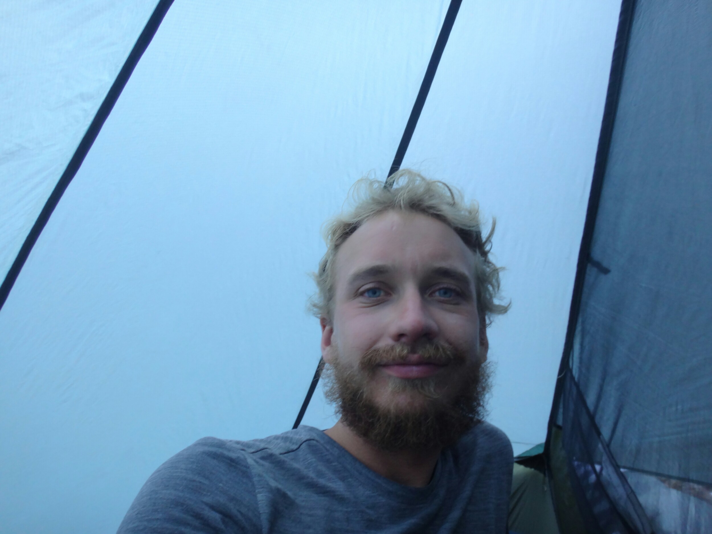 Da es gegen 3 anfängt zu regnen verziehen sich alle in die Zelte. Ich schlafe sofort ein nachdem ich ein Hörspiel angemacht habe. Totaler Blackout 😀 . Ich wache erst gegen 5 wieder auf und bin total durchgeschwitzt. Ich treffe draußen auf Rattler und RockDoc. RockDoc hat gesehen wie der Fluss einen Baum entwurzelt hat der am Ufer Stand. Das war dann wohl kein Donner. Wir haben noch für 5 Tage Essen und knapp 60 km vor uns. Allerdings sind auch noch ein paar Flüsse zu queren. Dies ist wohl der letzte wirklich gefährliche aber man weis nie. Die letzte gesicherte Überquerung dieser Passage bis zum Sonora Pass war vor einer Woche. Die Temperaturen sind jetzt auch Nachts über 0 Grad. Es taut und taut also.