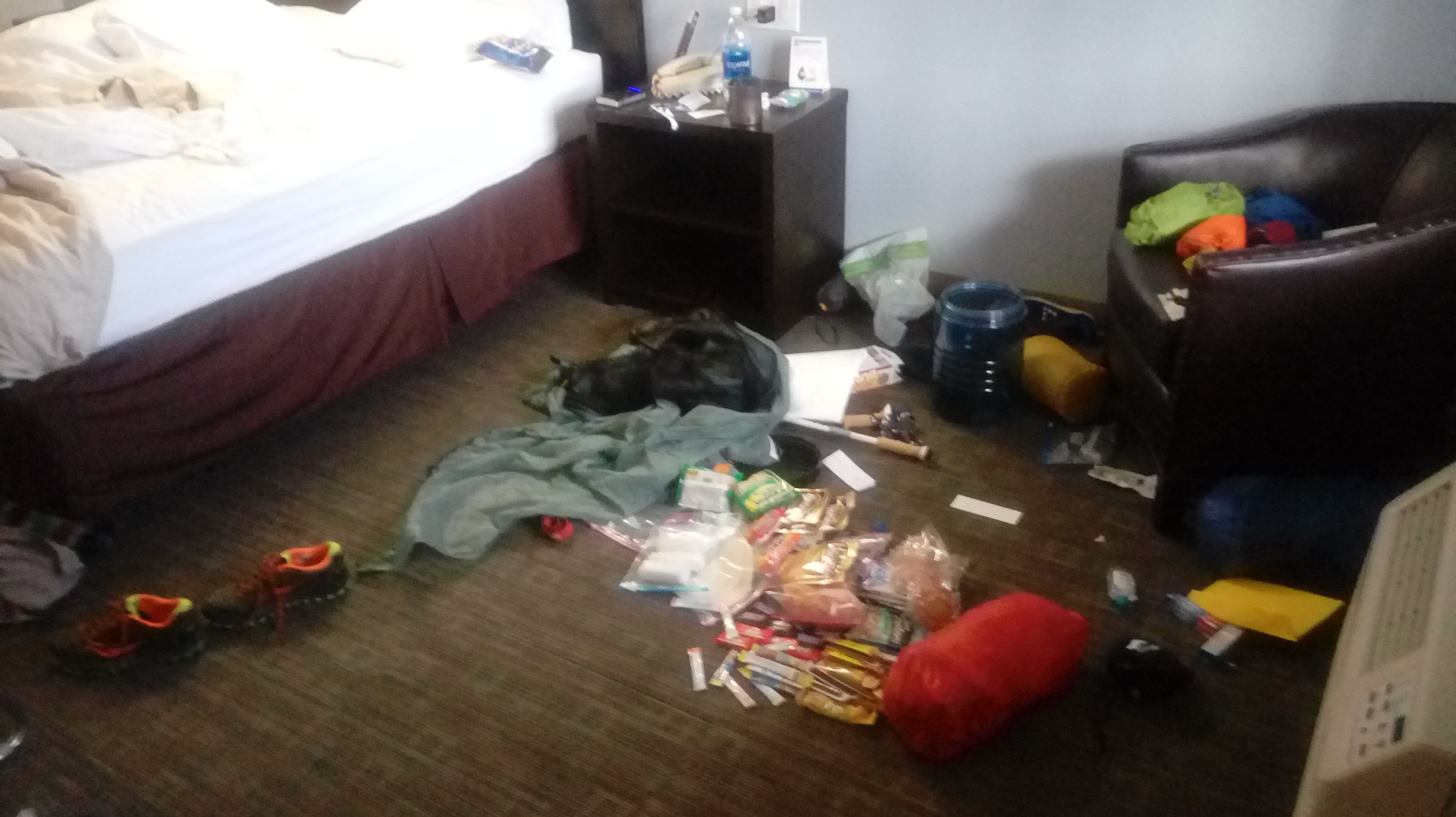 Heute Nachmittag fahre ich dann mit dem Bus nach Campo und zelte dort am Museum. Am Freitag gehts dann endlich los. Kann es kaum erwarten. Das Zimmer hier sieht auch schon ziemlich nach Hikertrash aus. Dabei bin ich allein hier.