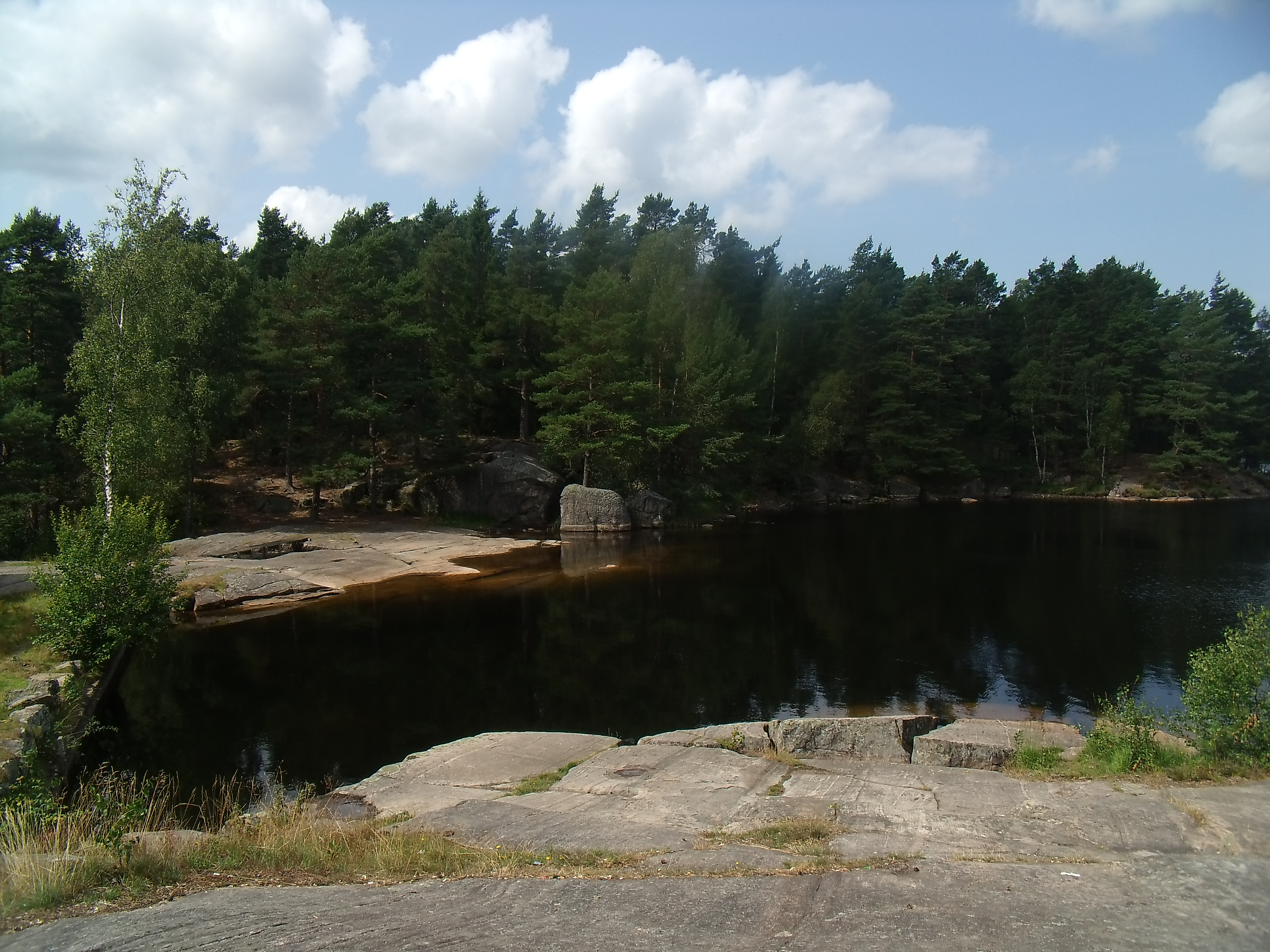 Aber da kann man nicht viel machen. Ich laufe unentwegt und vertreibe mir die Zeit mit Musik. Nebenher mache ich noch ein paar kleine Videos. Die erste Etappe geht so schnell vorbei. In Angered angekommen, hole ich mir noch eine Fanta und setze mich unter Schmerzen im Fuß auf den Kundenparkplatz. Nach ein paar Minuten Pause schnüre ich die Schuhe neu und mache mich auf in die nächste Etappe. Die nächsten 10 km zum See Aspen bei Jonsered gehen quer durch die Wälder. Also bin ich auf mich allein gestellt und kämpfe mich mühselig vorwärts. In immer kürzeren Abständen muss ich pausieren. Schon sehr schnell werden meine Beine zu Wackelpudding und ich denke ich muss mitten im Wald übernachten. Totale Erschöpfung verbreitet sich über mich und der Abstand zwischen meinen Fußstapfen ist kaum wahrnehmbar.