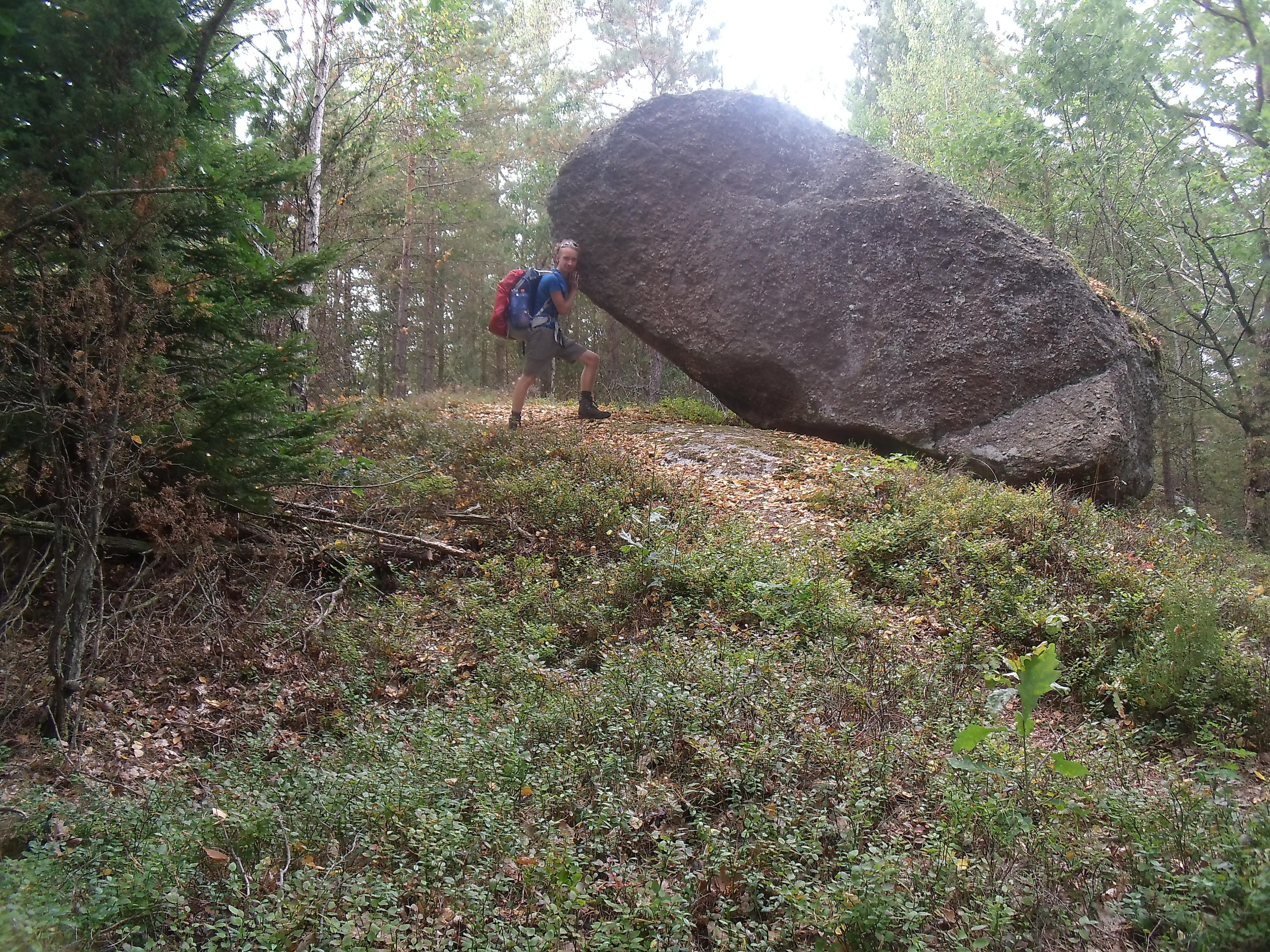 Heute wird es richtig hart. Zuerst laufen wir zum Busbahnhof von Kungälv. Von dort verabschiedet sich Simon wieder Richtung Deutschland. Mein Flieger geht erst am Sonntag. Also habe ich noch 2 Tage Zeit die ich nutzen will meine Grenzen zu testen. Gegen 11 Uhr laufe ich vom Busbahnhof los und habe mir die nächsten zwei Etappen Richtung Süden vorgenommen. Am See mit dem tollen Eisenbahnsound will ich heute Abend zelten.