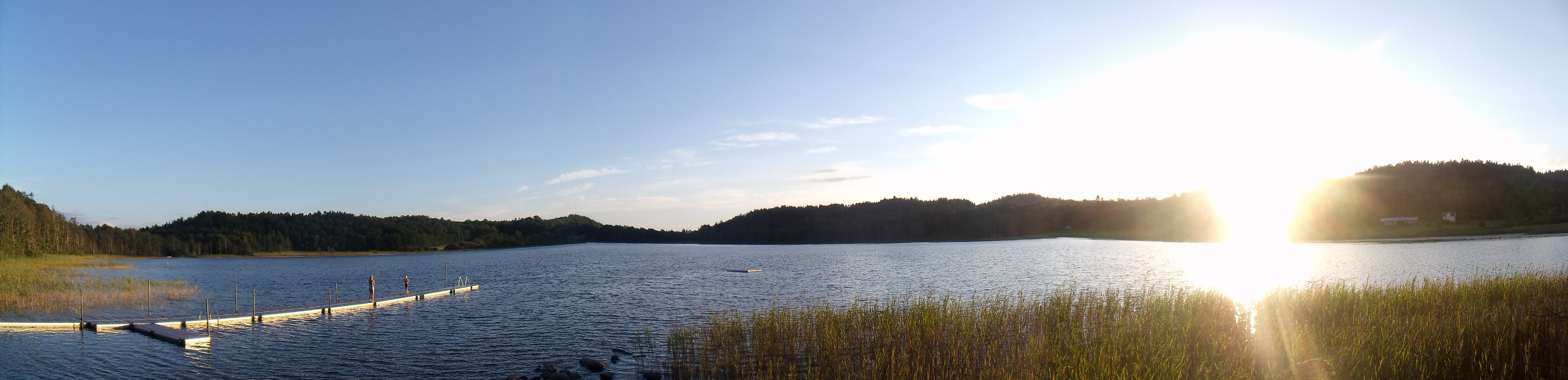 Zum Glück verbringen wir die nächsten Tage nicht im Kaffeehaus und brechen auf. Wir haben 16 Kilometer vor uns und das Wetter ist heute gnädig. Leicht bewölkt können wir schnell durch das Gelände jagen. So gelangen wir nach höchsten 4 Stunden zum See Romesjön. Diese Wanderung verging durch schöne Wälder, über Forststraßen und Wiesen wie im Flug. Dabei haben wir ganz vergessen Fotos zu schießen. Aber der Ausblick über den See ist wohl auch aussagekräftig genug. Denn die Sonne gibt wie gewohnt alles.